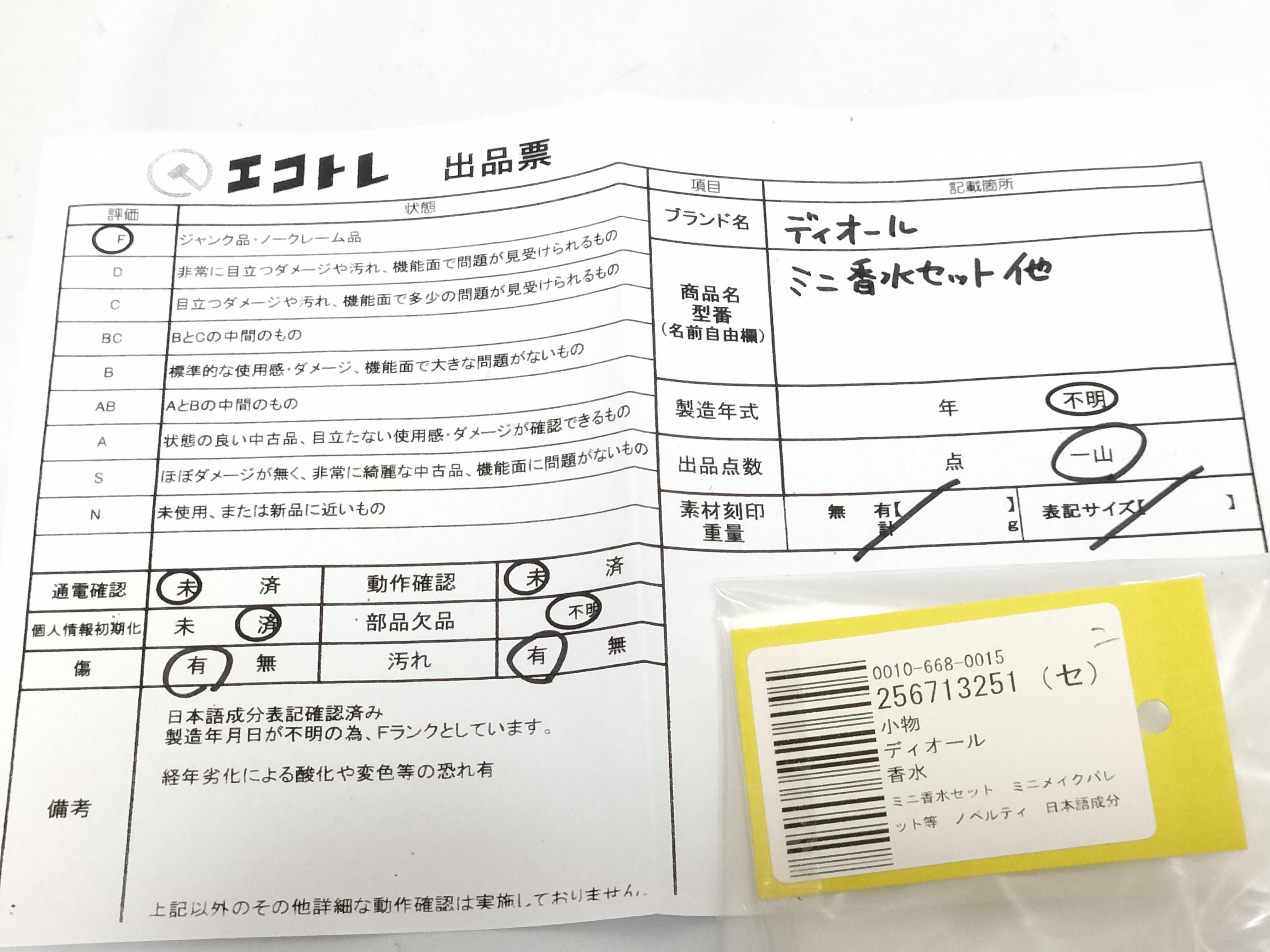 商品内容によって、JITBOXなどでの発送となる可能性がございます事ご理解下さい。年式などの商品情報詳細は写真にてご確認願います。※ご入札の際はご利用規約をよくお読みになってからのご参加お願いします。","タイプライン":"","カテゴリ":"消耗品","形状コード":"香水","付属品コード":"","シリアル・シール・型番":""