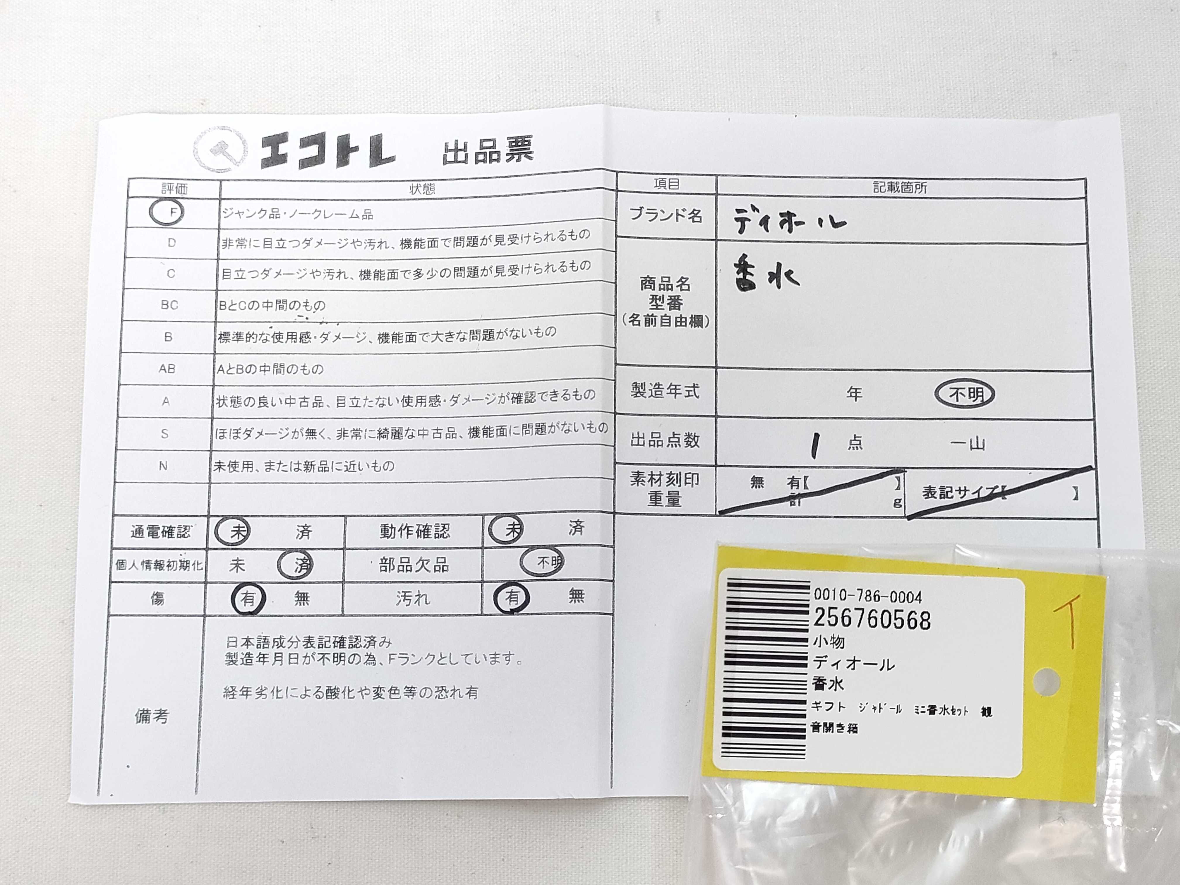 商品内容によって、JITBOXなどでの発送となる可能性がございます事ご理解下さい。年式などの商品情報詳細は写真にてご確認願います。※ご入札の際はご利用規約をよくお読みになってからのご参加お願いします。","タイプライン":"","カテゴリ":"消耗品","形状コード":"香水","付属品コード":"","シリアル・シール・型番":""