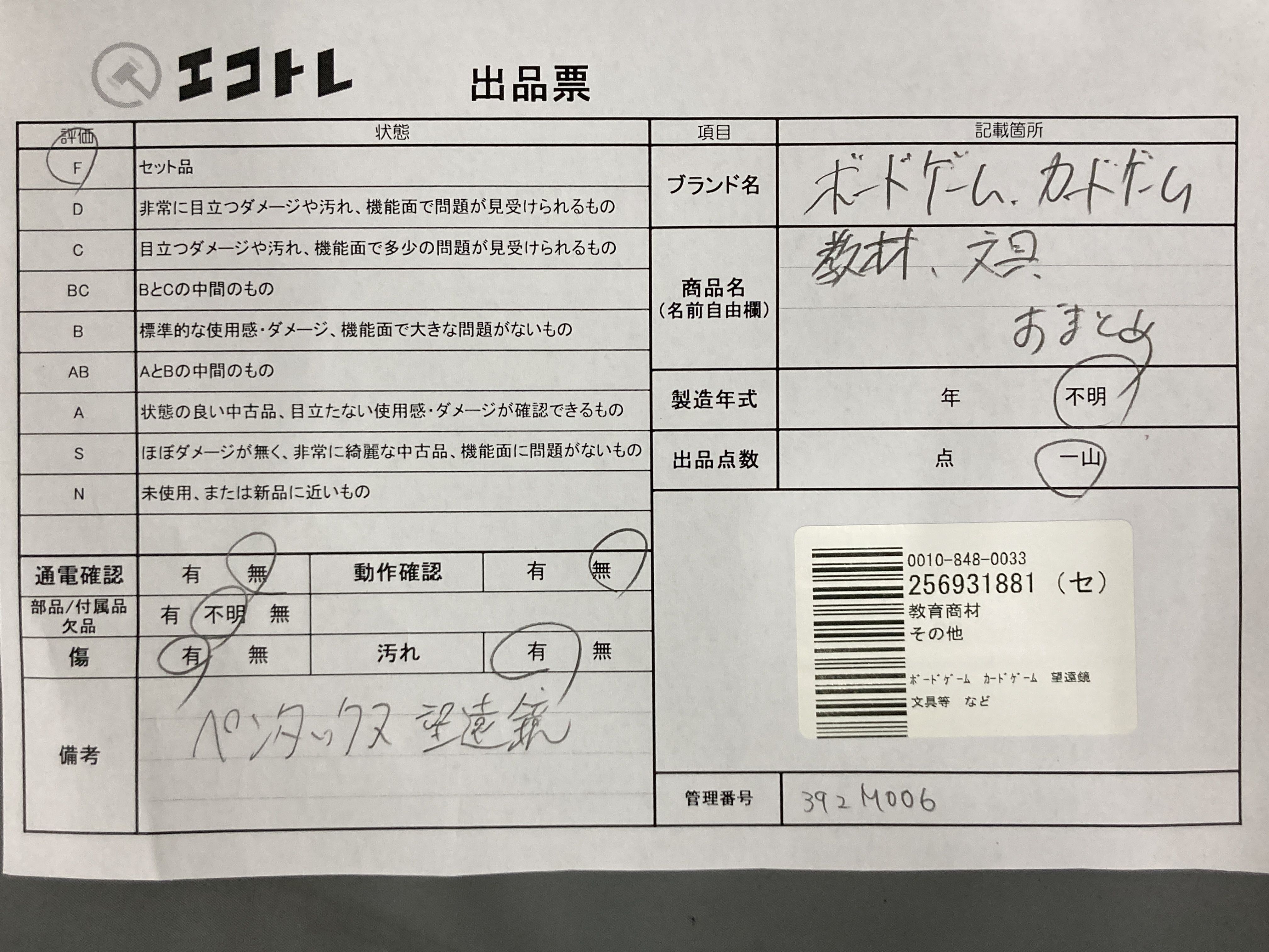 商品内容によって、JITBOXなどでの発送となる可能性がございます事ご理解下さい。年式などの商品情報詳細は写真にてご確認願います。※ご入札の際はご利用規約をよくお読みになってからのご参加お願いします。","タイプライン":"","カテゴリ":"教育","形状コード":"その他教材","付属品コード":"","シリアル・シール・型番":""