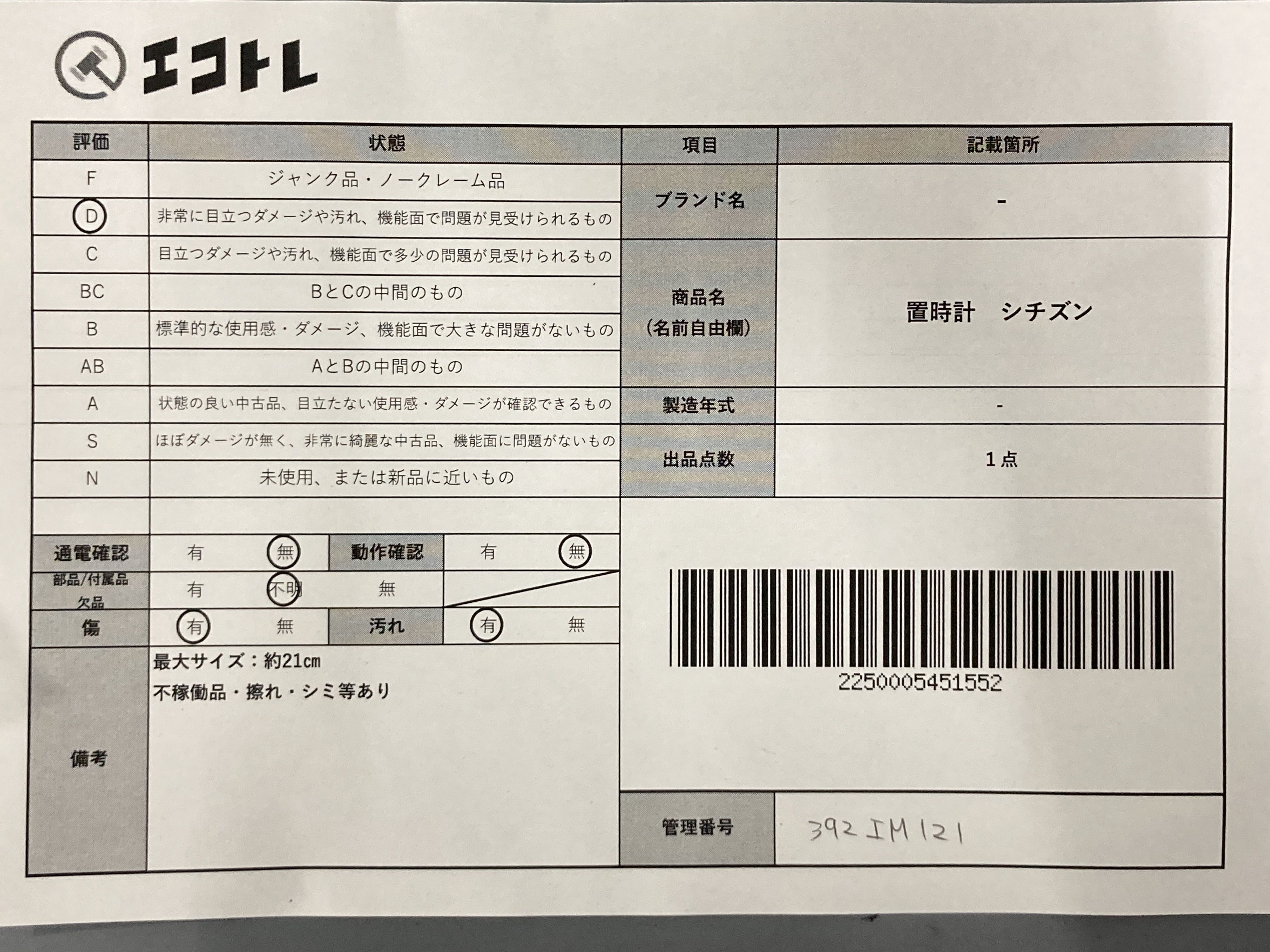 商品内容によって、JITBOXなどでの発送となる可能性がございます事ご理解下さい。年式などの商品情報詳細は写真にてご確認願います。※ご入札の際はご利用規約をよくお読みになってからのご参加お願いします。","タイプライン":"","カテゴリ":"時計","形状コード":"置時計","付属品コード":"","シリアル・シール・型番":""