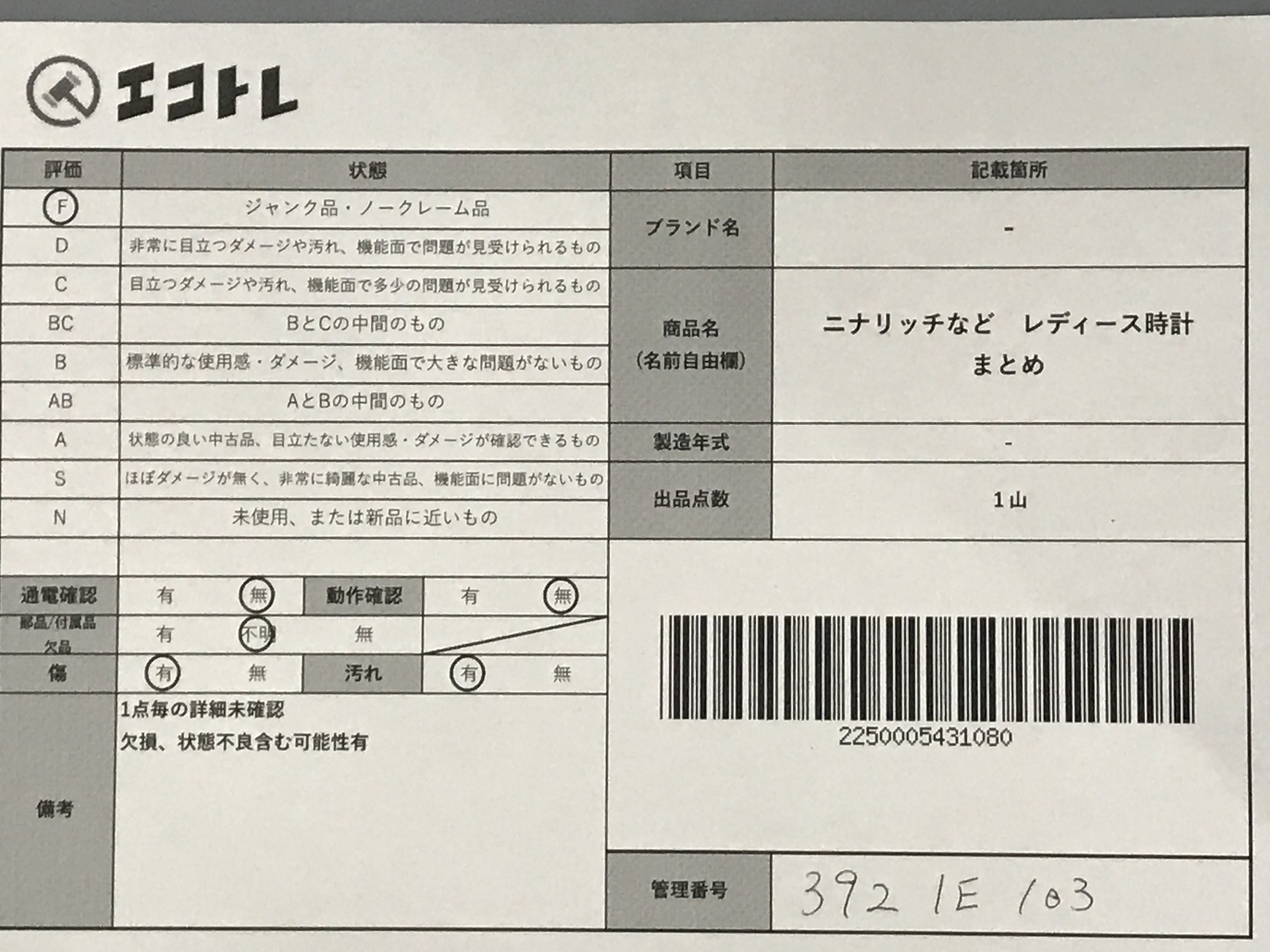 商品内容によって、JITBOXなどでの発送となる可能性がございます事ご理解下さい。年式などの商品情報詳細は写真にてご確認願います。※ご入札の際はご利用規約をよくお読みになってからのご参加お願いします。","タイプライン":"","カテゴリ":"時計","形状コード":"レディース腕時計","付属品コード":"","シリアル・シール・型番":""