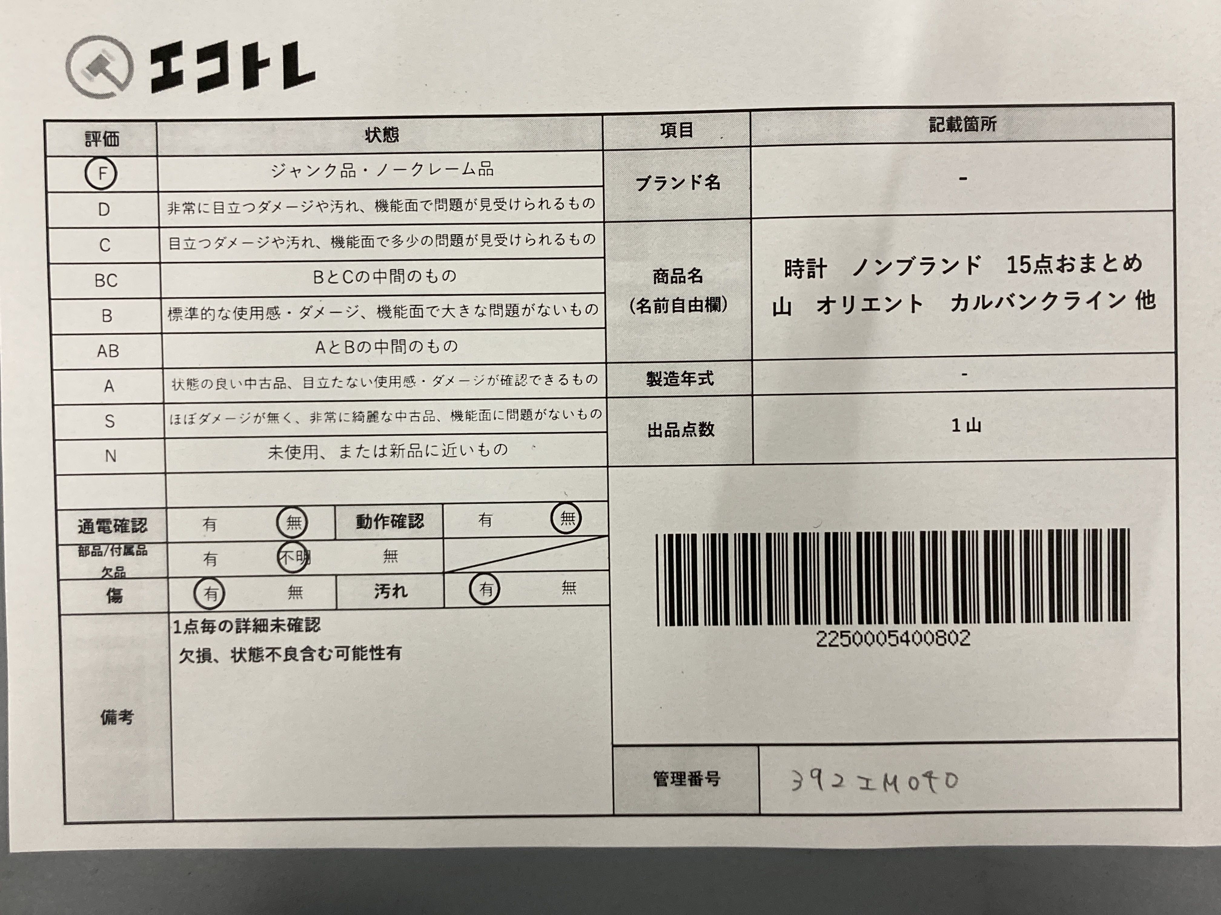 商品内容によって、JITBOXなどでの発送となる可能性がございます事ご理解下さい。年式などの商品情報詳細は写真にてご確認願います。※ご入札の際はご利用規約をよくお読みになってからのご参加お願いします。","タイプライン":"","カテゴリ":"時計","形状コード":"時計まとめ","付属品コード":"","シリアル・シール・型番":""