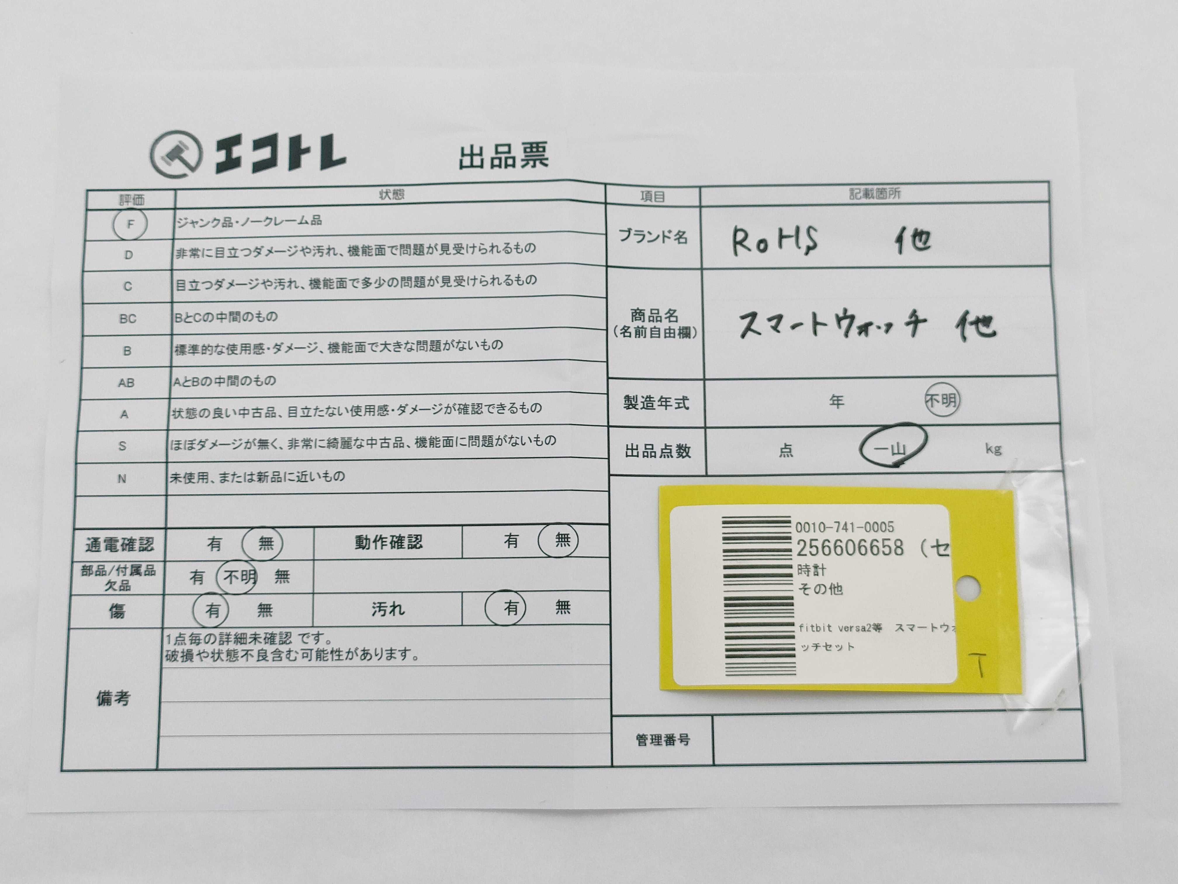 商品内容によって、JITBOXなどでの発送となる可能性がございます事ご理解下さい。年式などの商品情報詳細は写真にてご確認願います。※ご入札の際はご利用規約をよくお読みになってからのご参加お願いします。","タイプライン":"","カテゴリ":"時計","形状コード":"スマートウォッチ","付属品コード":"","シリアル・シール・型番":""