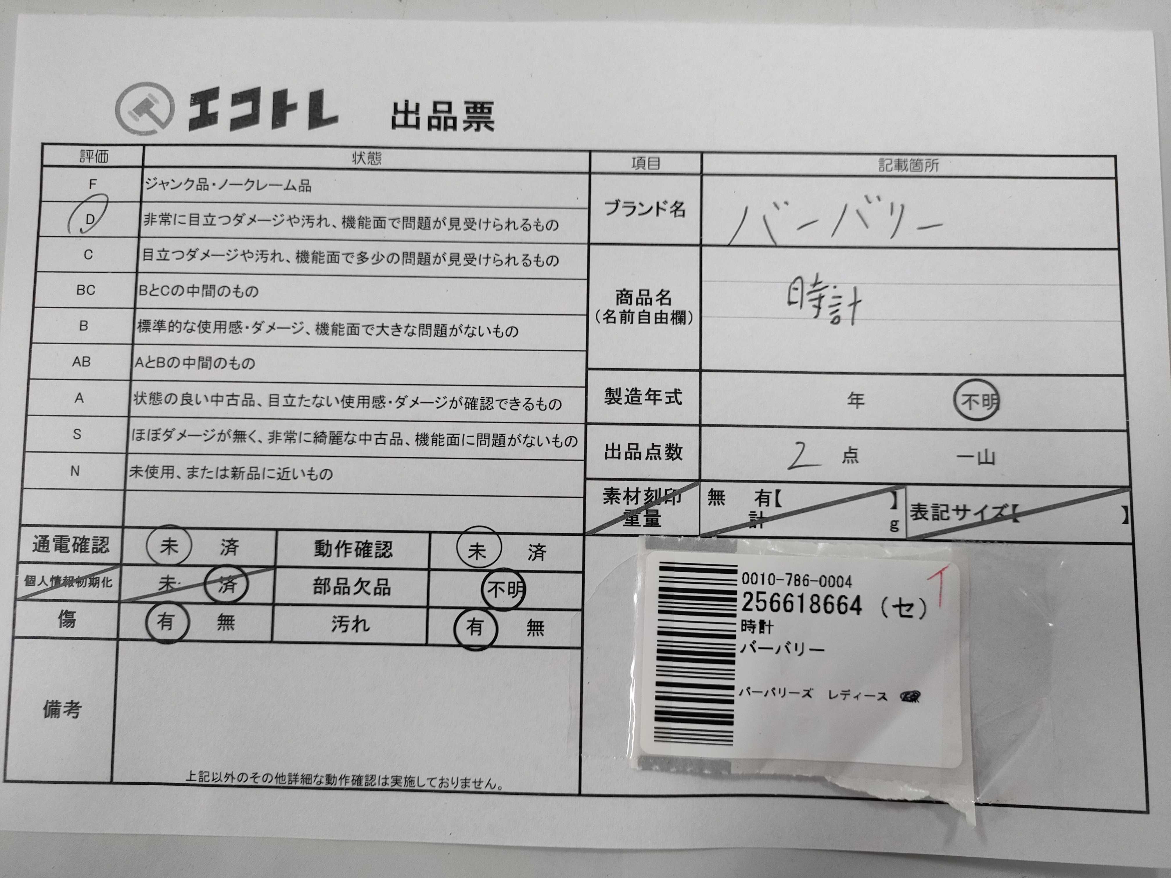 商品内容によって、JITBOXなどでの発送となる可能性がございます事ご理解下さい。年式などの商品情報詳細は写真にてご確認願います。※ご入札の際はご利用規約をよくお読みになってからのご参加お願いします。","タイプライン":"","カテゴリ":"時計","形状コード":"レディース腕時計","付属品コード":"","シリアル・シール・型番":""