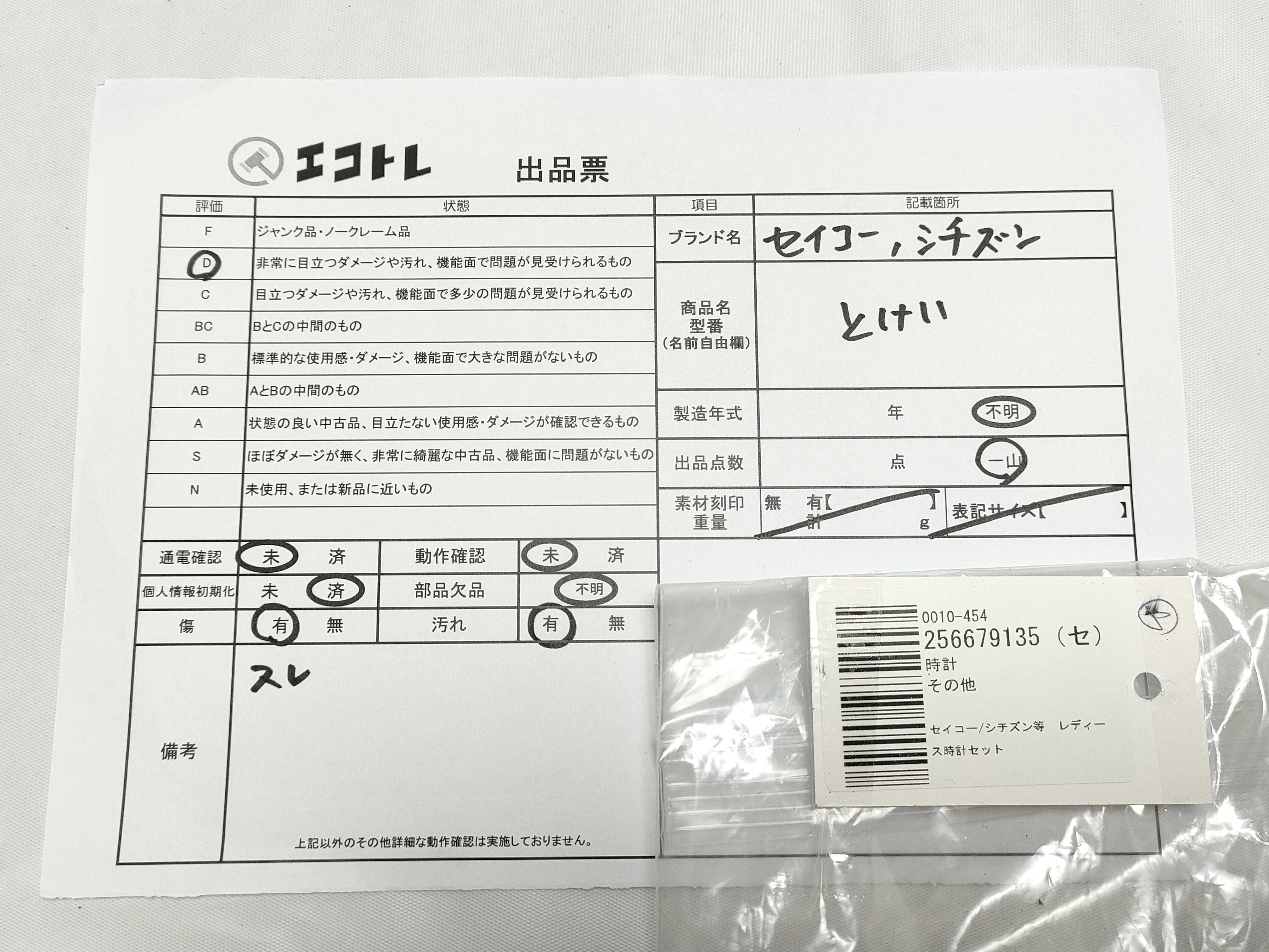 商品内容によって、JITBOXなどでの発送となる可能性がございます事ご理解下さい。年式などの商品情報詳細は写真にてご確認願います。※ご入札の際はご利用規約をよくお読みになってからのご参加お願いします。","タイプライン":"","カテゴリ":"時計","形状コード":"時計まとめ","付属品コード":"","シリアル・シール・型番":""