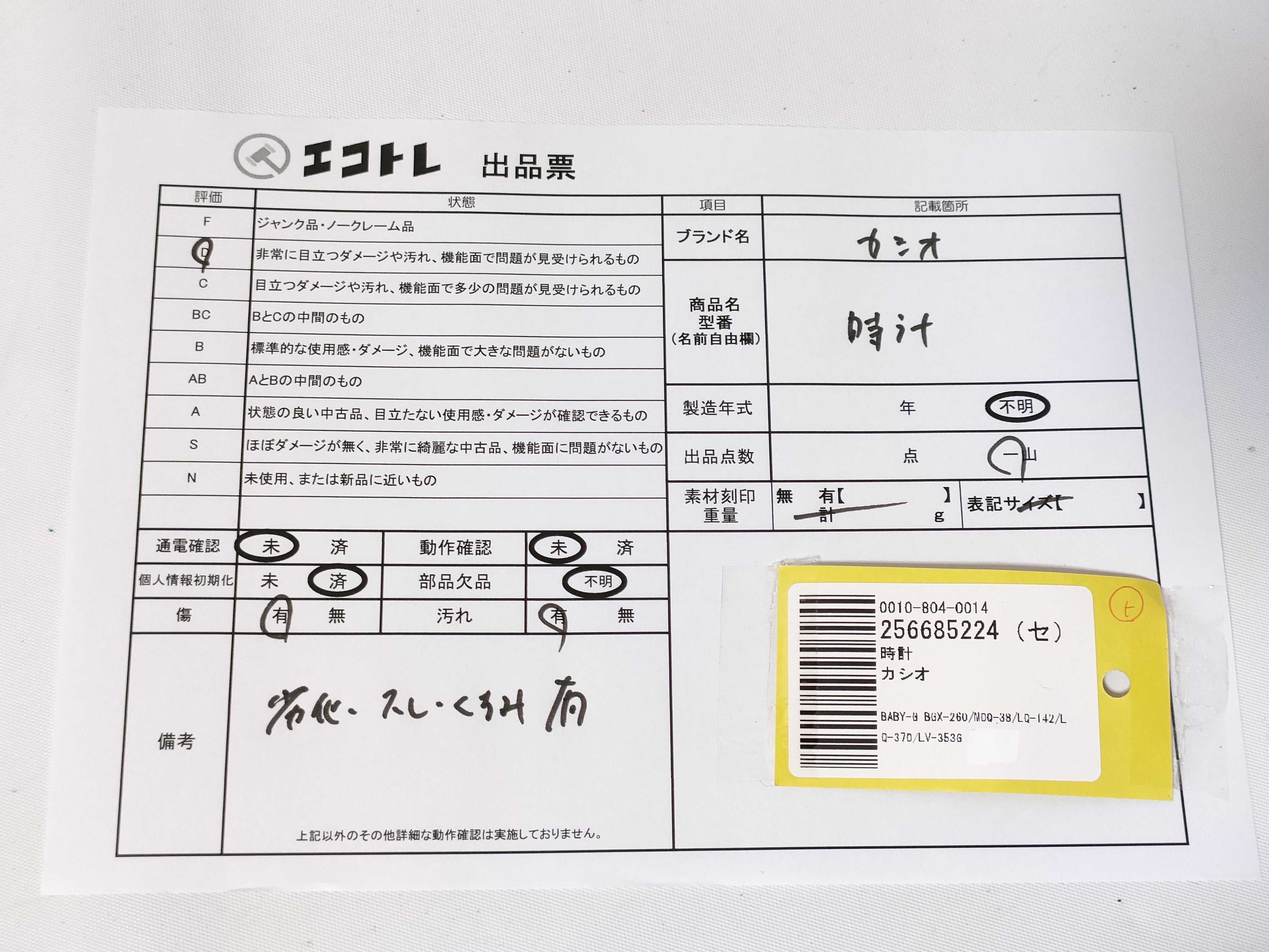 商品内容によって、JITBOXなどでの発送となる可能性がございます事ご理解下さい。年式などの商品情報詳細は写真にてご確認願います。※ご入札の際はご利用規約をよくお読みになってからのご参加お願いします。","タイプライン":"","カテゴリ":"時計","形状コード":"時計まとめ","付属品コード":"","シリアル・シール・型番":""
