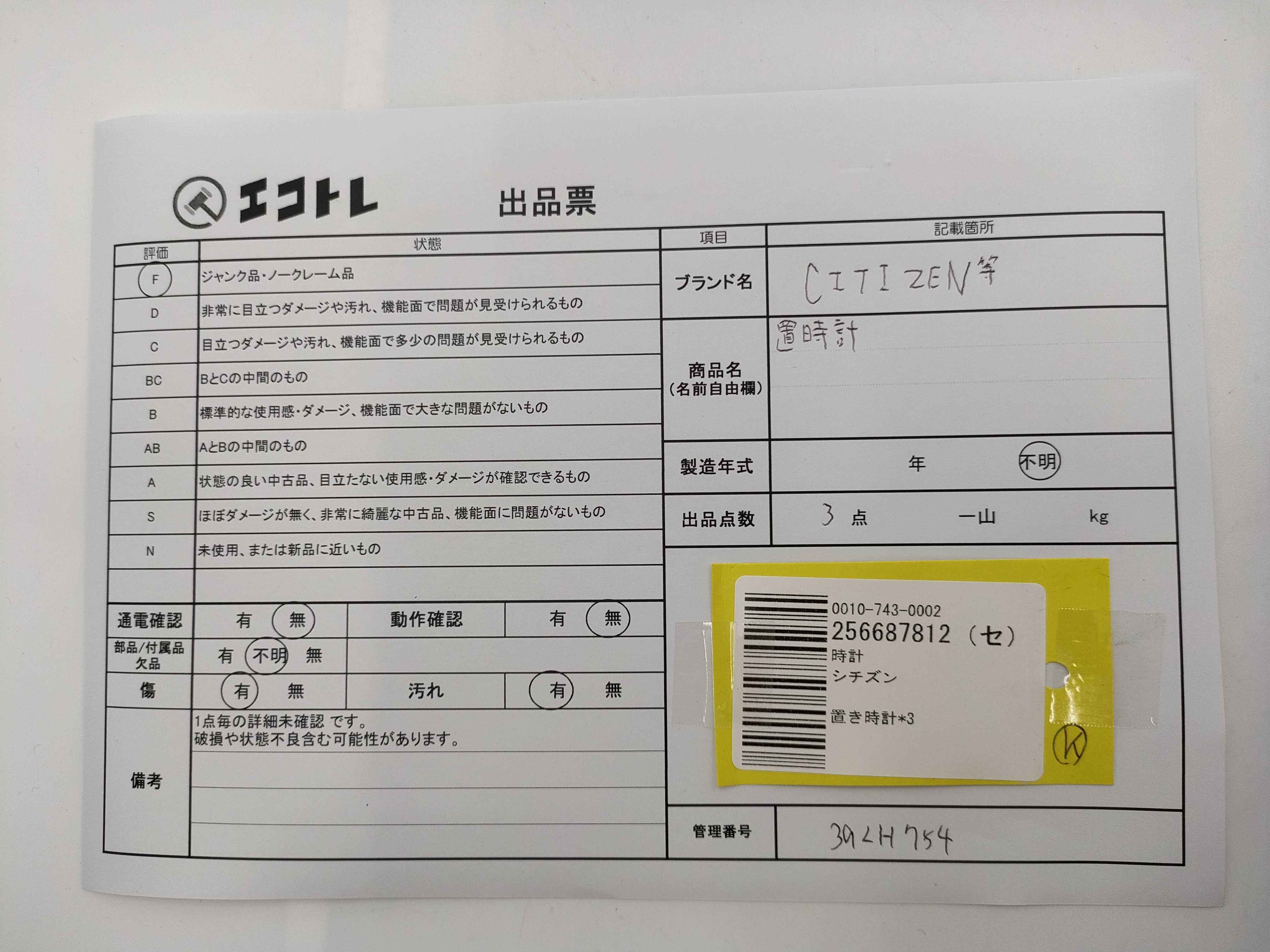 商品内容によって、JITBOXなどでの発送となる可能性がございます事ご理解下さい。年式などの商品情報詳細は写真にてご確認願います。※ご入札の際はご利用規約をよくお読みになってからのご参加お願いします。","タイプライン":"","カテゴリ":"時計","形状コード":"置時計","付属品コード":"","シリアル・シール・型番":""