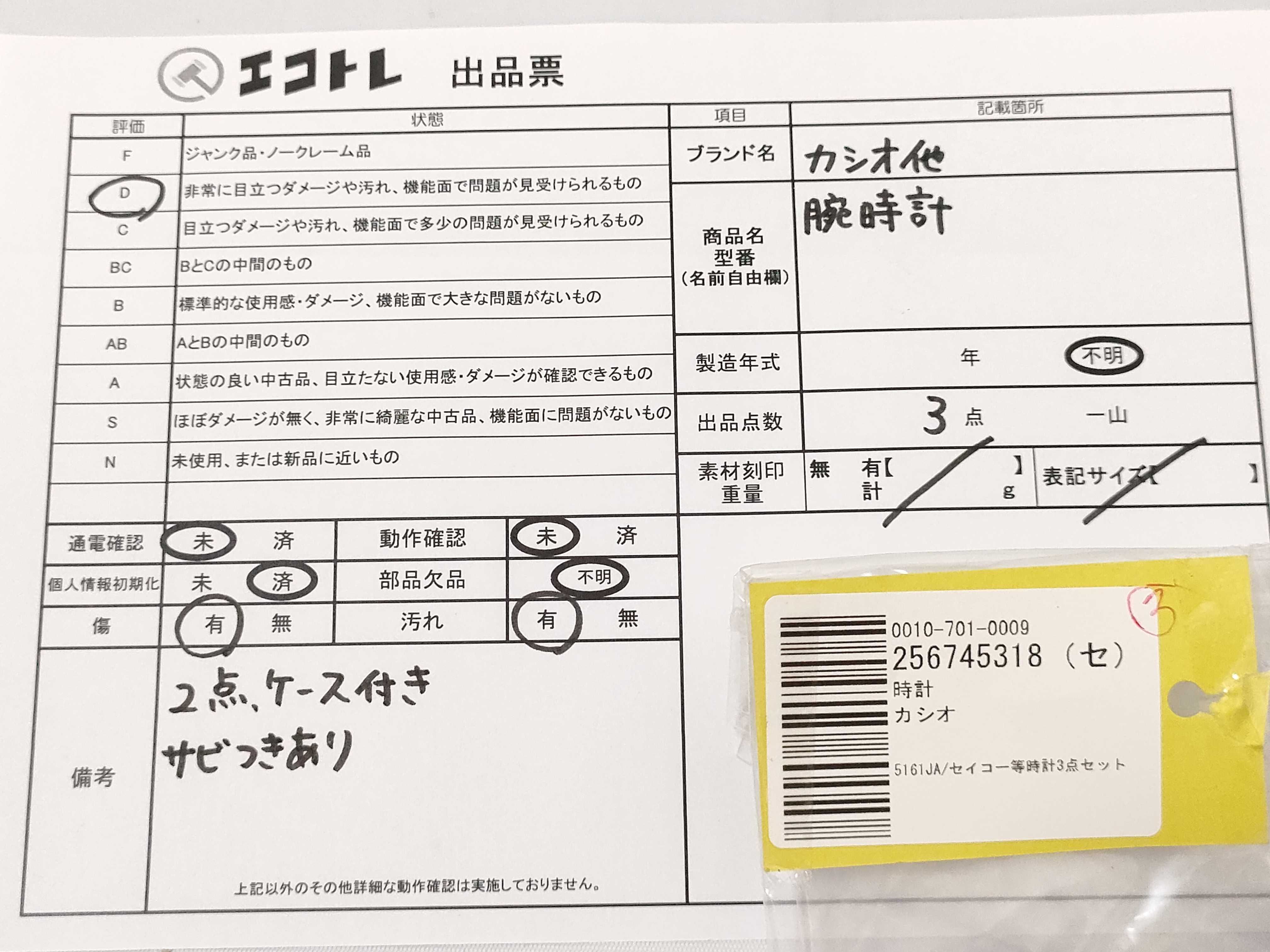 商品内容によって、JITBOXなどでの発送となる可能性がございます事ご理解下さい。年式などの商品情報詳細は写真にてご確認願います。※ご入札の際はご利用規約をよくお読みになってからのご参加お願いします。","タイプライン":"","カテゴリ":"時計","形状コード":"男女兼用","付属品コード":"","シリアル・シール・型番":""
