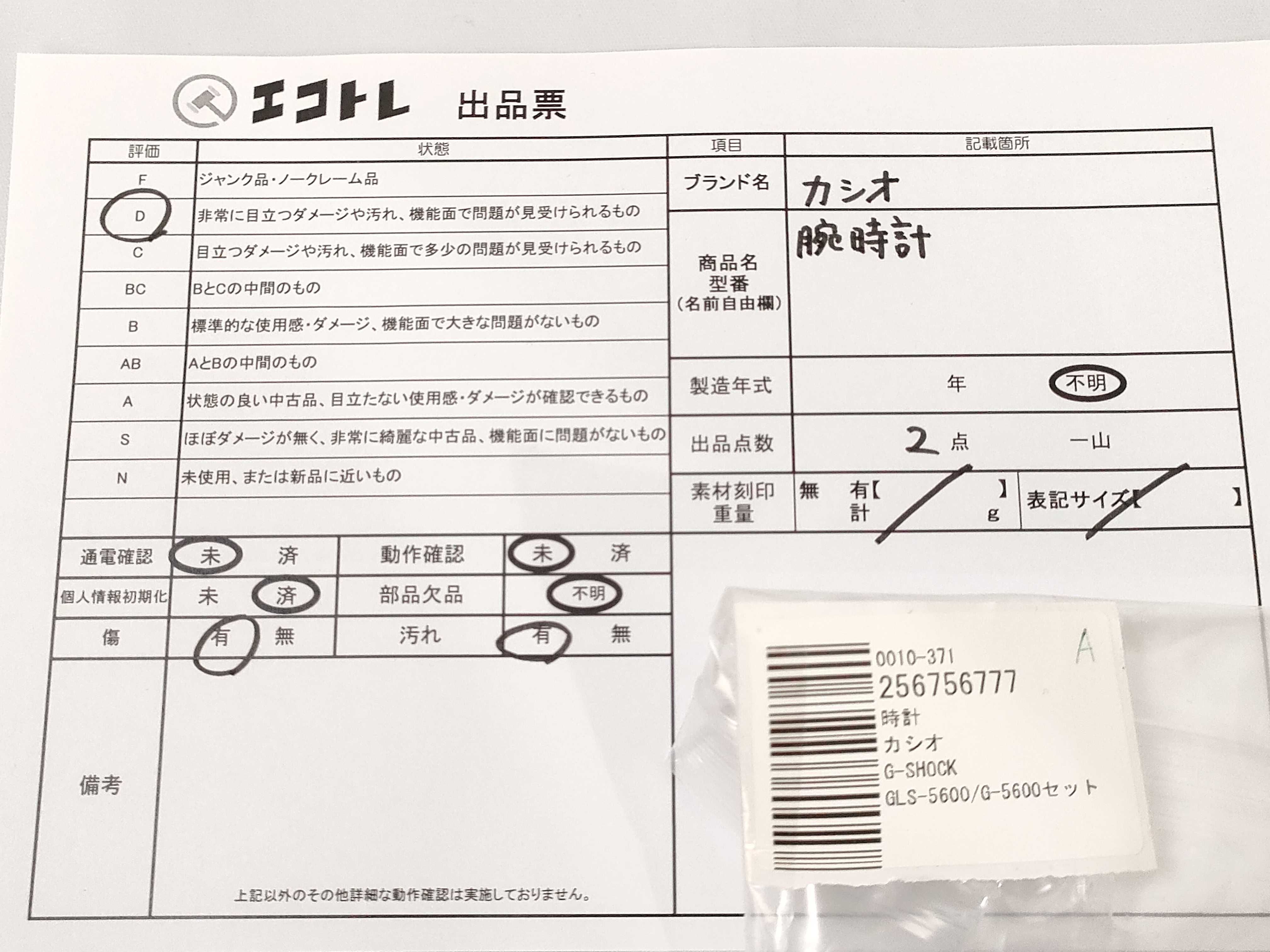 (D_0343)▼CASIO GLS-5600/G-5600セット 男女兼用