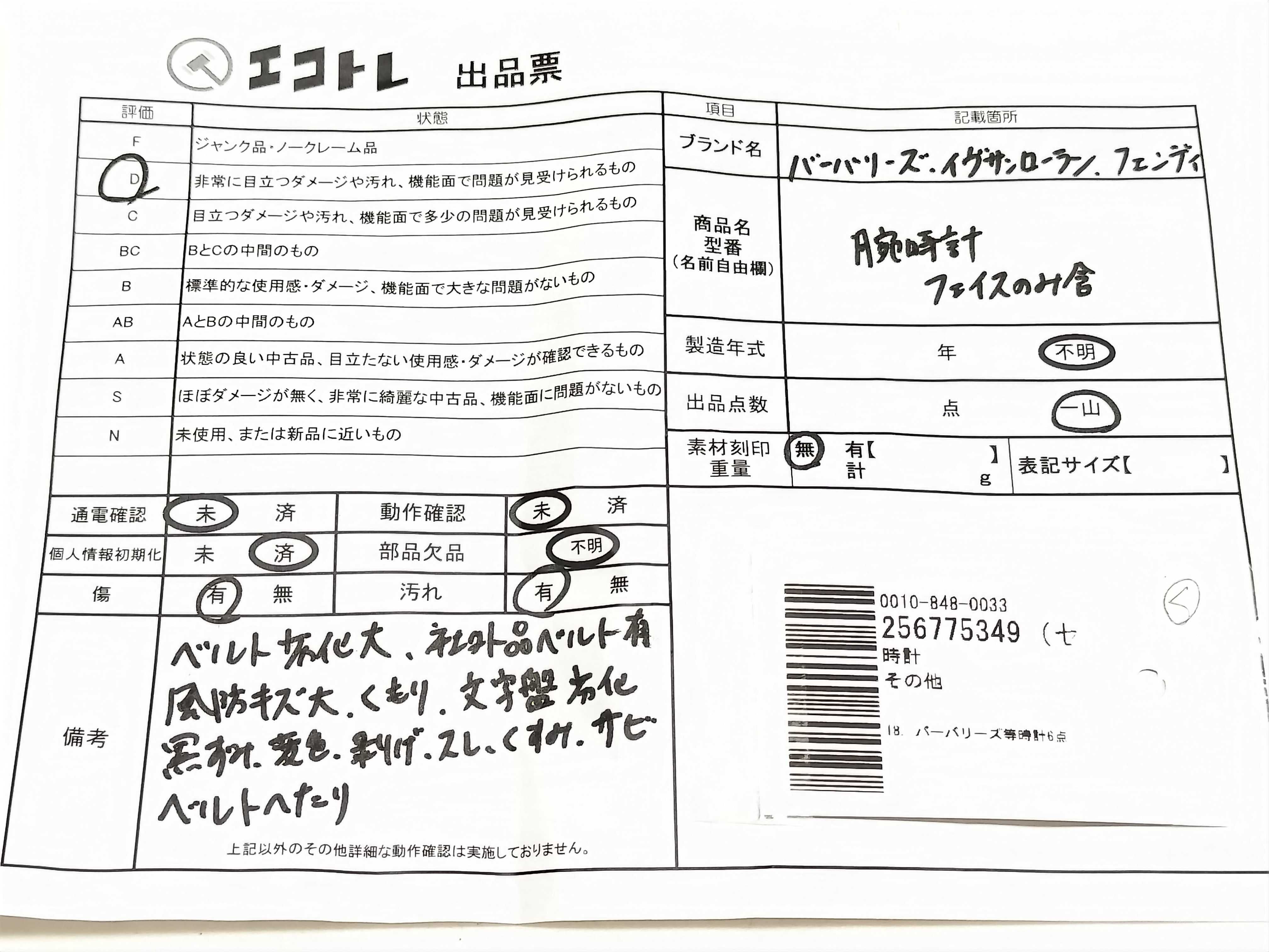 商品内容によって、JITBOXなどでの発送となる可能性がございます事ご理解下さい。年式などの商品情報詳細は写真にてご確認願います。※ご入札の際はご利用規約をよくお読みになってからのご参加お願いします。","タイプライン":"","カテゴリ":"時計","形状コード":"時計まとめ","付属品コード":"","シリアル・シール・型番":""