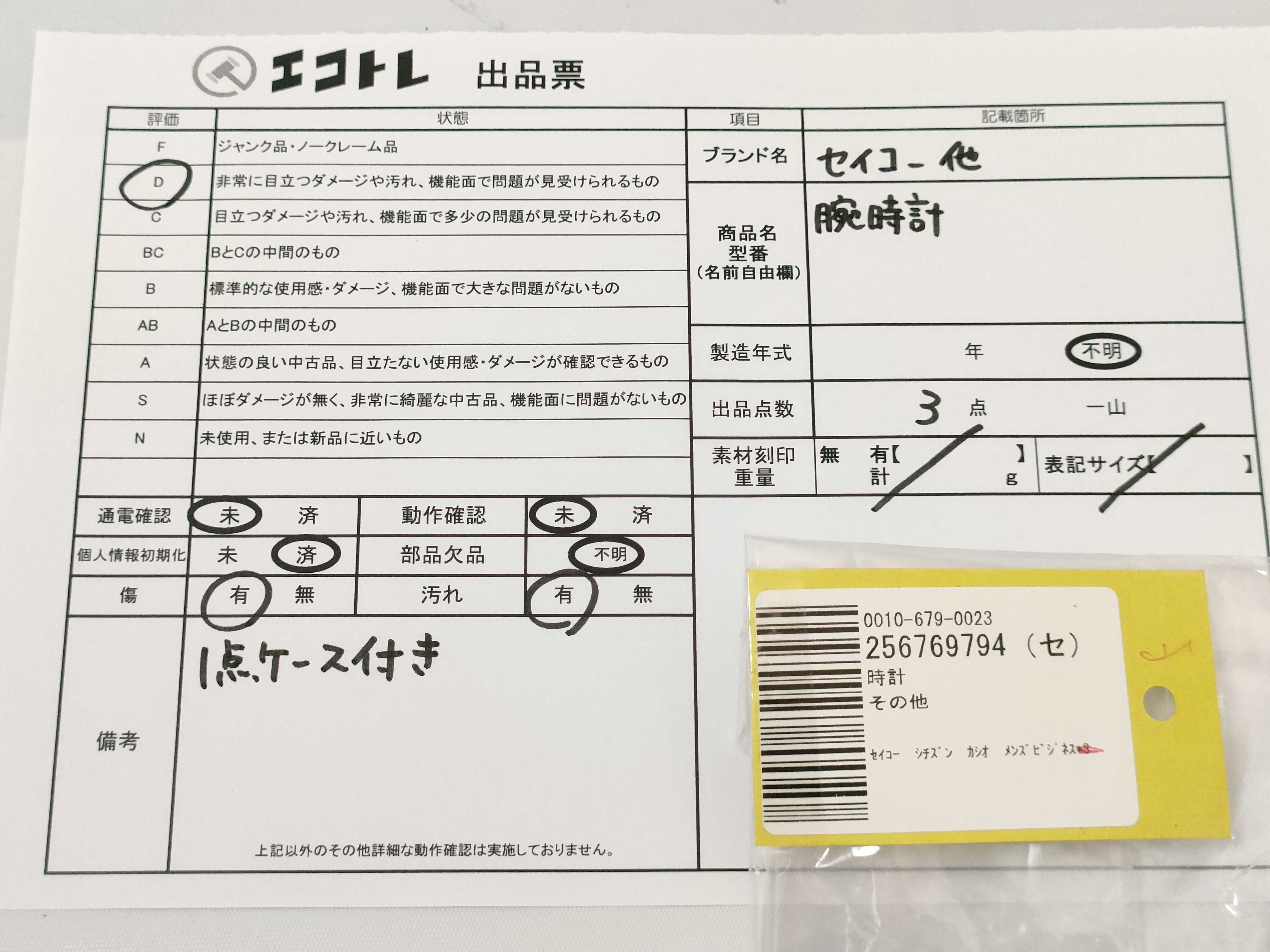 商品内容によって、JITBOXなどでの発送となる可能性がございます事ご理解下さい。年式などの商品情報詳細は写真にてご確認願います。※ご入札の際はご利用規約をよくお読みになってからのご参加お願いします。","タイプライン":"","カテゴリ":"時計","形状コード":"メンズ腕時計","付属品コード":"","シリアル・シール・型番":""