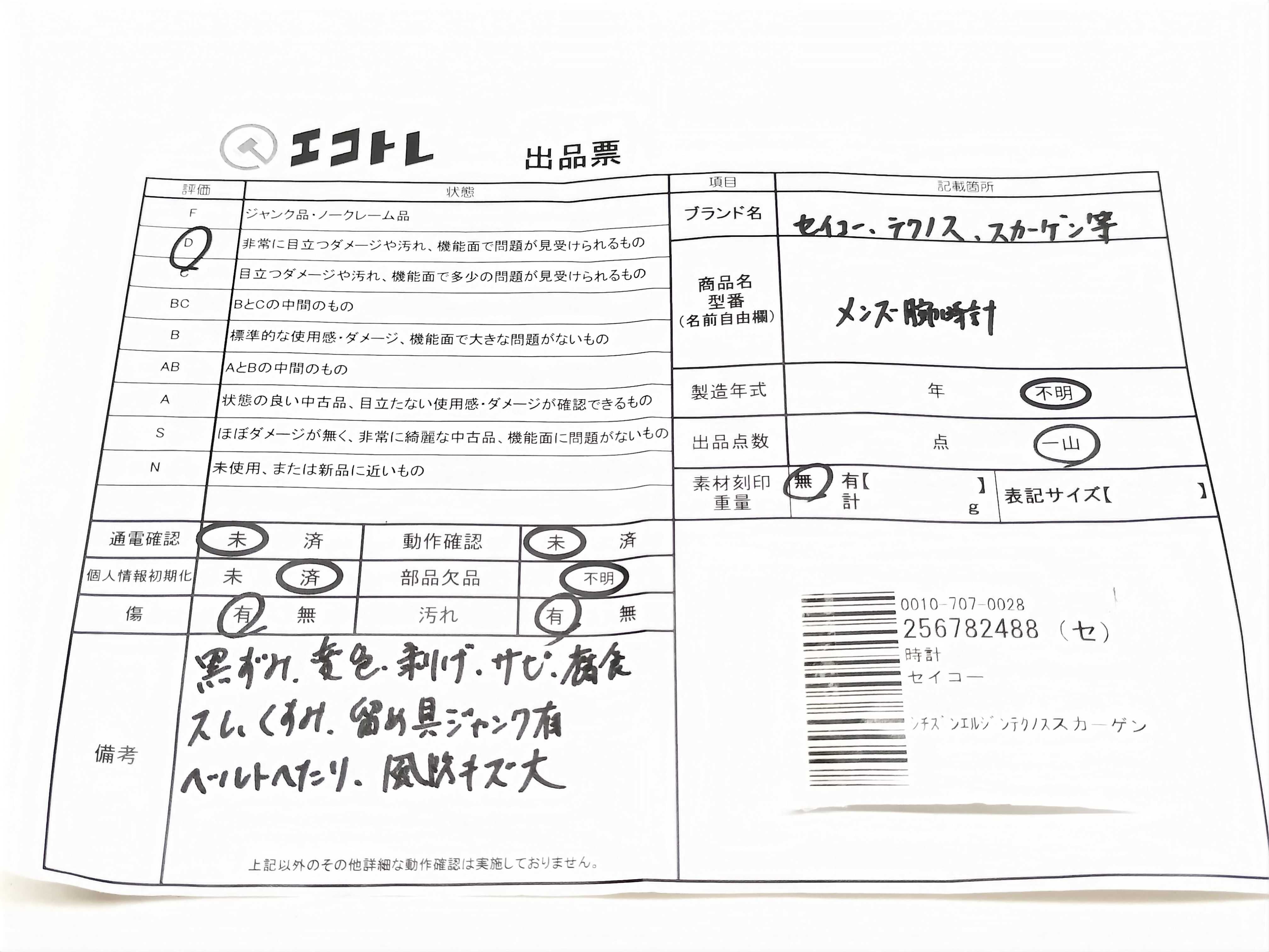商品内容によって、JITBOXなどでの発送となる可能性がございます事ご理解下さい。年式などの商品情報詳細は写真にてご確認願います。※ご入札の際はご利用規約をよくお読みになってからのご参加お願いします。","タイプライン":"","カテゴリ":"時計","形状コード":"メンズ腕時計","付属品コード":"","シリアル・シール・型番":""