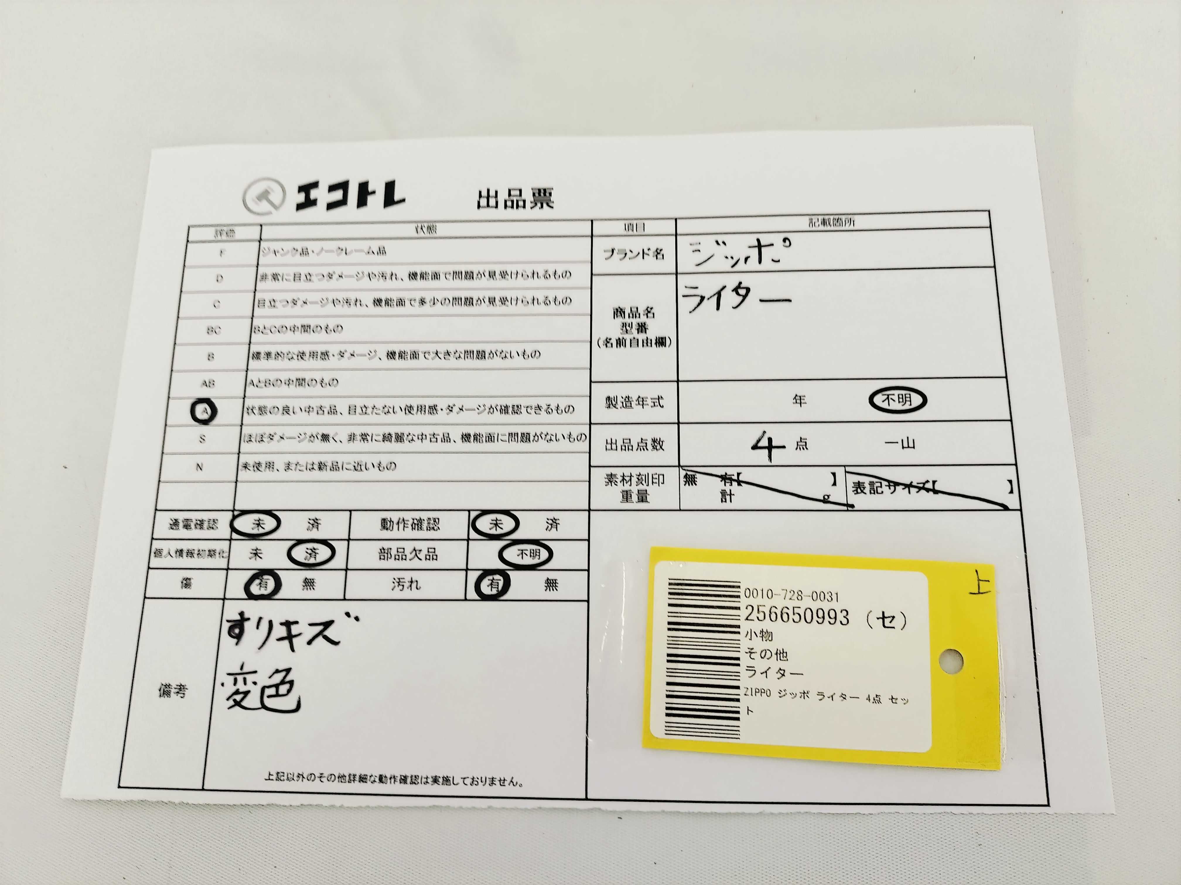 ▼SHIPPING TO JPN ONLY▼ZIPPO ジッポ ライター 4点 セット","タイプライン":"","カテゴリ":"喫煙具","形状コード":"ライター","付属品コード":"","シリアル・シール・型番":""
