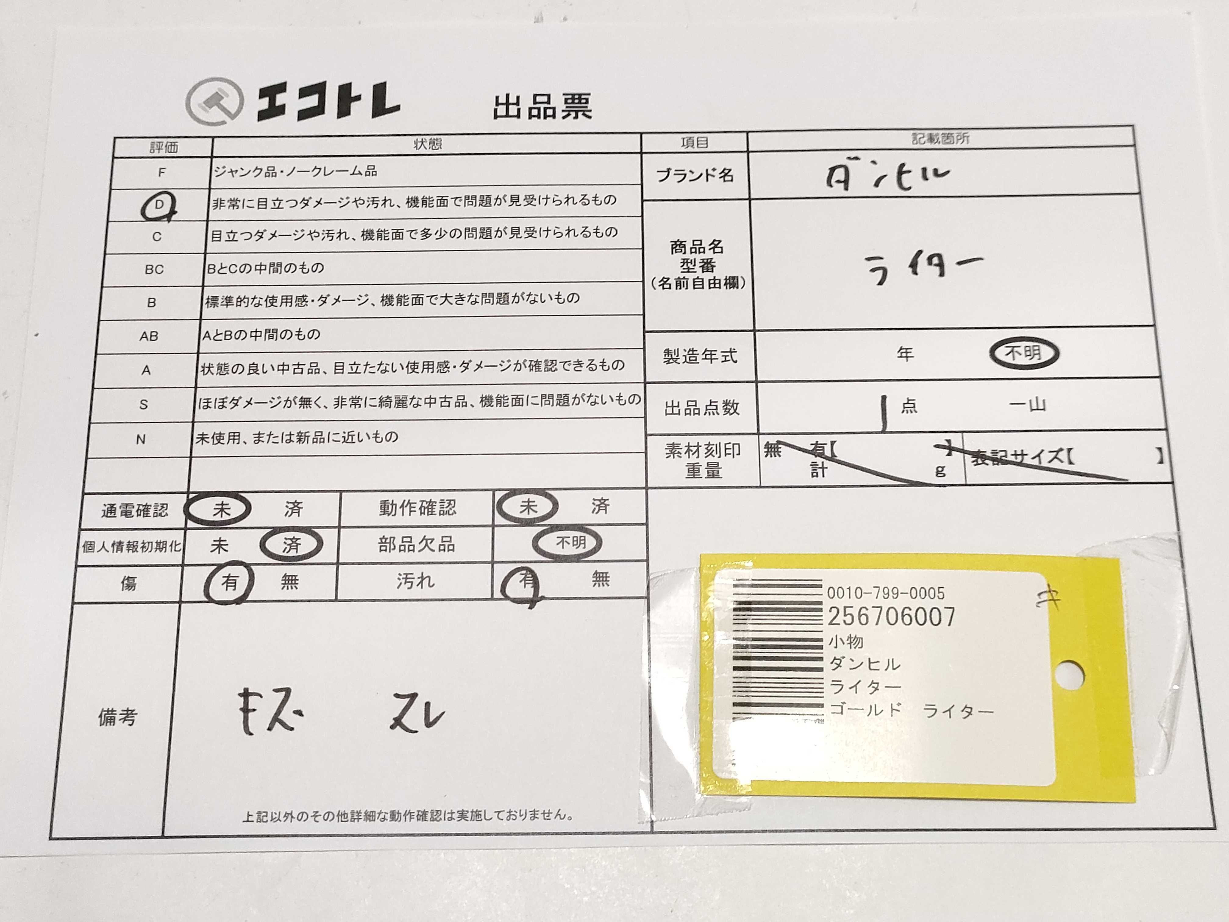 ▼SHIPPING TO JPN ONLY▼dunhill ゴールド ライター","タイプライン":"","カテゴリ":"喫煙具","形状コード":"ライター","付属品コード":"","シリアル・シール・型番":""