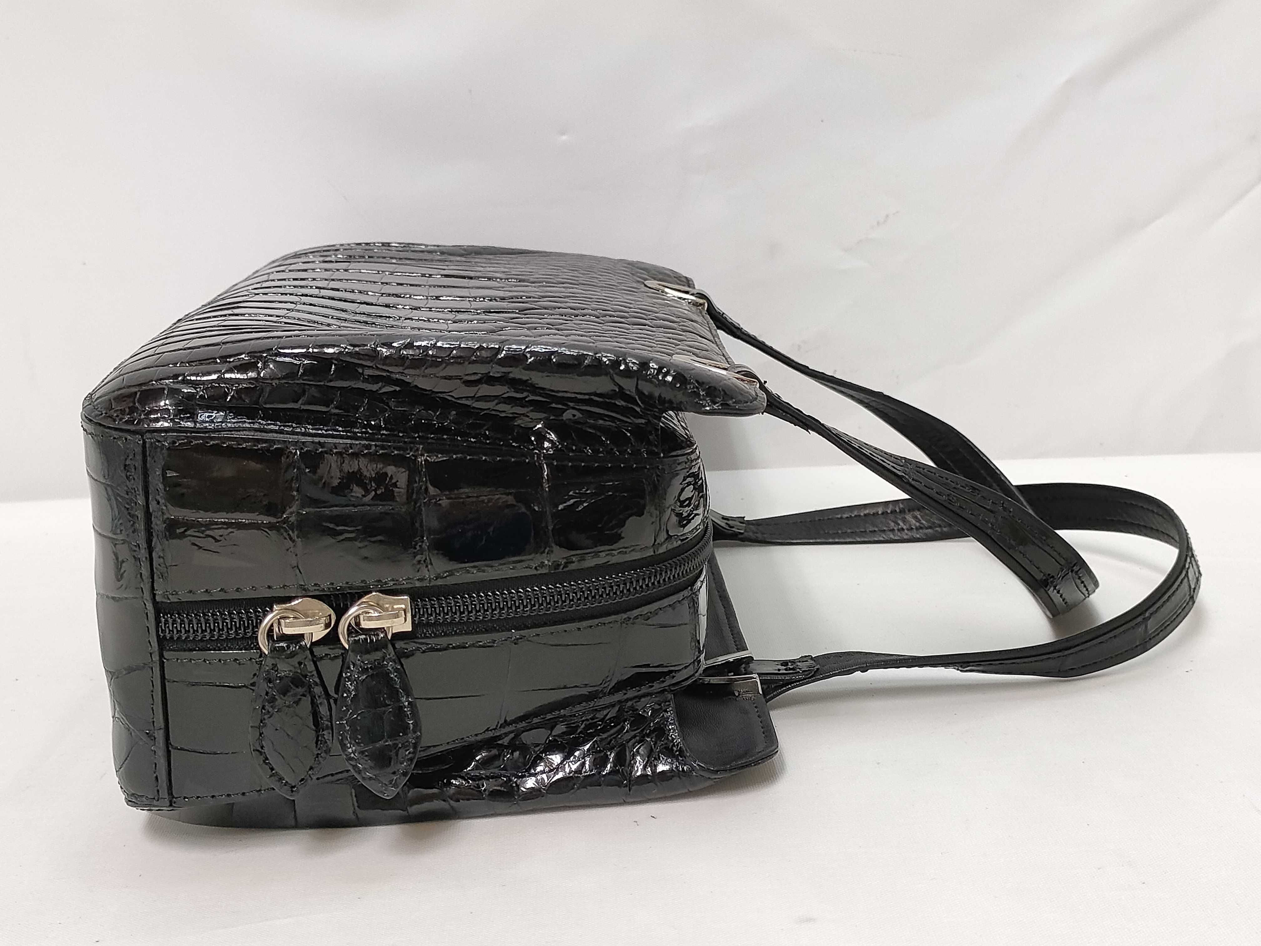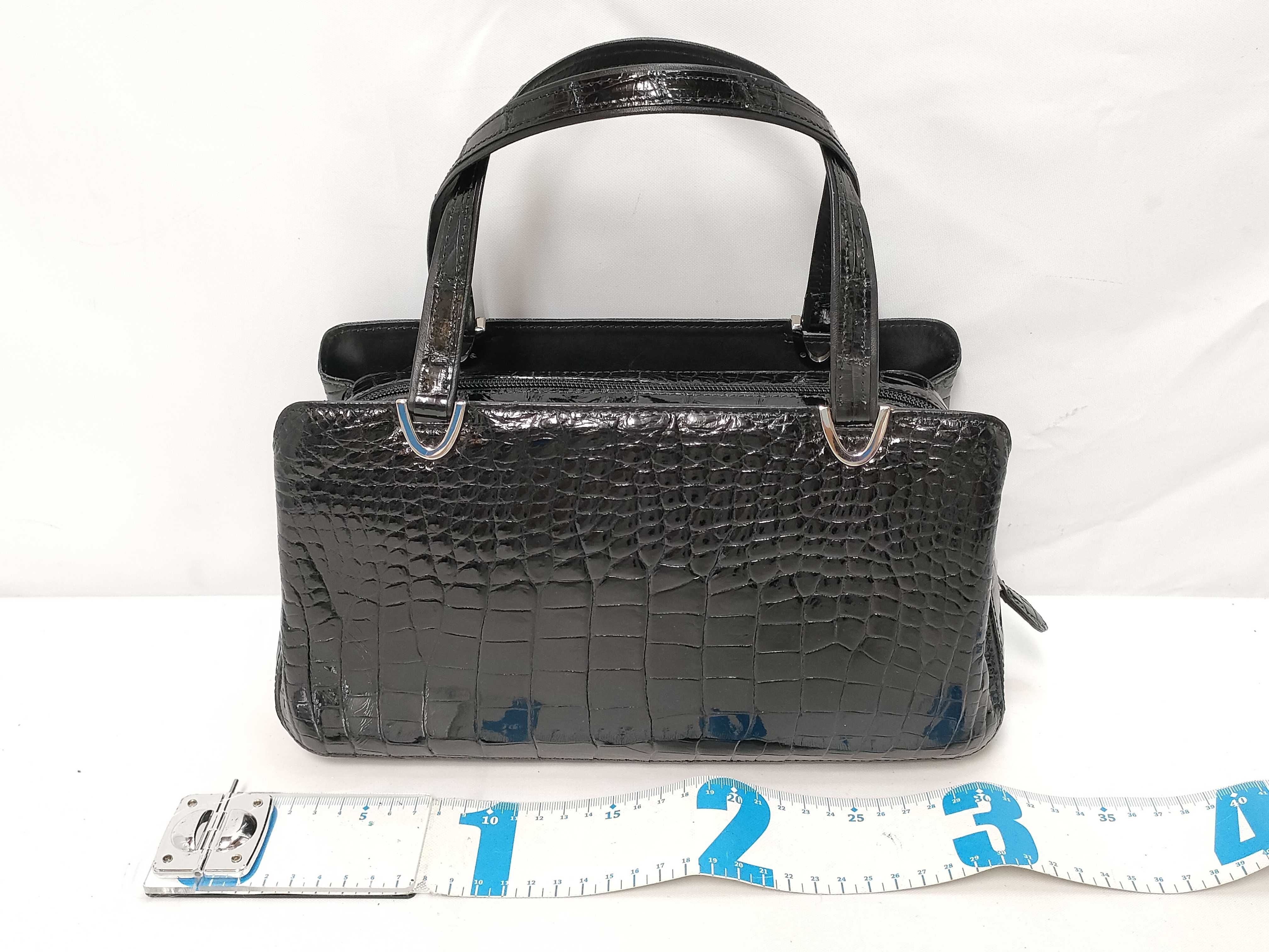 (B_0777)▼シャイニークロコ ハンドバッグ