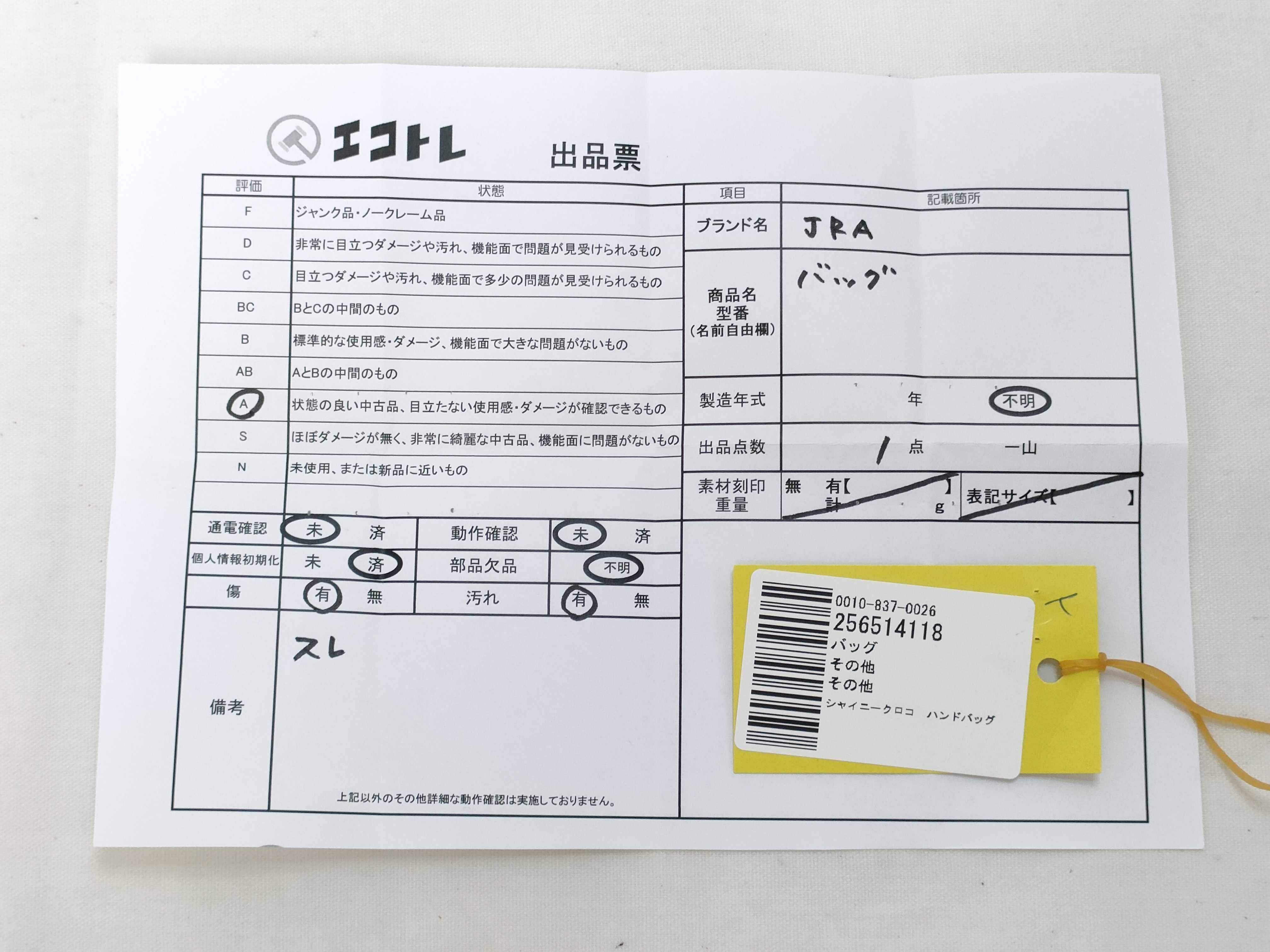商品内容によって、JITBOXなどでの発送となる可能性がございます事ご理解下さい。年式などの商品情報詳細は写真にてご確認願います。※ご入札の際はご利用規約をよくお読みになってからのご参加お願いします。","タイプライン":"","カテゴリ":"バッグ","形状コード":"ハンドバッグ","付属品コード":"","シリアル・シール・型番":""