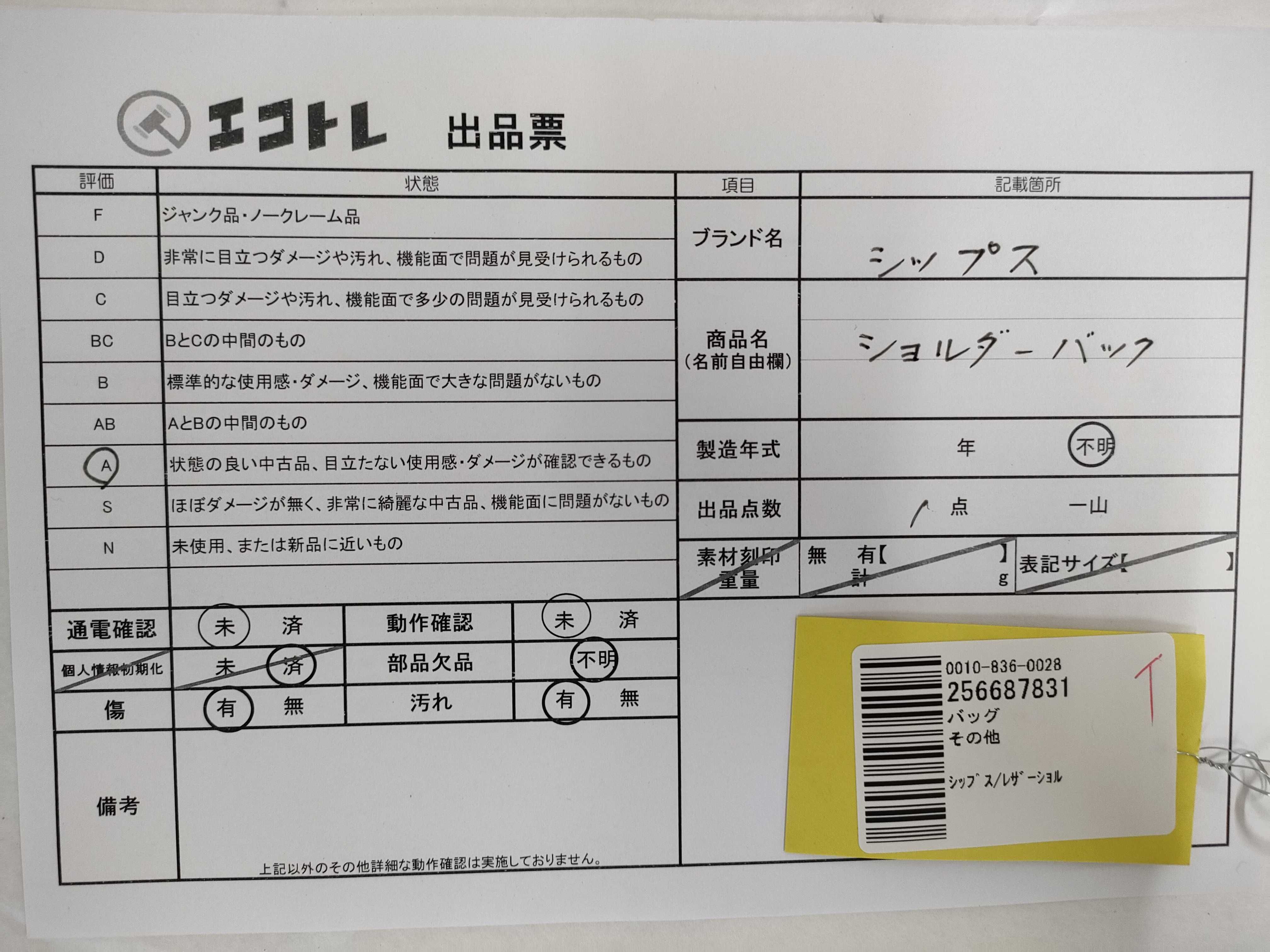 商品内容によって、JITBOXなどでの発送となる可能性がございます事ご理解下さい。年式などの商品情報詳細は写真にてご確認願います。※ご入札の際はご利用規約をよくお読みになってからのご参加お願いします。","タイプライン":"","カテゴリ":"バッグ","形状コード":"ショルダーバッグ","付属品コード":"","シリアル・シール・型番":""