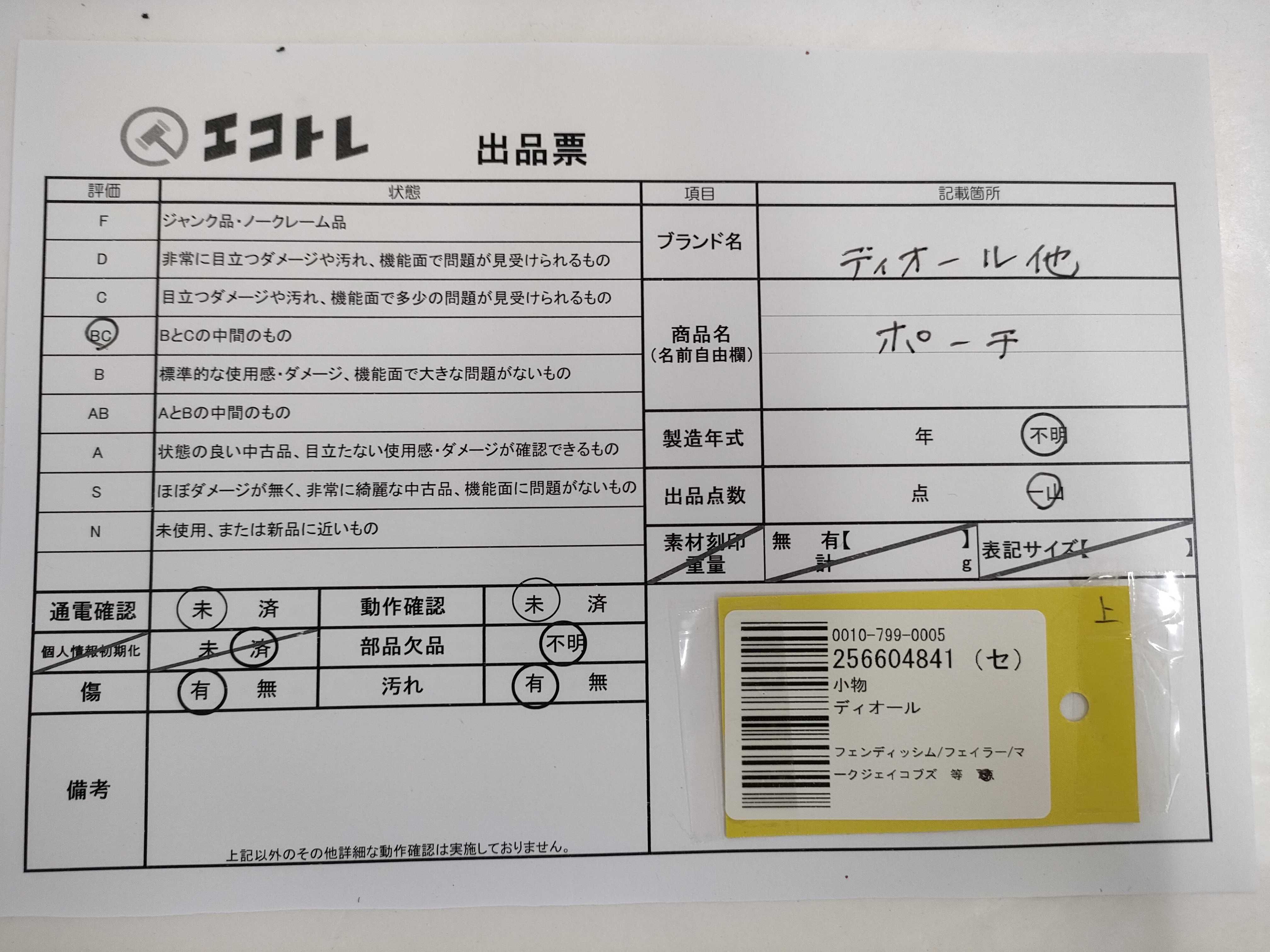 商品内容によって、JITBOXなどでの発送となる可能性がございます事ご理解下さい。年式などの商品情報詳細は写真にてご確認願います。※ご入札の際はご利用規約をよくお読みになってからのご参加お願いします。","タイプライン":"","カテゴリ":"バッグ","形状コード":"ポーチ","付属品コード":"","シリアル・シール・型番":""