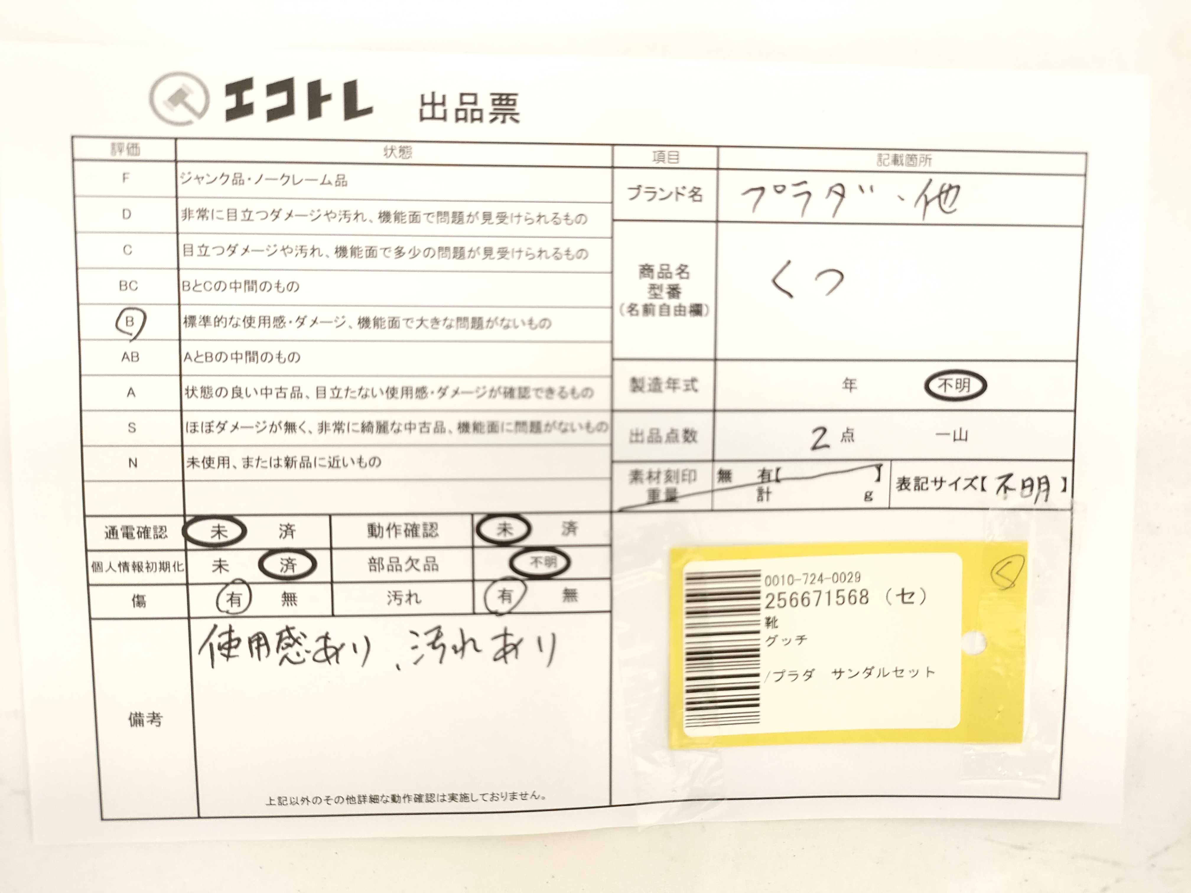 商品内容によって、JITBOXなどでの発送となる可能性がございます事ご理解下さい。年式などの商品情報詳細は写真にてご確認願います。※ご入札の際はご利用規約をよくお読みになってからのご参加お願いします。","タイプライン":"","カテゴリ":"靴","形状コード":"サンダル","付属品コード":"","シリアル・シール・型番":""