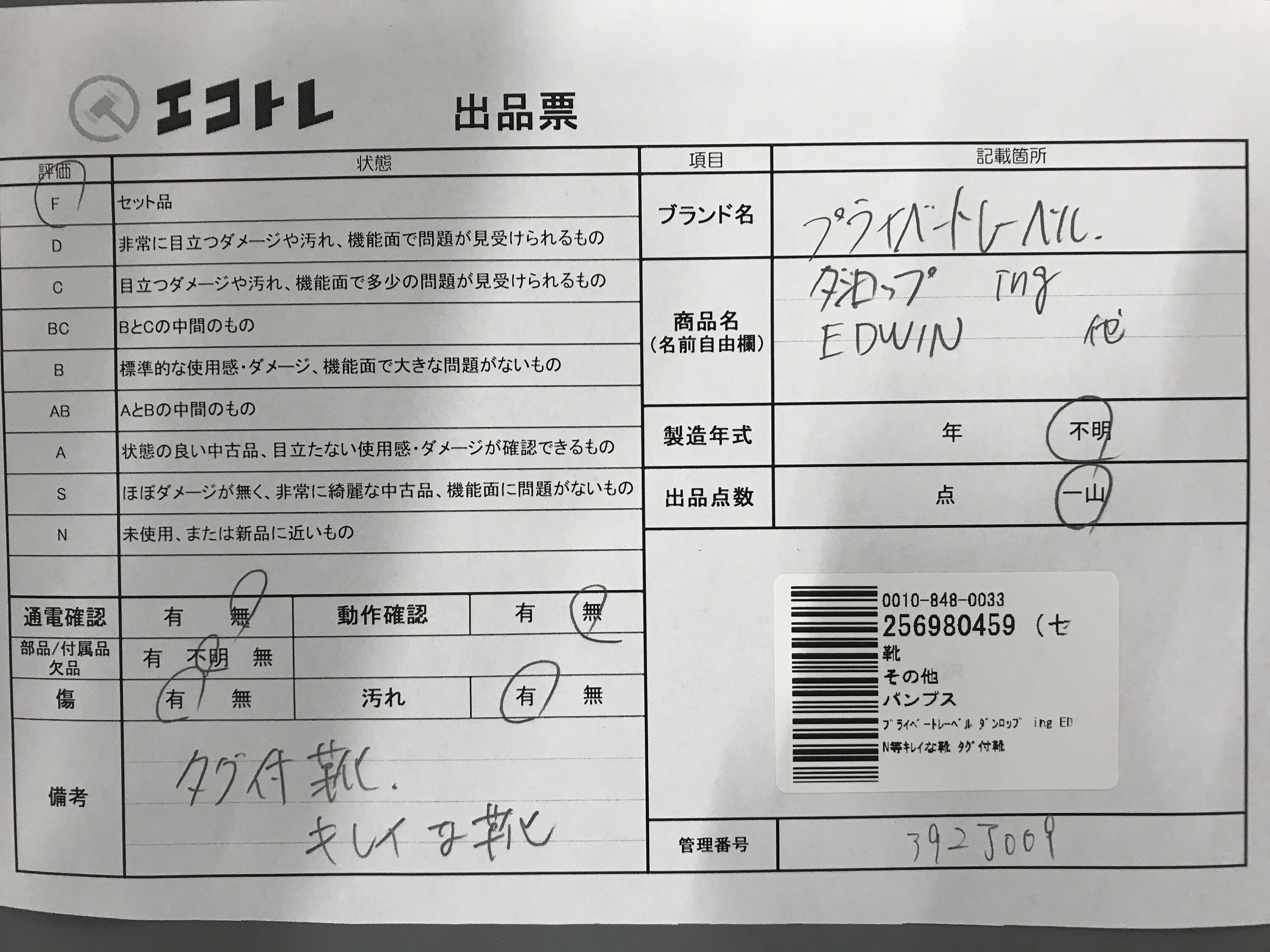 (B_0887)▼プライベートレーベル ダンロップ ing EDWIN等キレイな靴 タグ付靴 その他靴