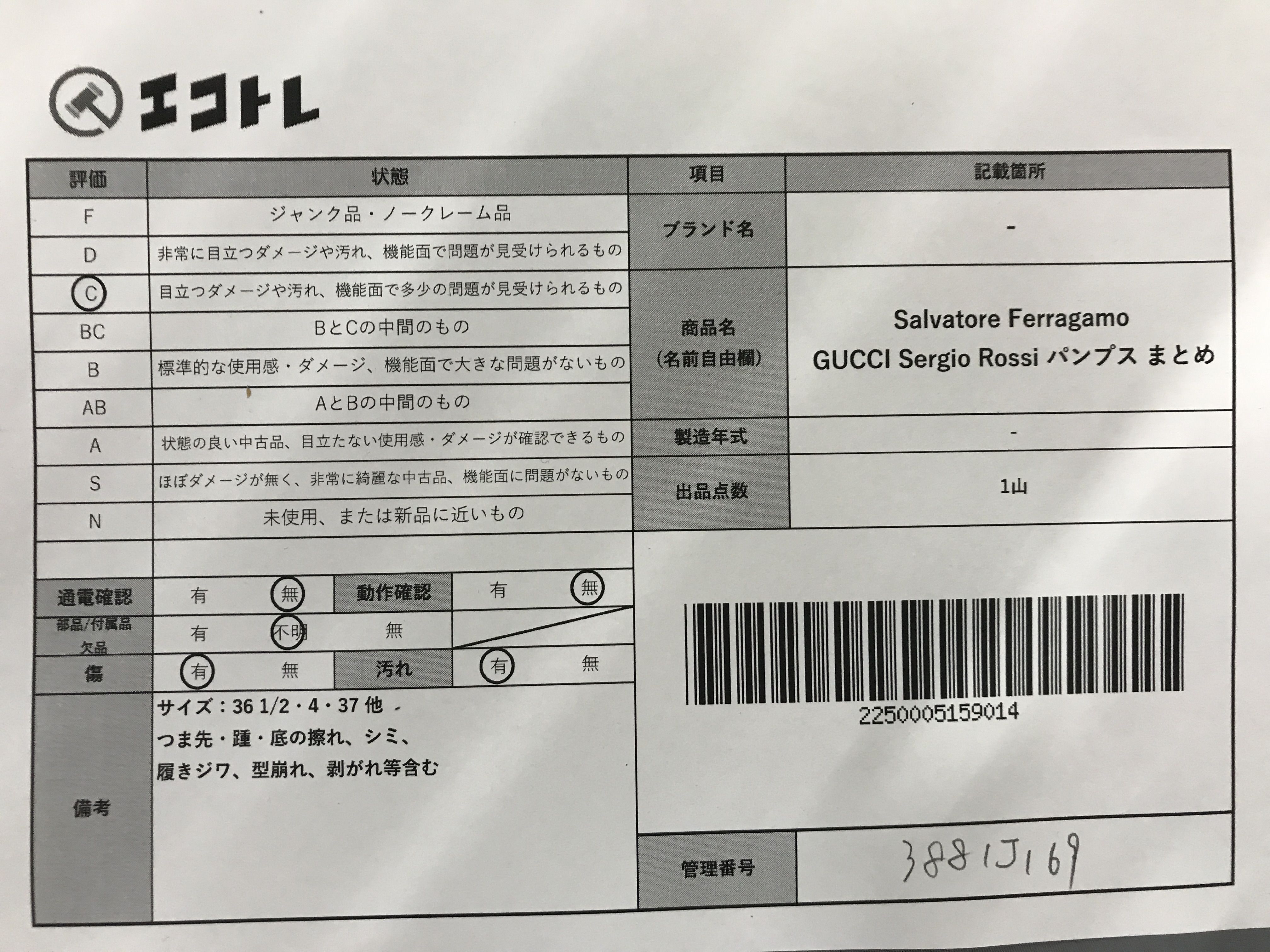 商品内容によって、JITBOXなどでの発送となる可能性がございます事ご理解下さい。年式などの商品情報詳細は写真にてご確認願います。※ご入札の際はご利用規約をよくお読みになってからのご参加お願いします。","タイプライン":"","カテゴリ":"靴","形状コード":"パンプス","付属品コード":"","シリアル・シール・型番":""