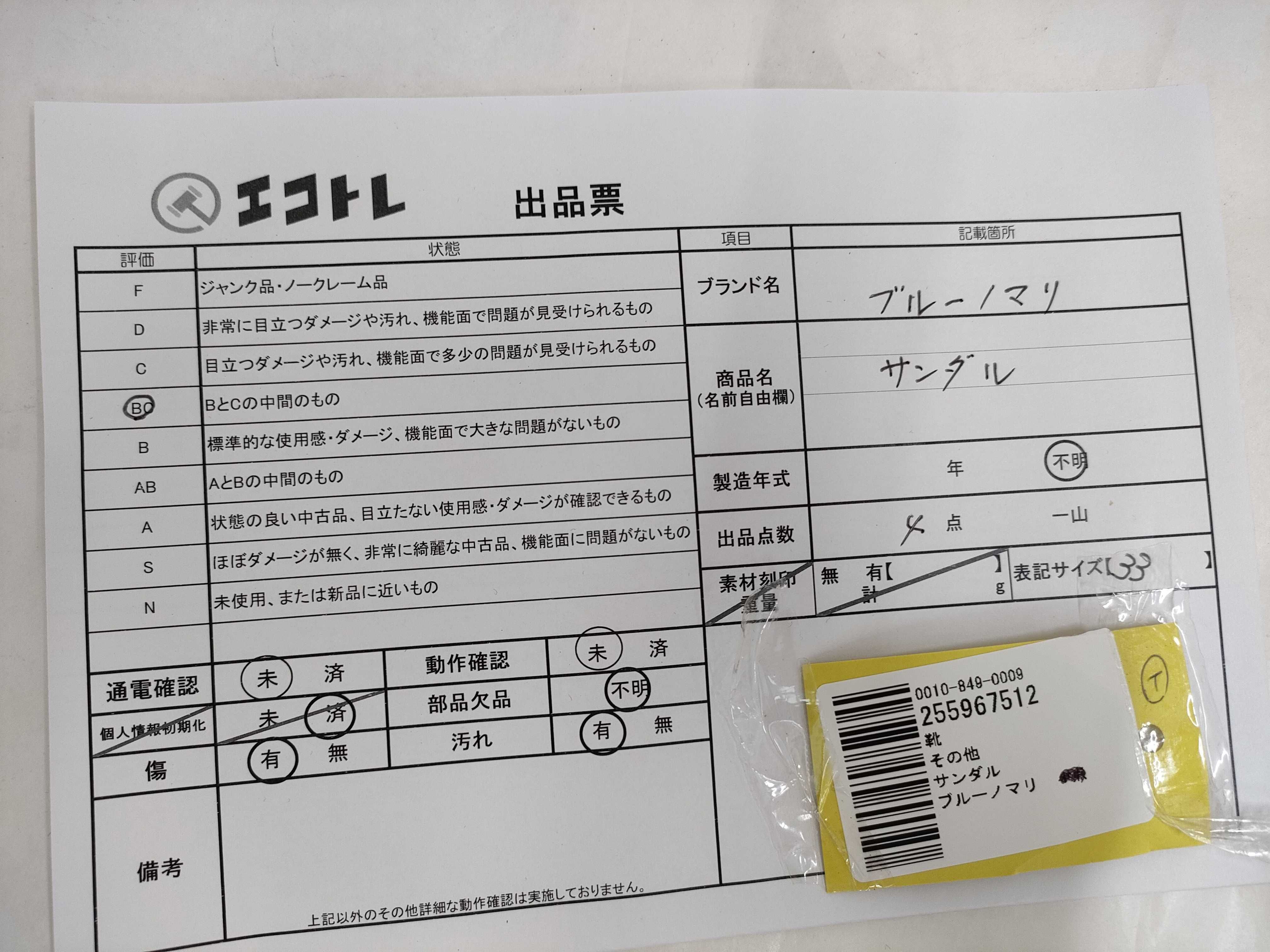 商品内容によって、JITBOXなどでの発送となる可能性がございます事ご理解下さい。年式などの商品情報詳細は写真にてご確認願います。※ご入札の際はご利用規約をよくお読みになってからのご参加お願いします。","タイプライン":"","カテゴリ":"靴","形状コード":"サンダル","付属品コード":"","シリアル・シール・型番":""