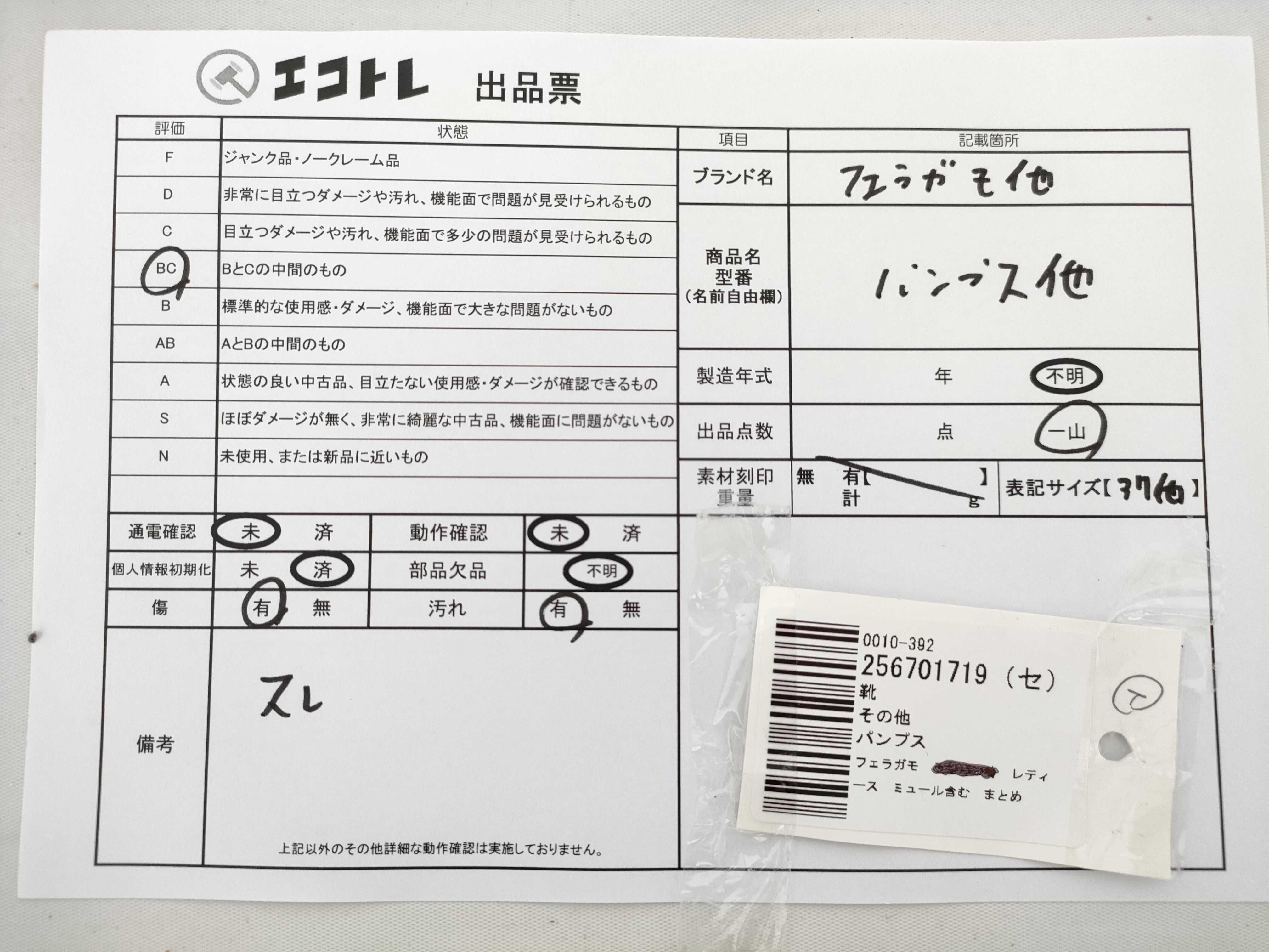 商品内容によって、JITBOXなどでの発送となる可能性がございます事ご理解下さい。年式などの商品情報詳細は写真にてご確認願います。※ご入札の際はご利用規約をよくお読みになってからのご参加お願いします。","タイプライン":"","カテゴリ":"靴","形状コード":"パンプス","付属品コード":"","シリアル・シール・型番":""
