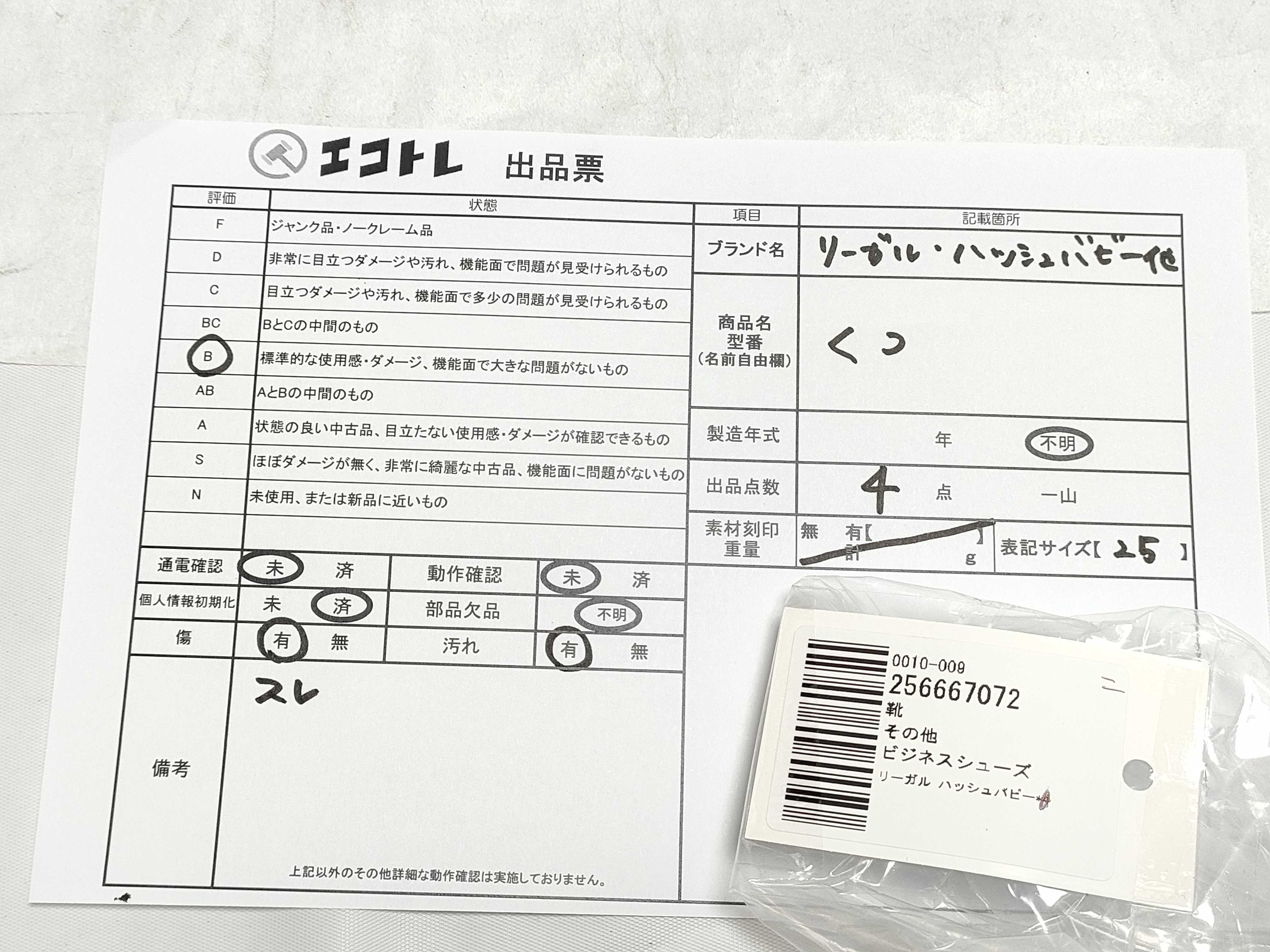 商品内容によって、JITBOXなどでの発送となる可能性がございます事ご理解下さい。年式などの商品情報詳細は写真にてご確認願います。※ご入札の際はご利用規約をよくお読みになってからのご参加お願いします。","タイプライン":"","カテゴリ":"靴","形状コード":"ビジネスシューズ","付属品コード":"","シリアル・シール・型番":""