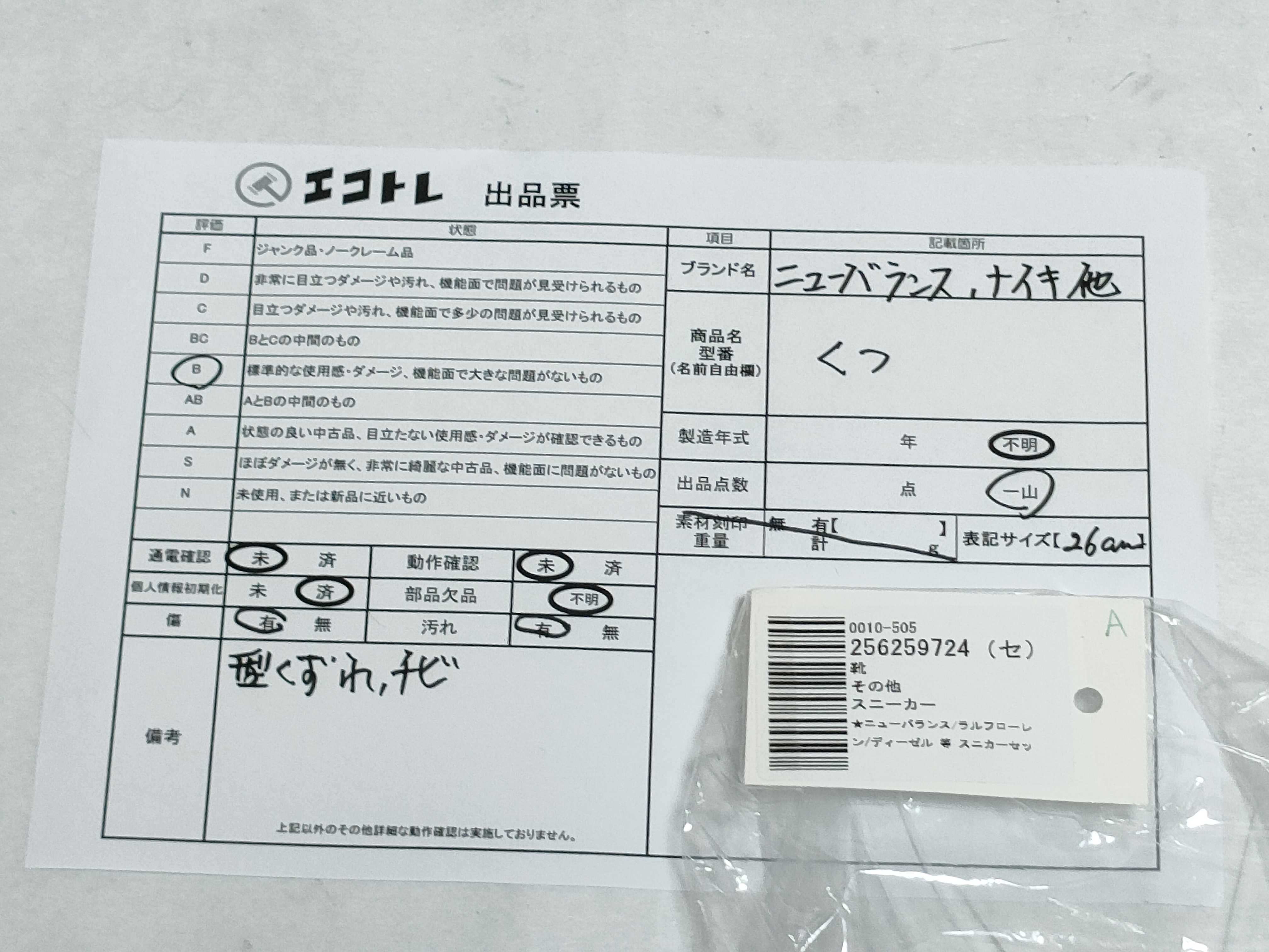 商品内容によって、JITBOXなどでの発送となる可能性がございます事ご理解下さい。年式などの商品情報詳細は写真にてご確認願います。※ご入札の際はご利用規約をよくお読みになってからのご参加お願いします。","タイプライン":"","カテゴリ":"靴","形状コード":"スニーカー","付属品コード":"","シリアル・シール・型番":""