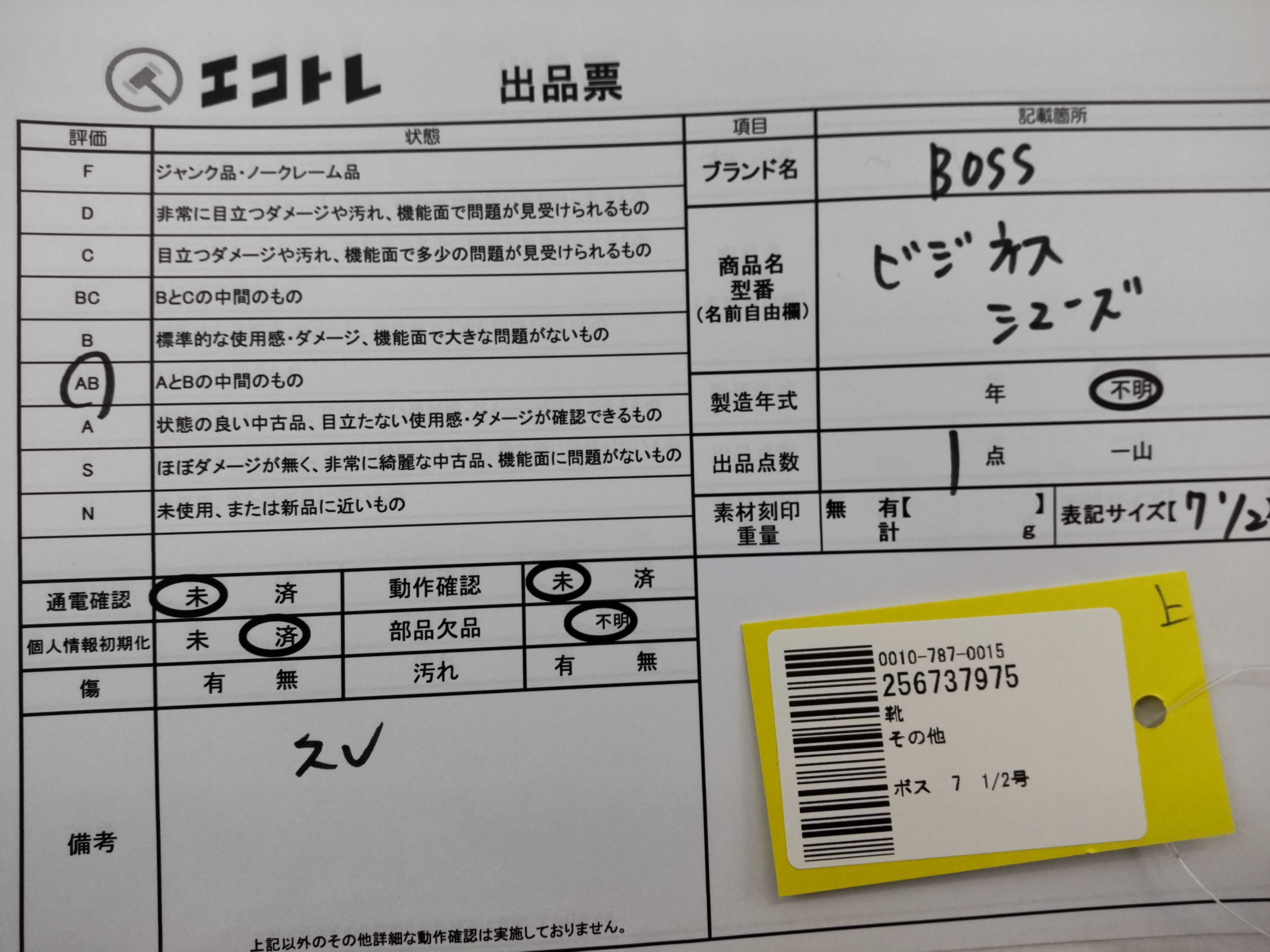 (B_1107)▼ボス 7 1/2号 ビジネスシューズ