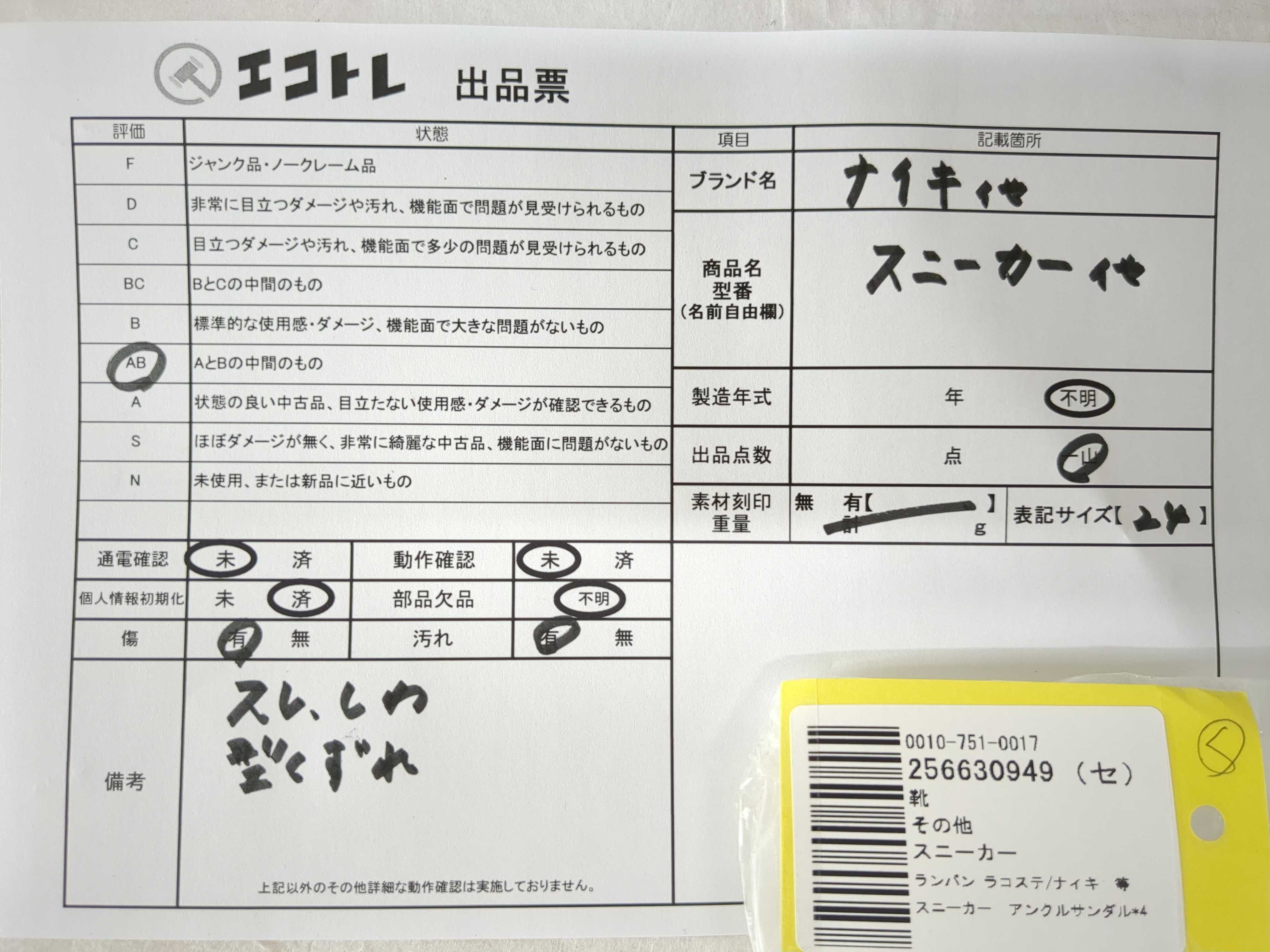 商品内容によって、JITBOXなどでの発送となる可能性がございます事ご理解下さい。年式などの商品情報詳細は写真にてご確認願います。※ご入札の際はご利用規約をよくお読みになってからのご参加お願いします。","タイプライン":"","カテゴリ":"靴","形状コード":"スニーカー","付属品コード":"","シリアル・シール・型番":""