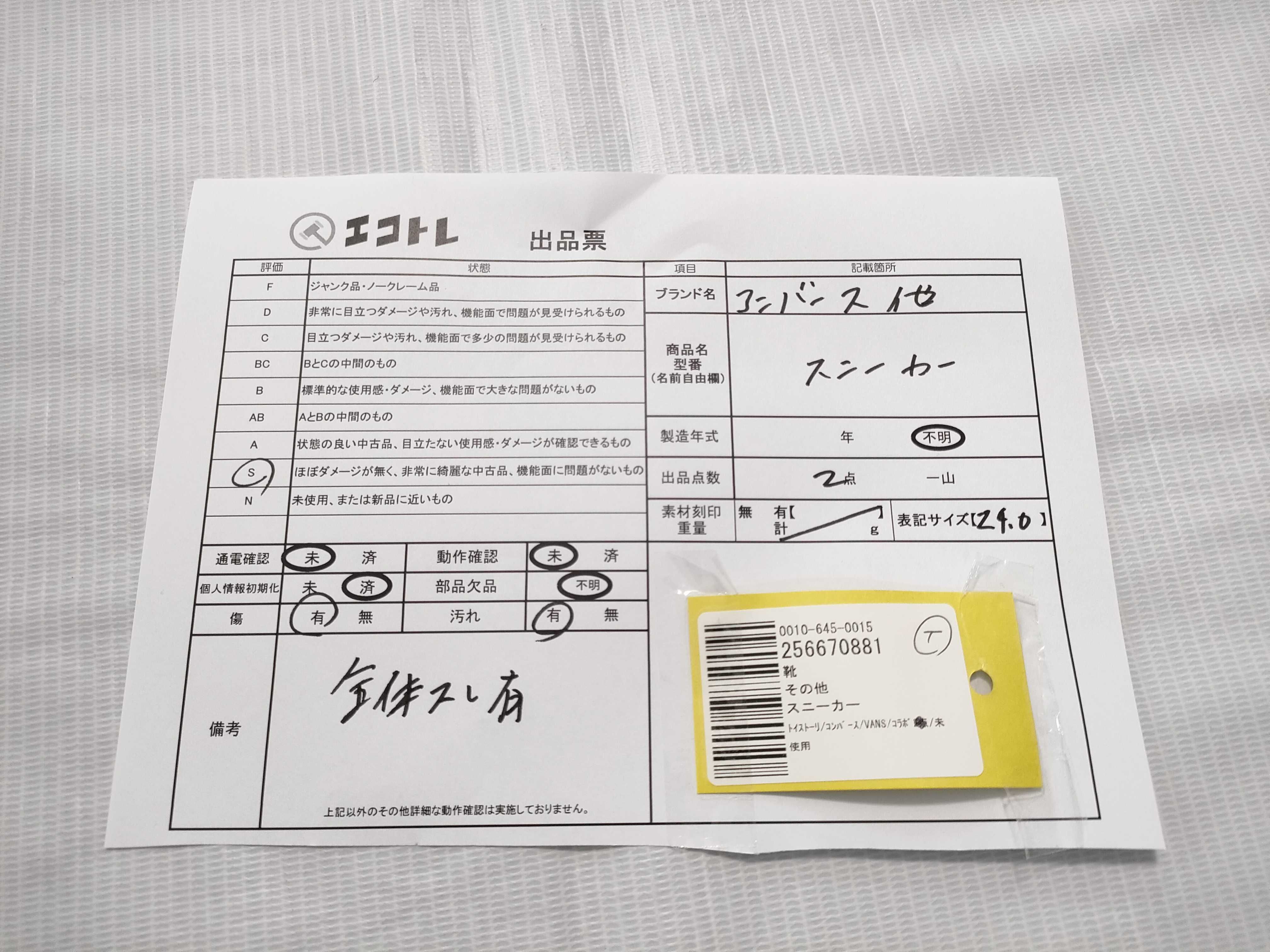 商品内容によって、JITBOXなどでの発送となる可能性がございます事ご理解下さい。年式などの商品情報詳細は写真にてご確認願います。※ご入札の際はご利用規約をよくお読みになってからのご参加お願いします。","タイプライン":"","カテゴリ":"靴","形状コード":"スニーカー","付属品コード":"","シリアル・シール・型番":""