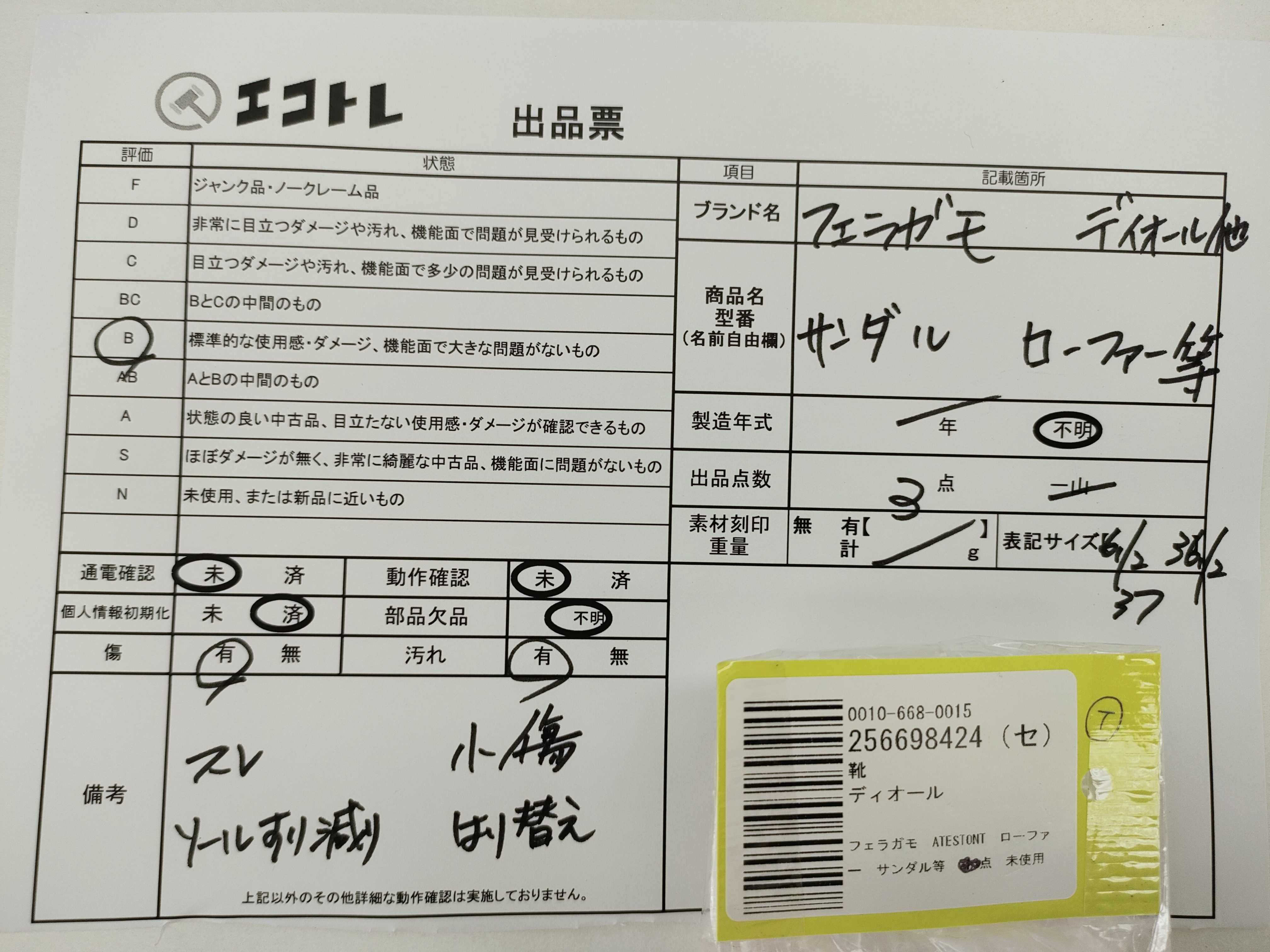 (B_1163)▼Dior フェラガモ ATESTONT ローファー サンダル等 計3点 未使用