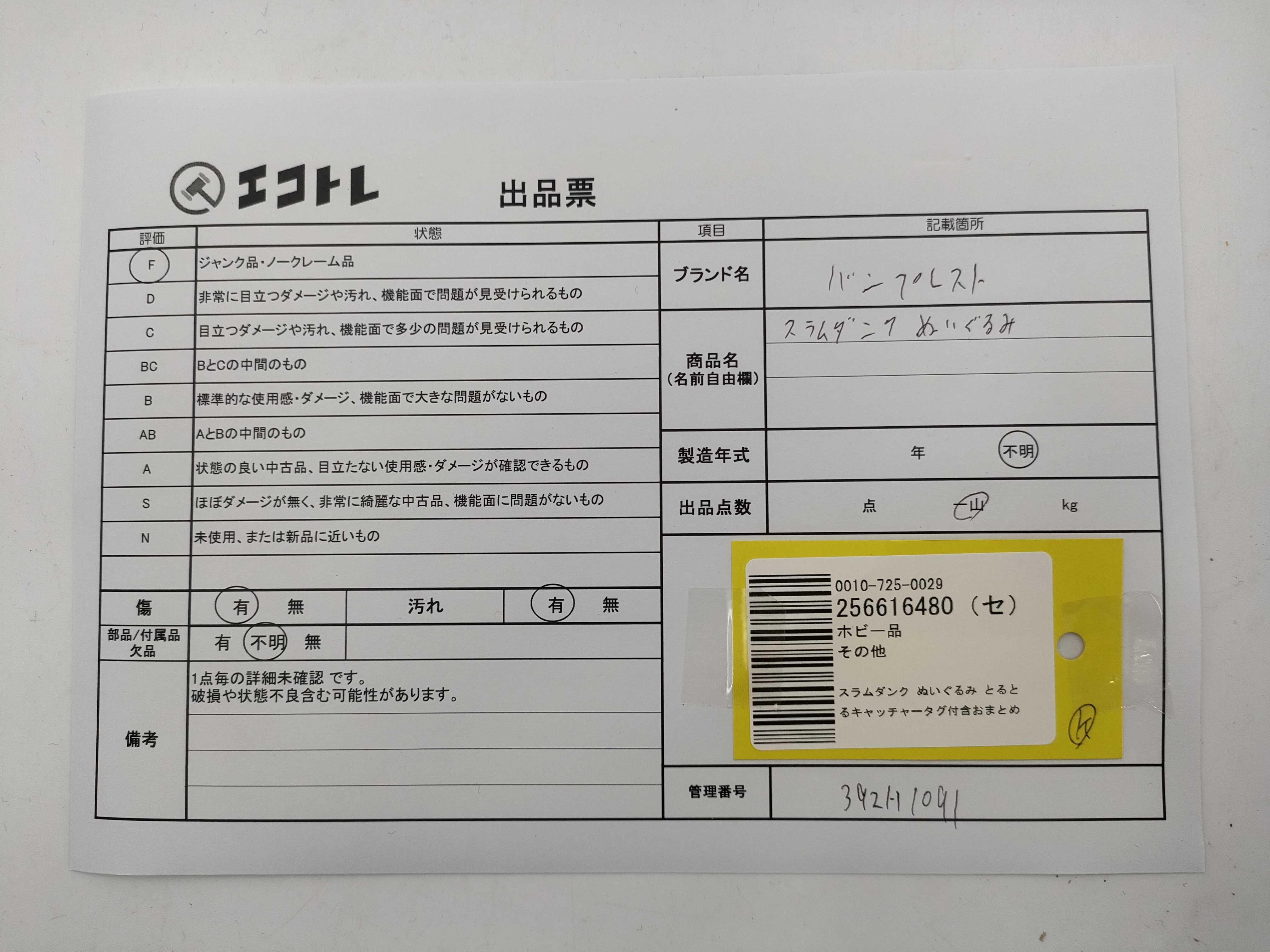 商品内容によって、JITBOXなどでの発送となる可能性がございます事ご理解下さい。年式などの商品情報詳細は写真にてご確認願います。※ご入札の際はご利用規約をよくお読みになってからのご参加お願いします。","タイプライン":"","カテゴリ":"ホビー","形状コード":"ぬいぐるみ","付属品コード":"","シリアル・シール・型番":""