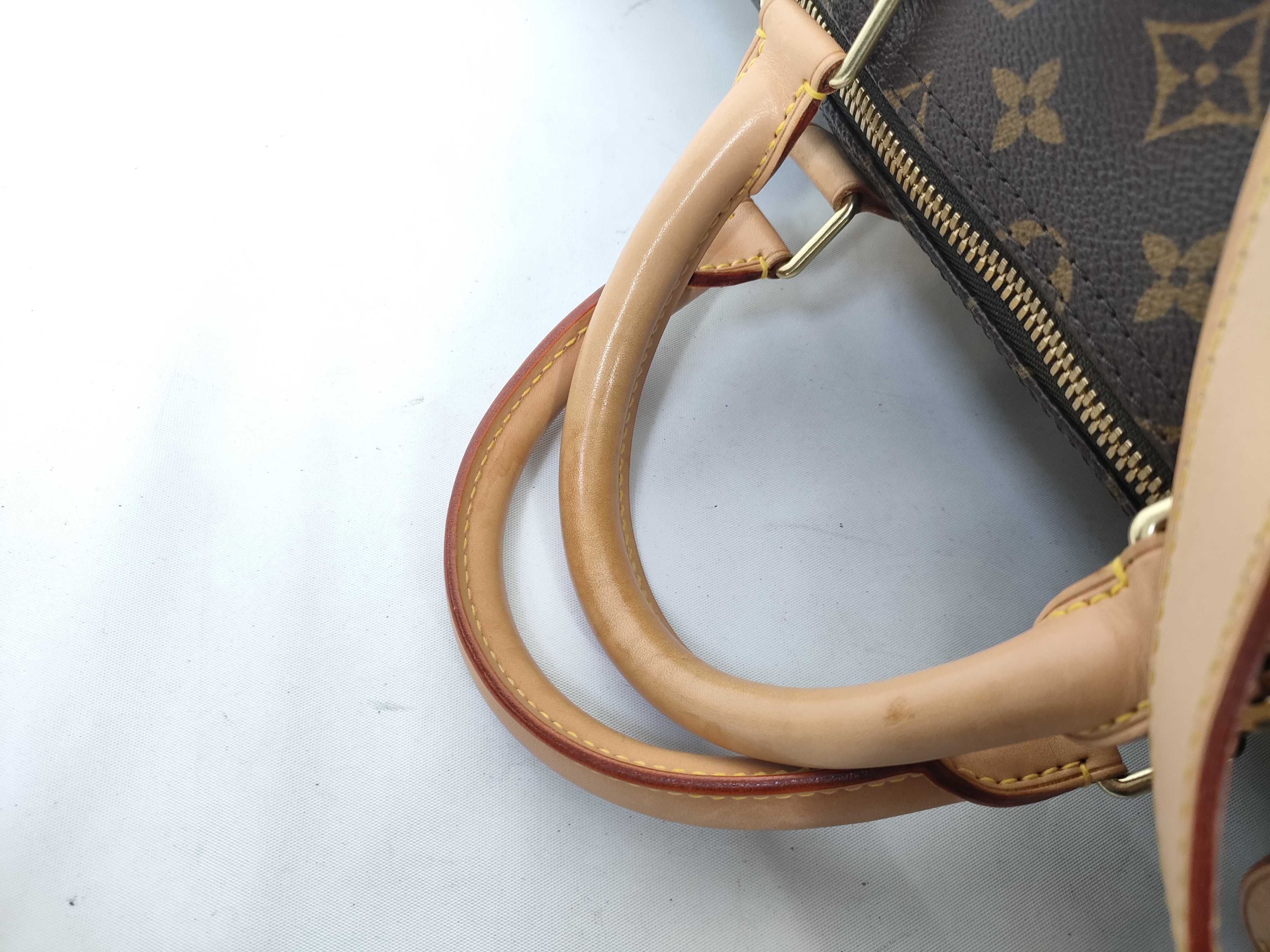 全体ヤケ擦れ(中) 角縁擦れ(中) 金具剥げ青錆(中) ヌメ革ヤケシミ汚れ(中) 内側擦れ汚れ(小) 香水臭(小) 【シリアル