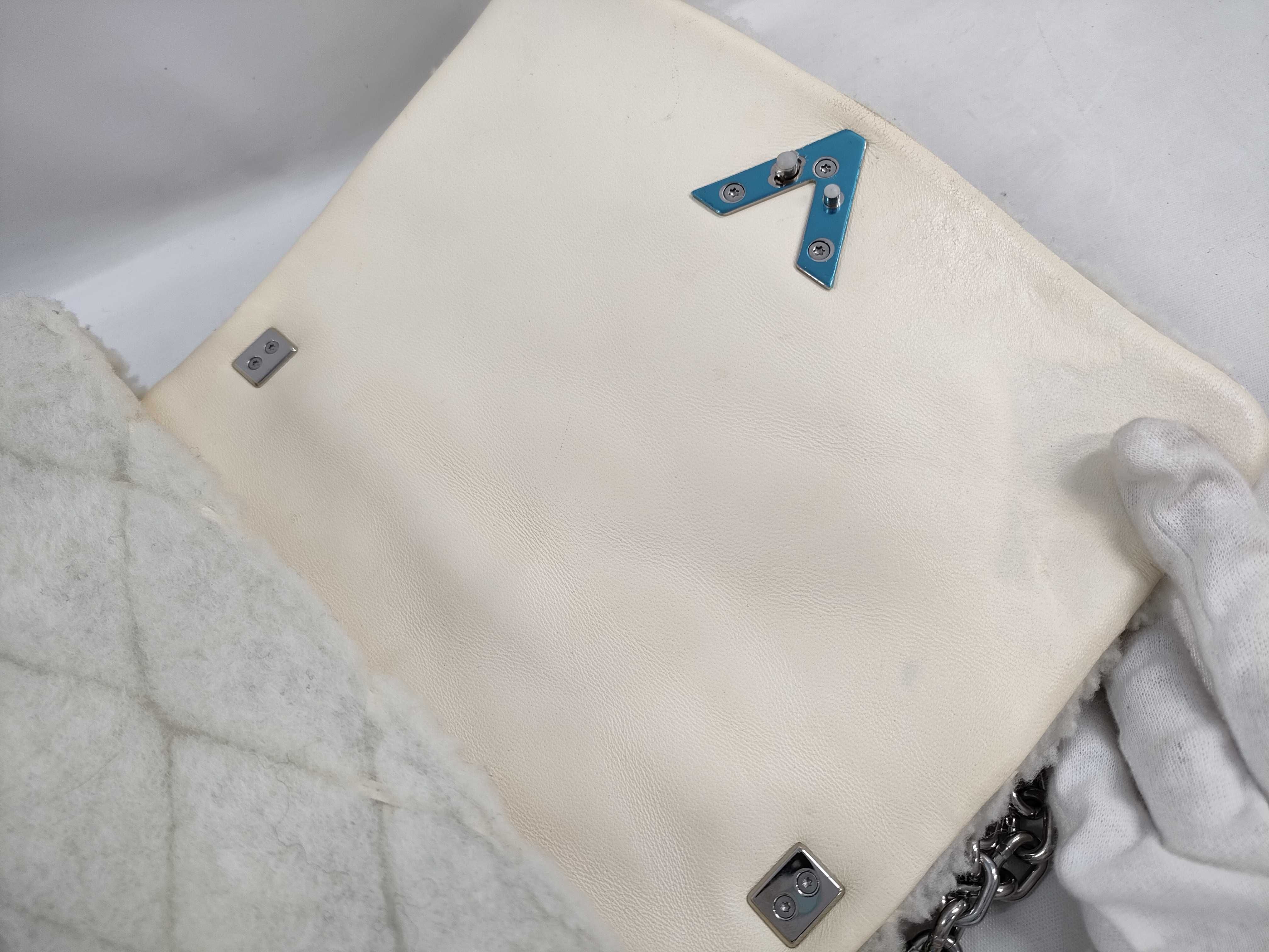 ファー擦れ毛羽立ち・汚れ(中) 全体焼け擦れ薄汚れ(中) 型崩れ(中) 金具擦れ傷(小) 持ち手革擦れ汚れ・コバ擦れ剥げ(中) 内側擦れ汚れ(中) フラップ裏染み変色有り(大) /付属・・・ミラー【シリアル