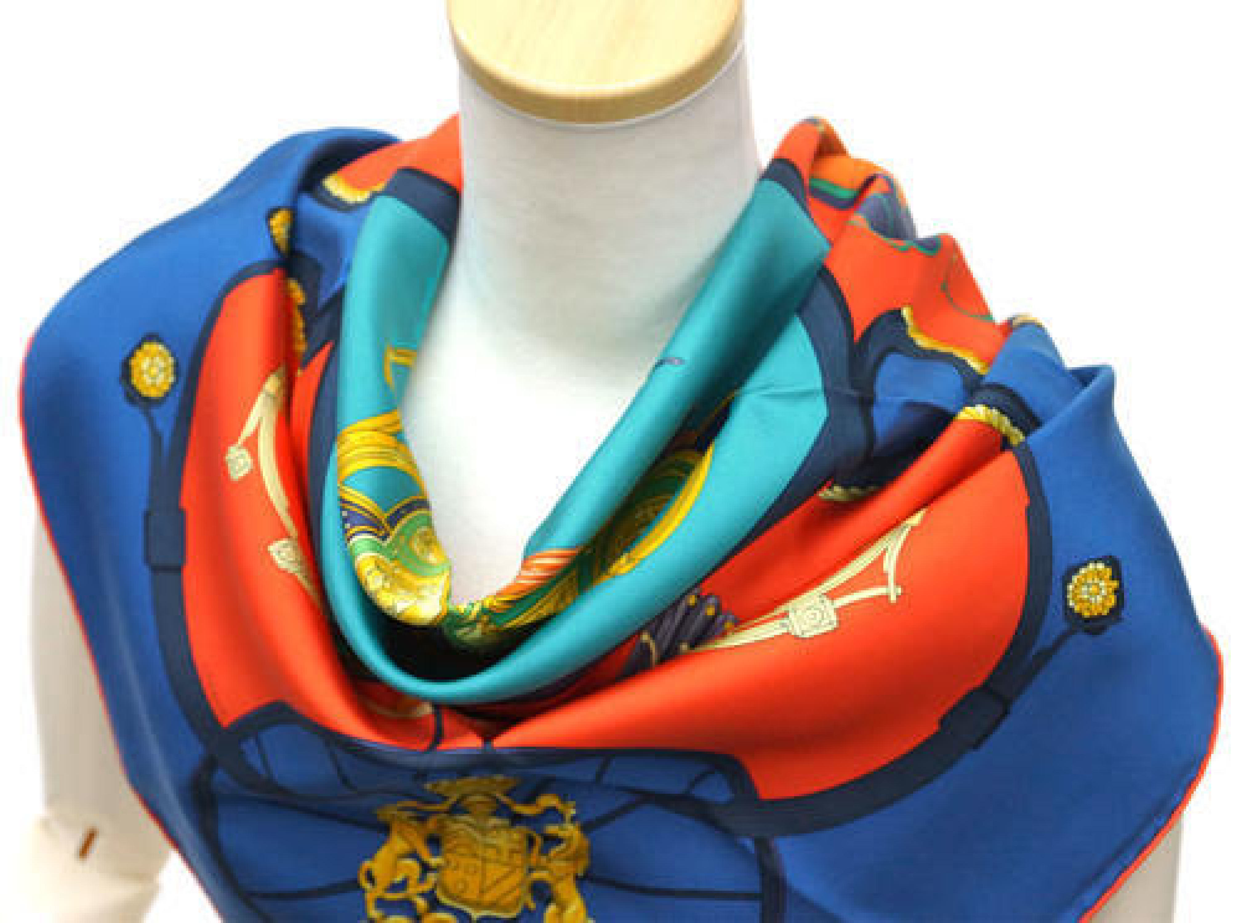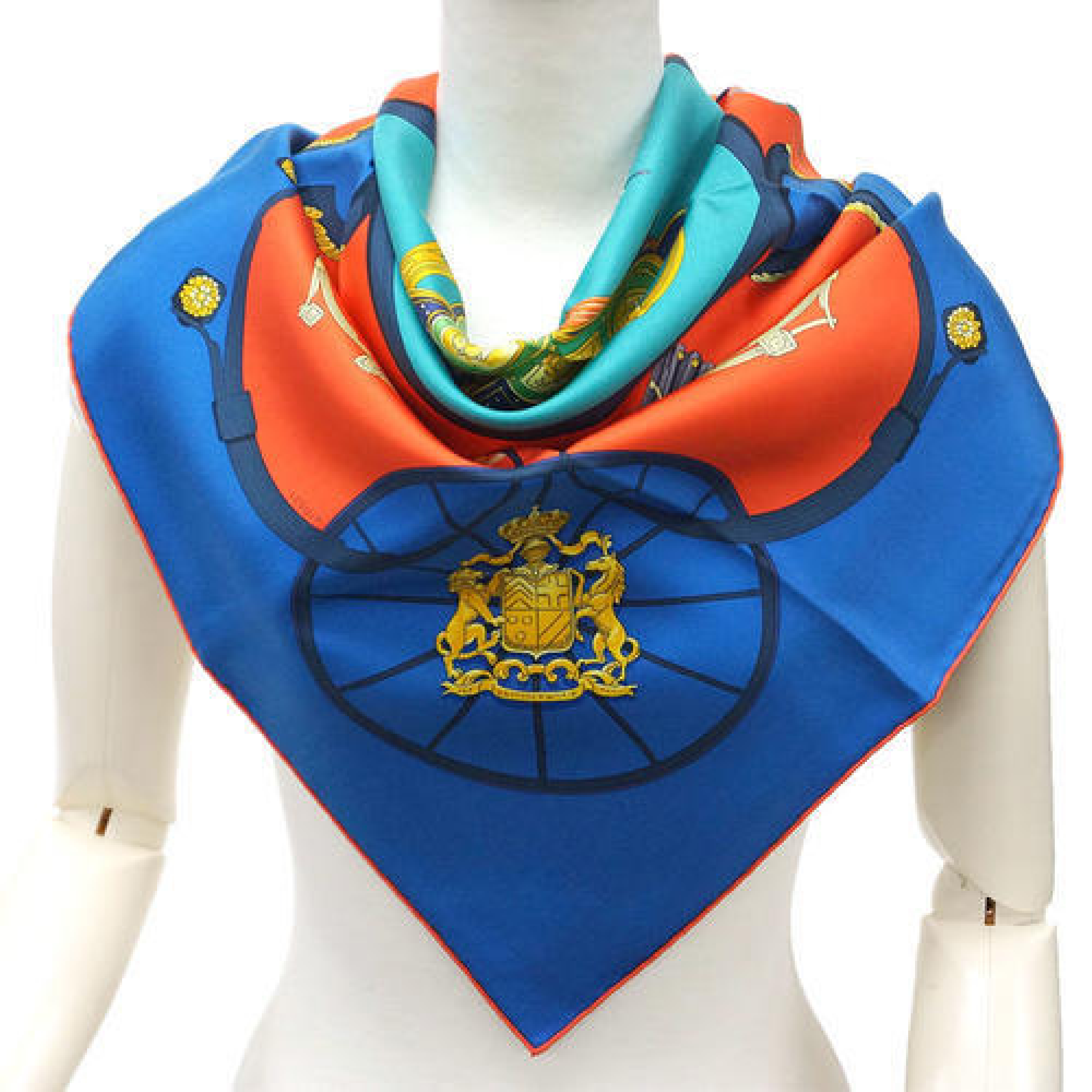 (10318_0203)HERMES スカーフ H001573S45 ソルド カレ 90 ツイル シルク100% カレ 90CM SPRINGS コバルト バーミリオン オレンジ 青 朱色 30d05 その他小物