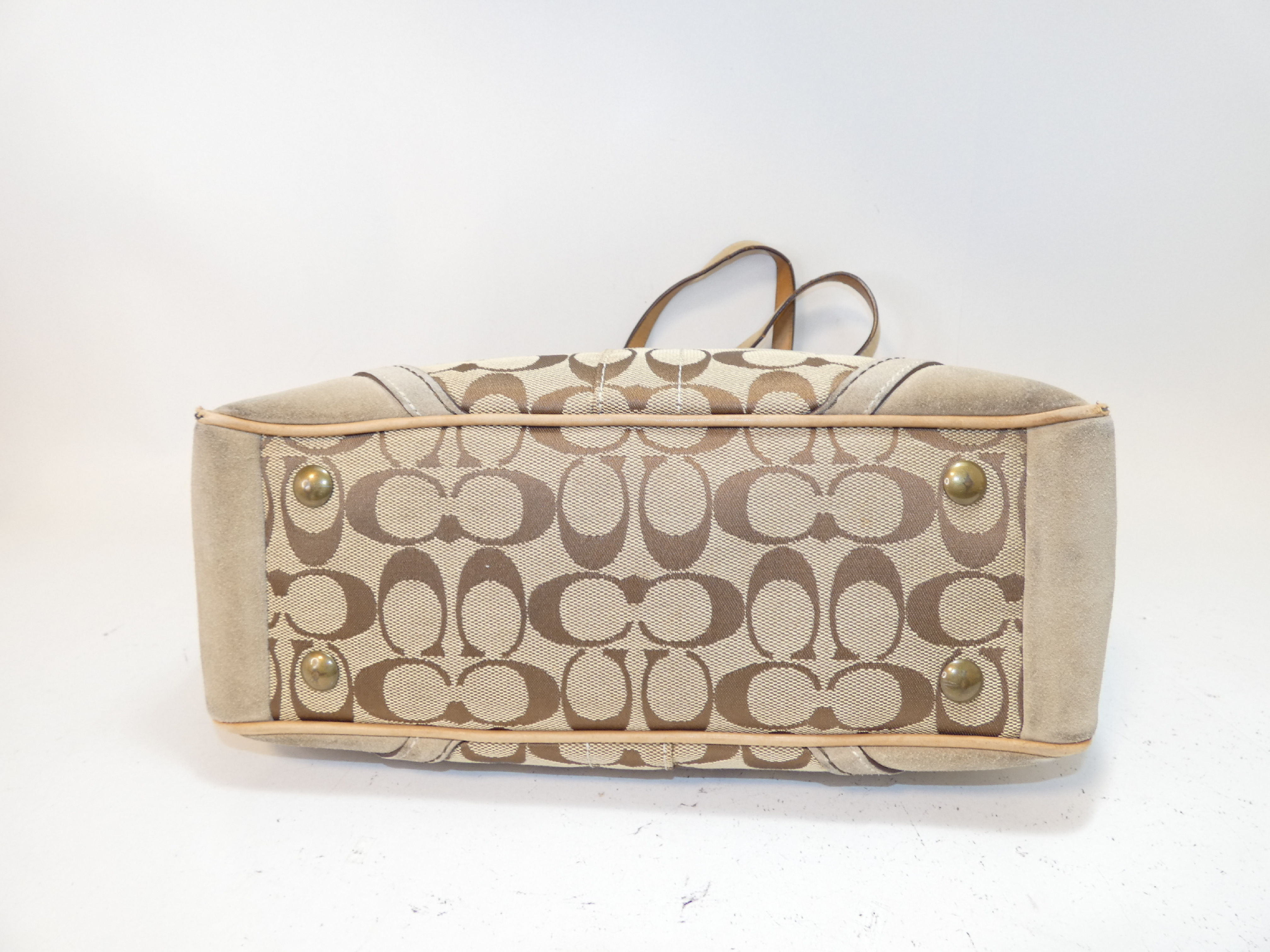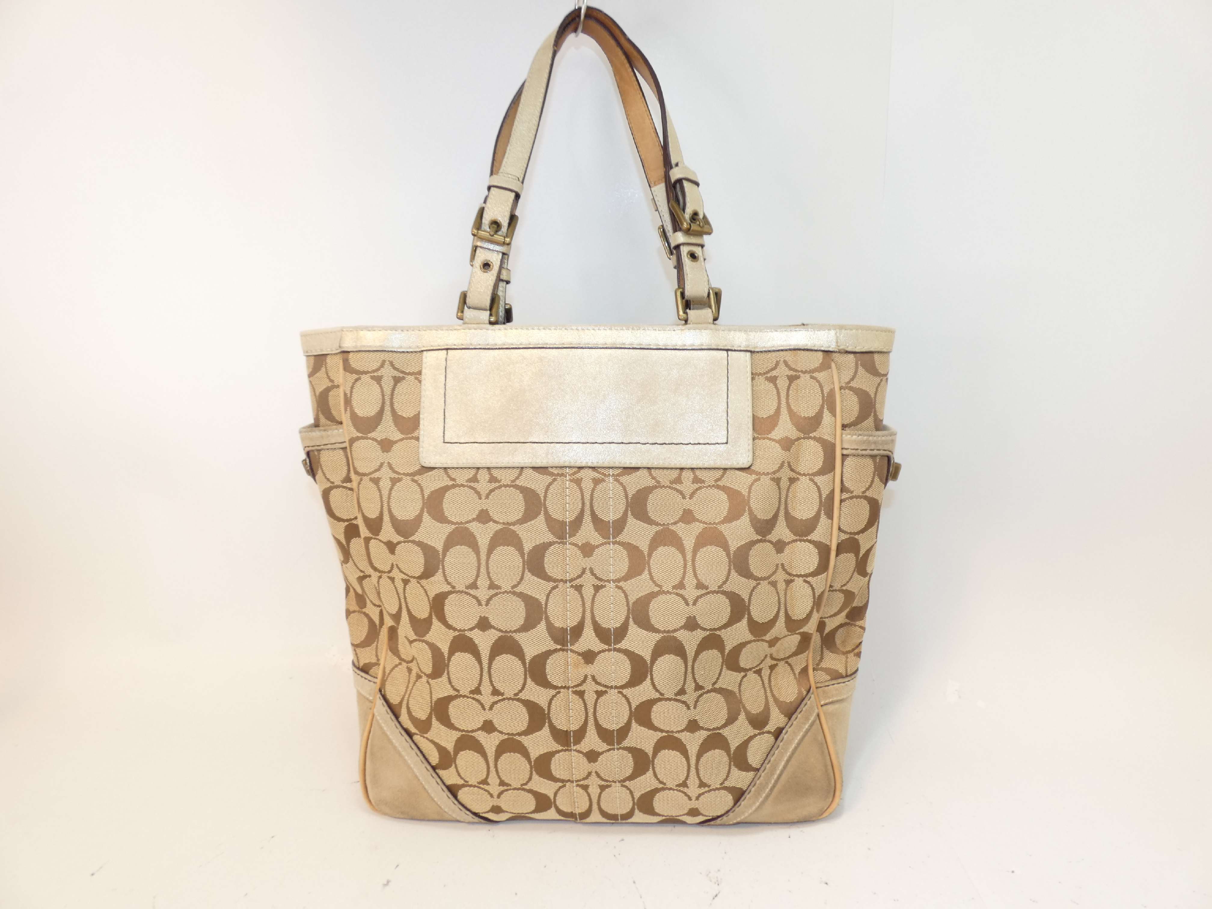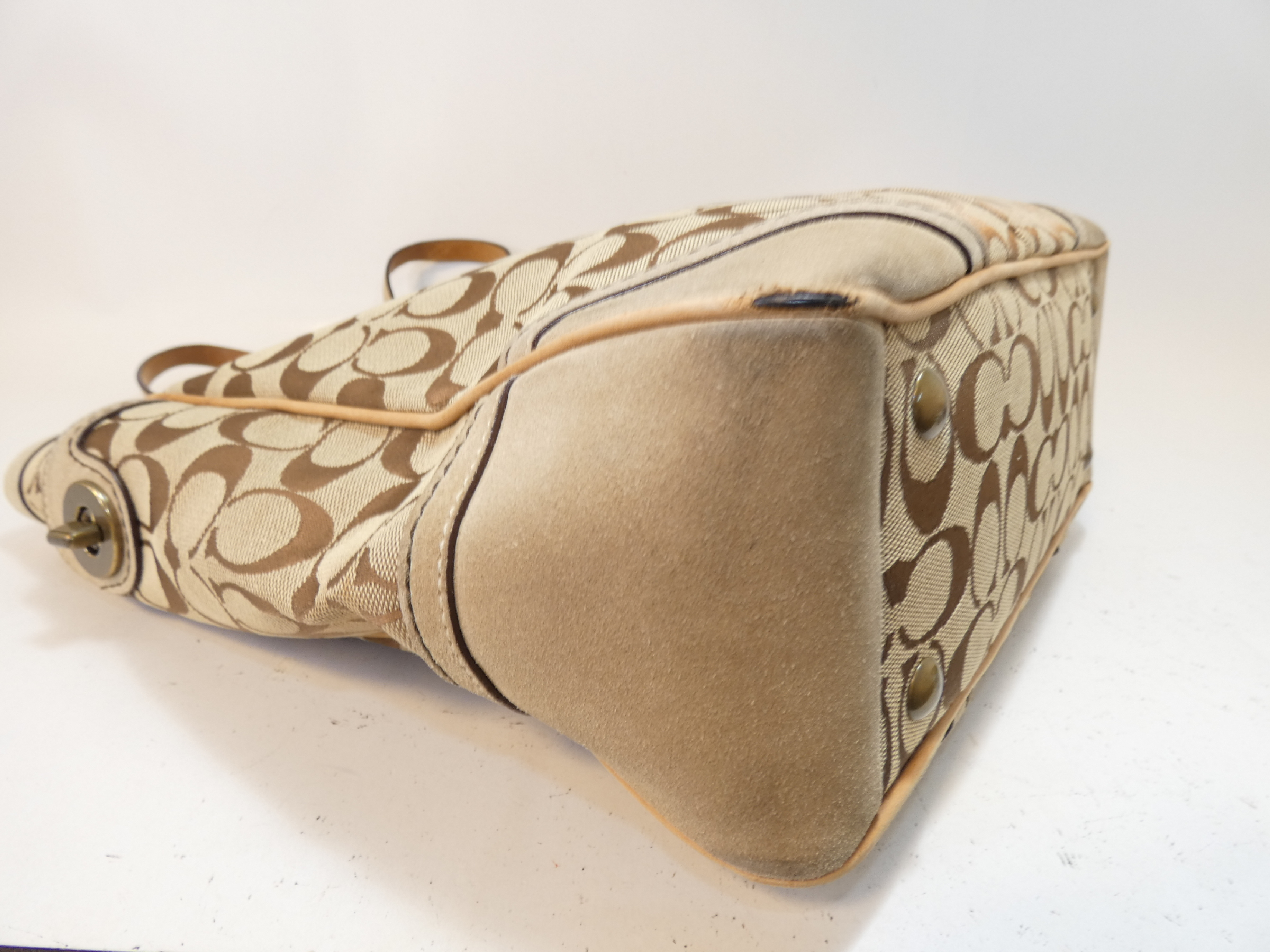 (G_0478)COACH サイドターンロック シグネチャー キャンバス レザー トート ハンドバッグ
