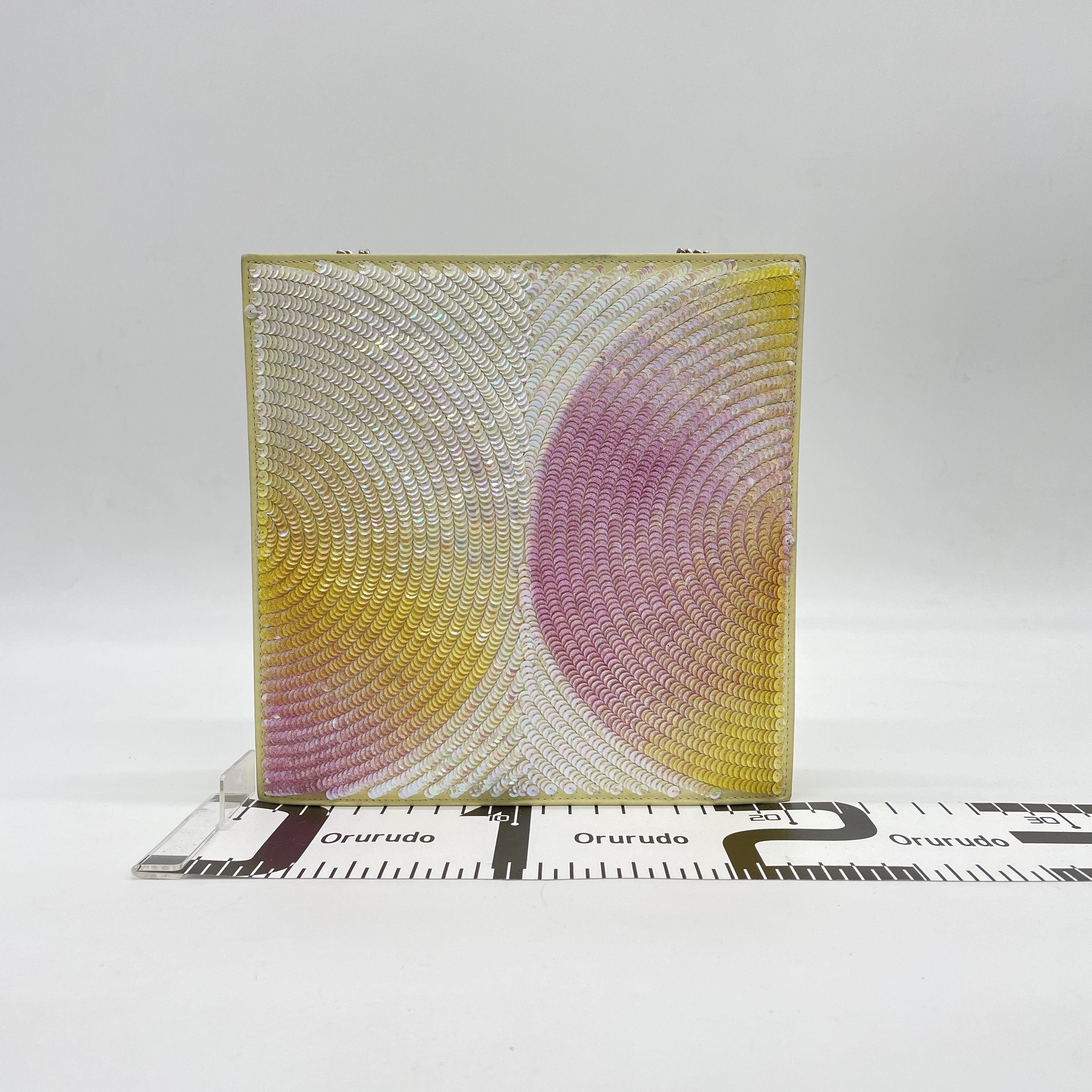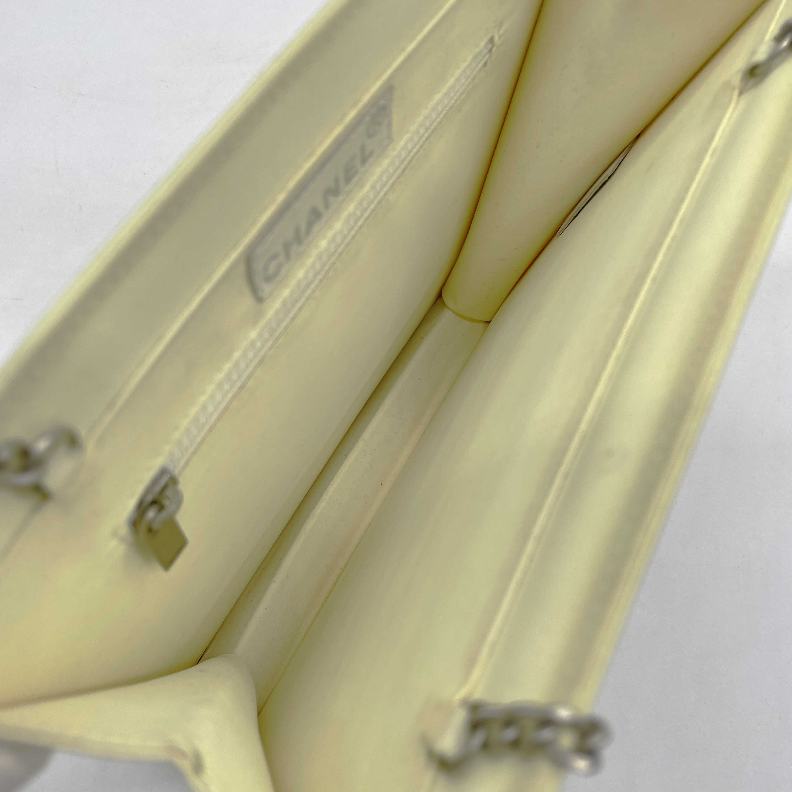 全体黄ばみ変色汚れ(中) べたつき感有り 内側黄ばみ変色汚れ(中) 色汚れ(小) 金具くすみ擦れ(中) 【シールカード有