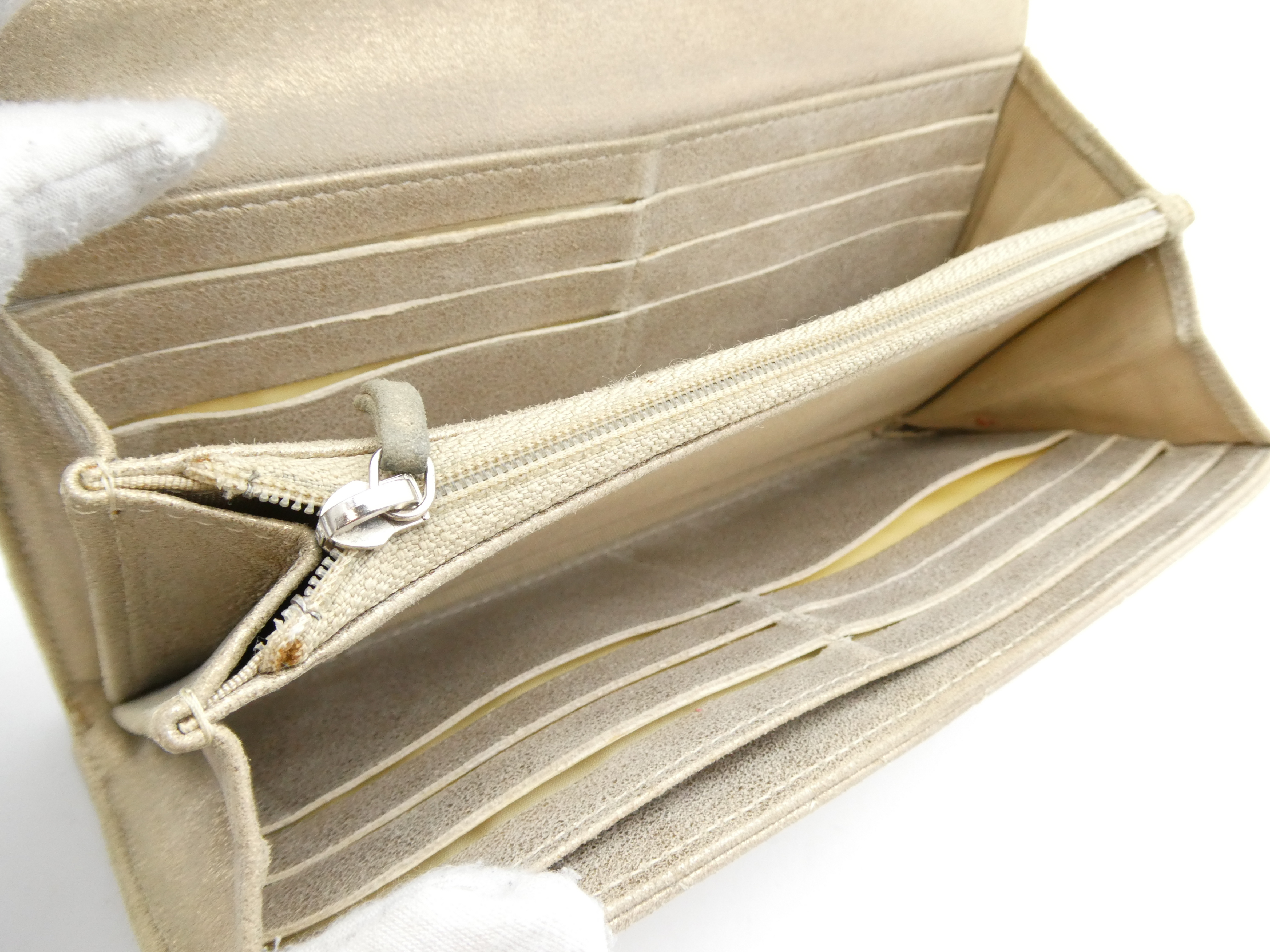全体擦れ黒ずみ(大) ボンド染み有 角縁擦れ黒ずみ(大) ホックへこみ有 内側擦れ黒ずみ(中) ポケット汚れ(中) 小銭入れ汚れ(大) 【シール有