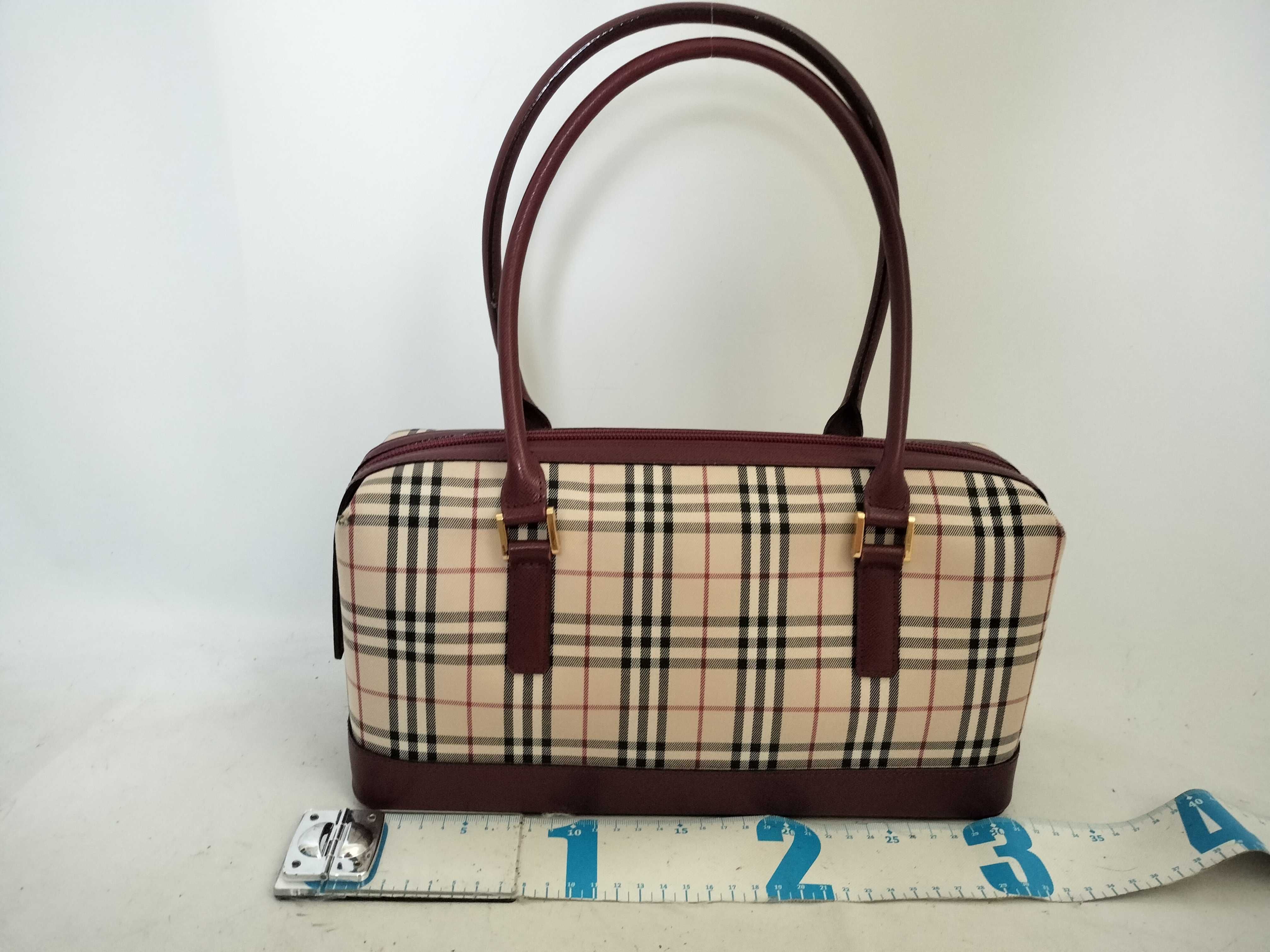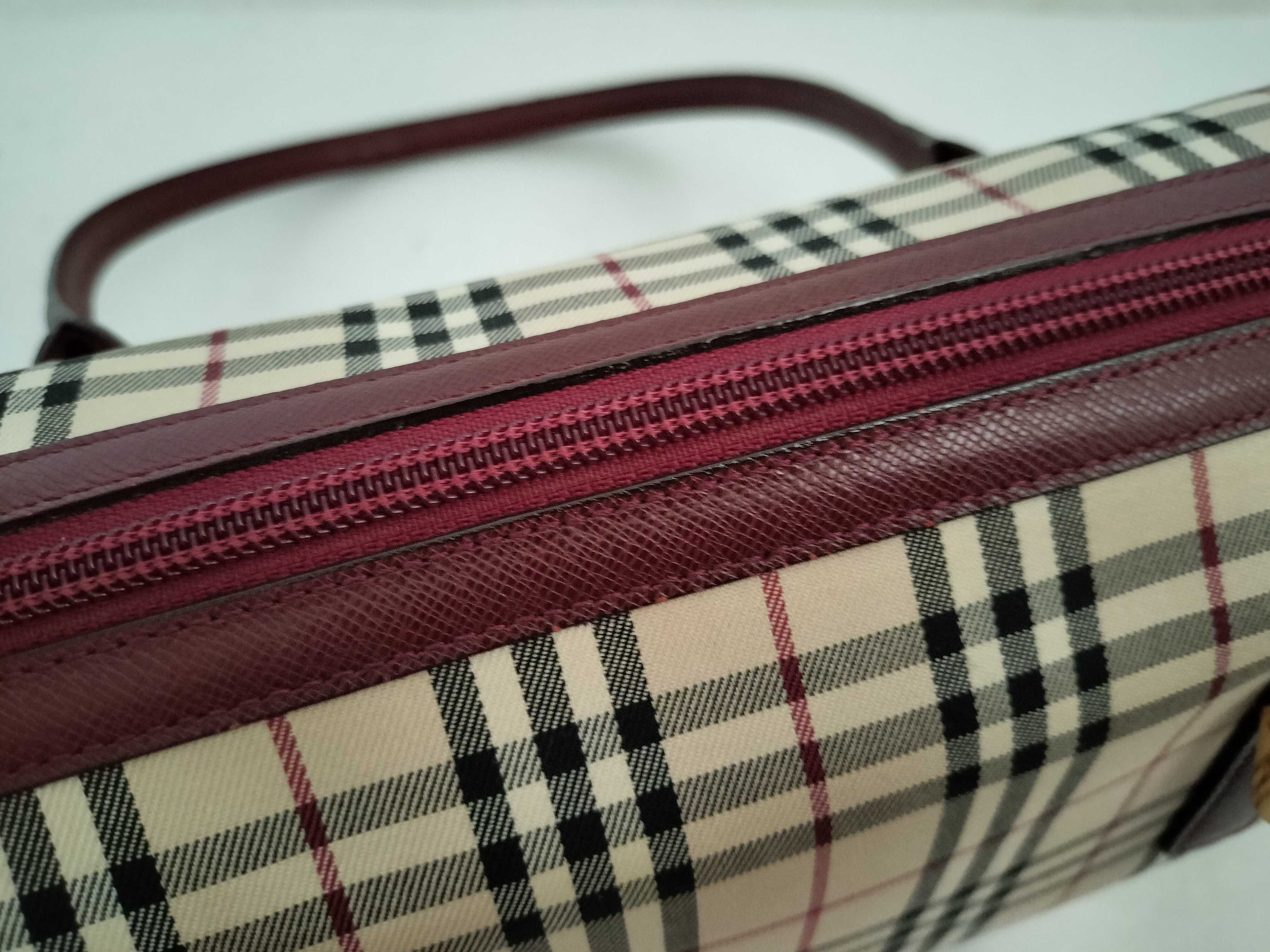 (G_0659)BURBERRY バーバリー ナイロンキャンバス トートバッグ ベージュ×レッド系 トートバッグ