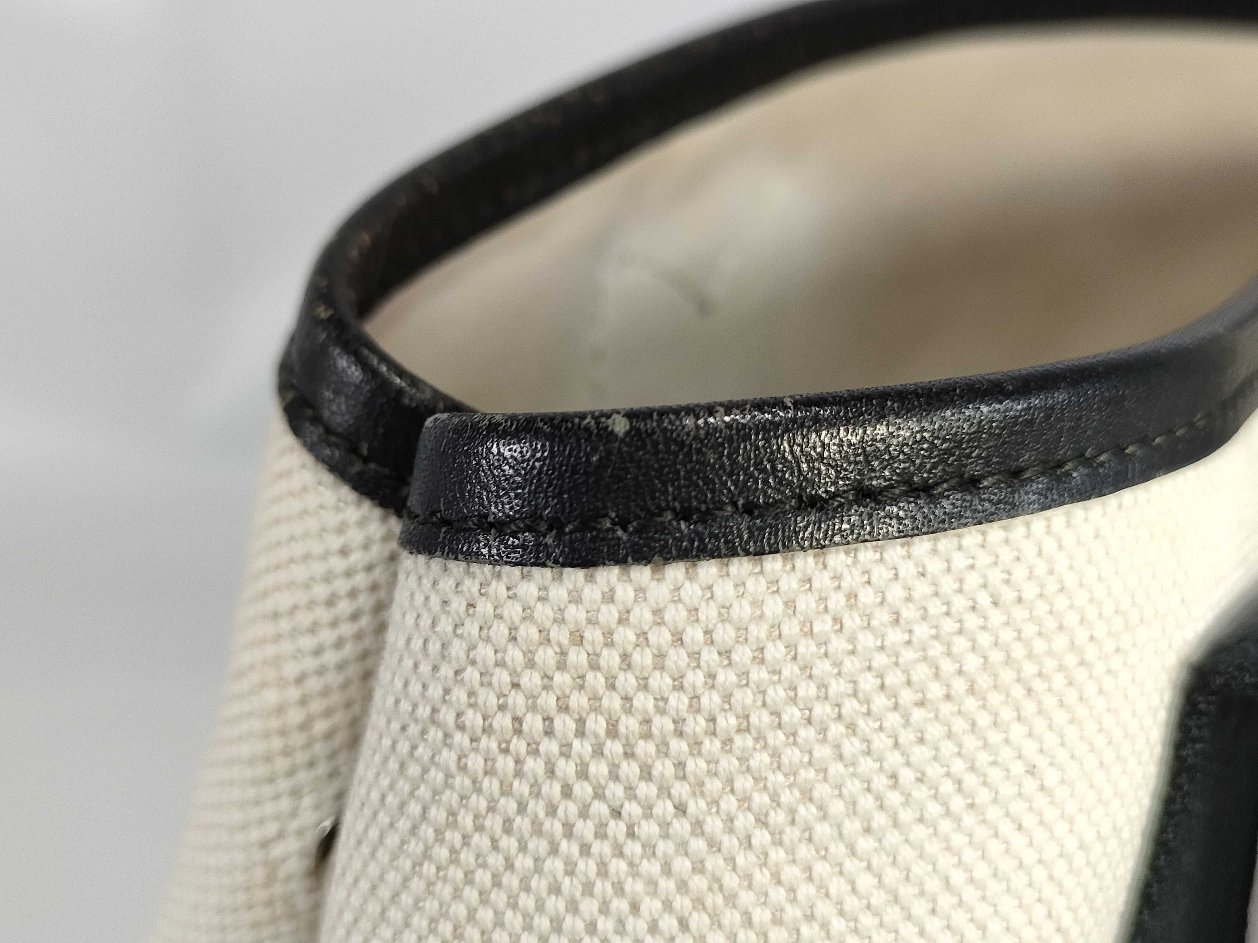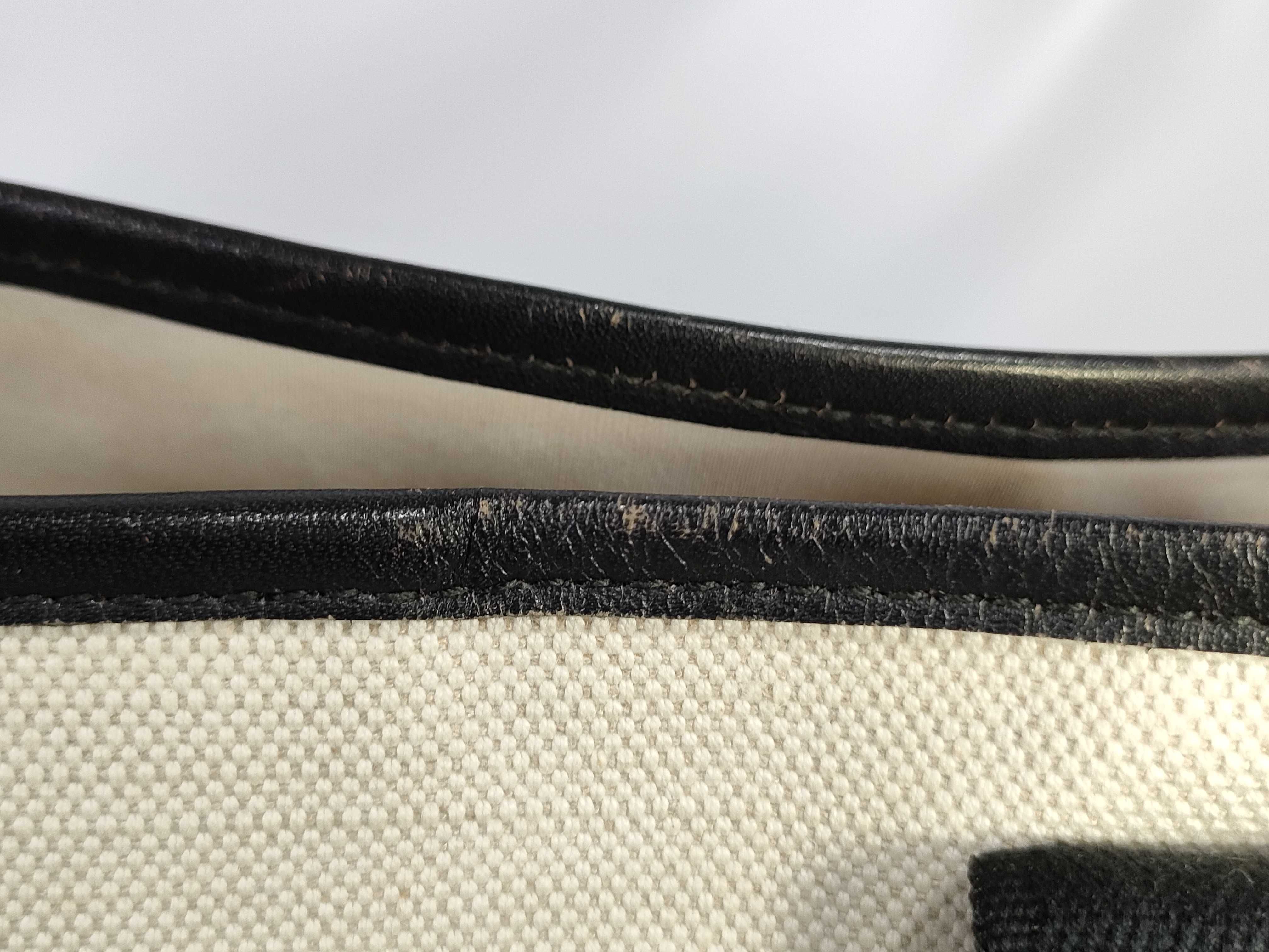 全体ヤケシミ(中) 角擦れ破れ(小) 持ち手擦れ傷ヒビ(中) 間口縁擦れ(中) 内側シミ(中) ペン跡(小) ポーチ付き【付属品