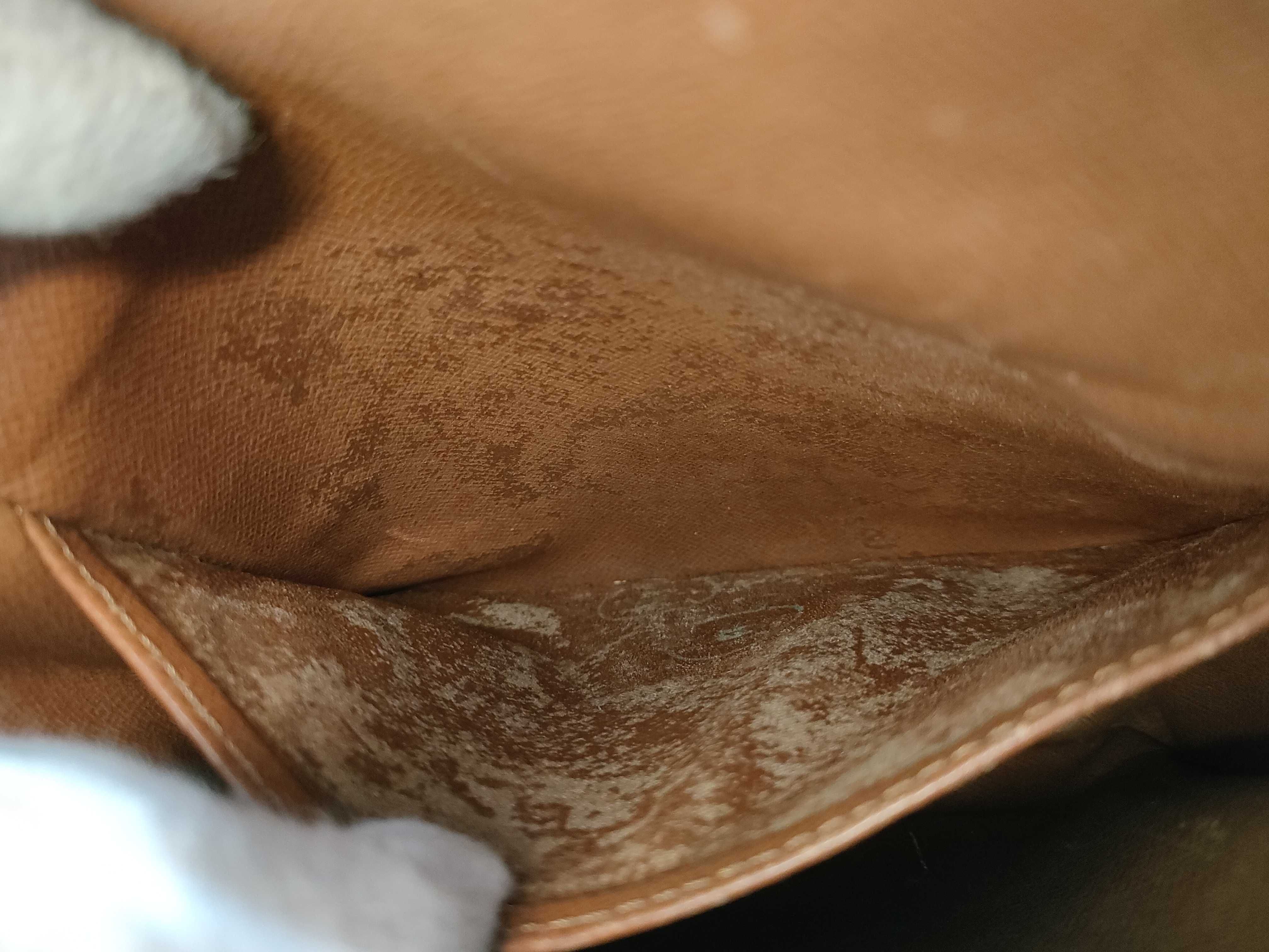 全体焼け擦れ薄汚れ(大) 型崩れ(中) ヌメ革焼け擦れ剥げ汚れ染みヒビ(大) 角・ふち擦れ剥げ(大) ショルダーよれ擦れ(中)付け根革ヒビ切れ(中) 内側擦れ傷・汚れ(中) ポケット生地剥げ汚れ(大) 【シリアル
