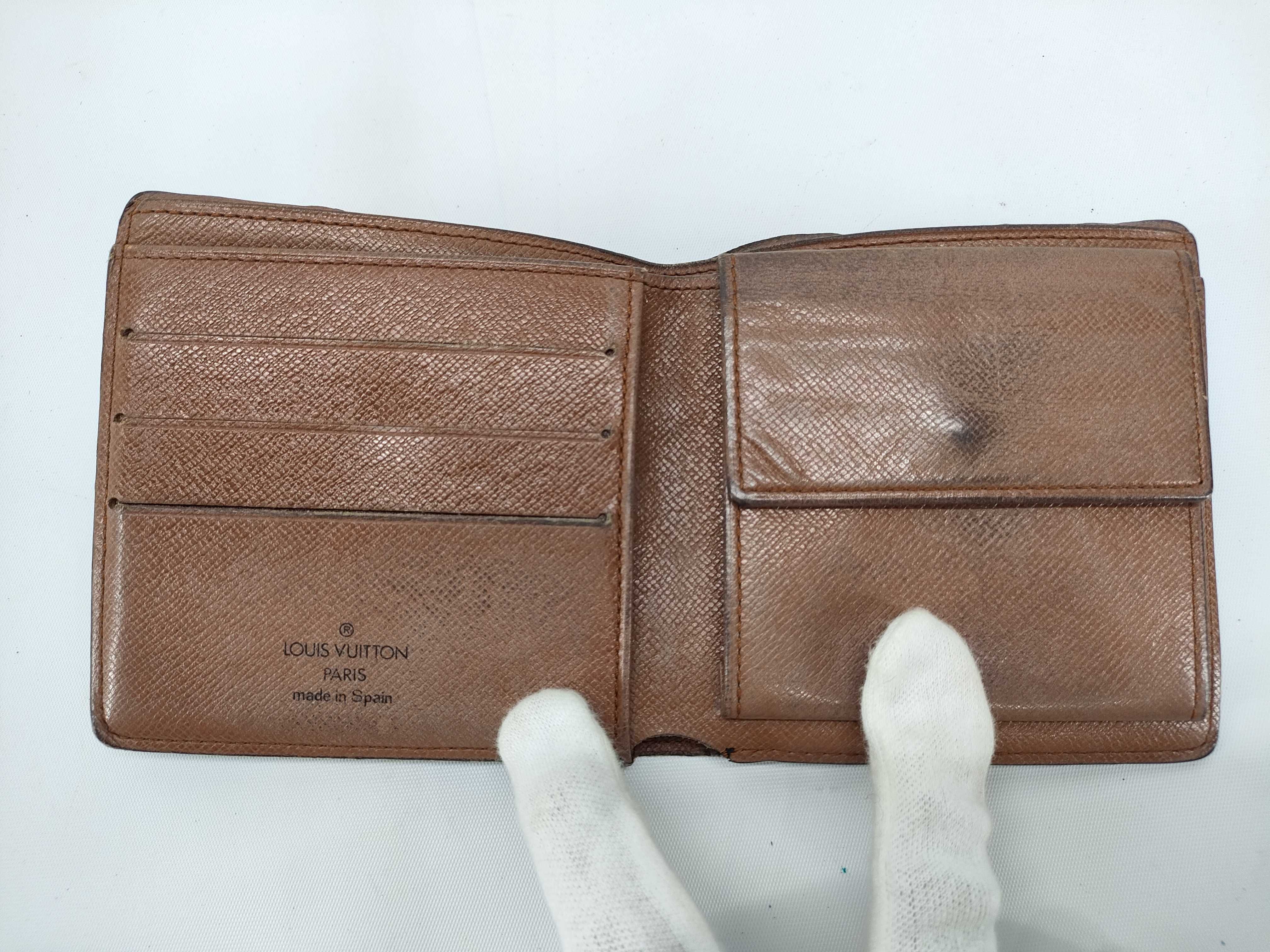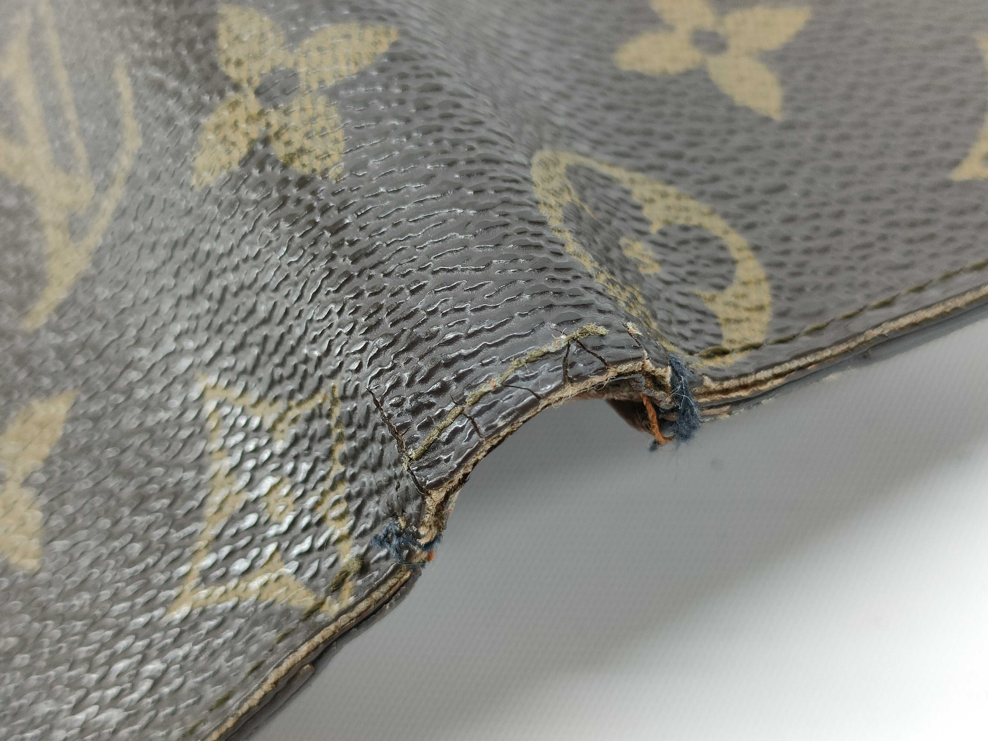 札入れ内ポケット劣化剥がれ(大) 全体ヤケスレ(中) 反り(小) 型崩れ(小) 角スレヒビ(中) 補修跡あり 金具くすみ青錆(中) 縁スレヒビ(小) 内側黒ずみ(中) ポケット縁切れ(小)","タイプライン":"モノグラム","カテゴリ":"小物","形状コード":"財布","付属品コード":"","シリアル・シール・型番":"RFID確認できず CA0992"