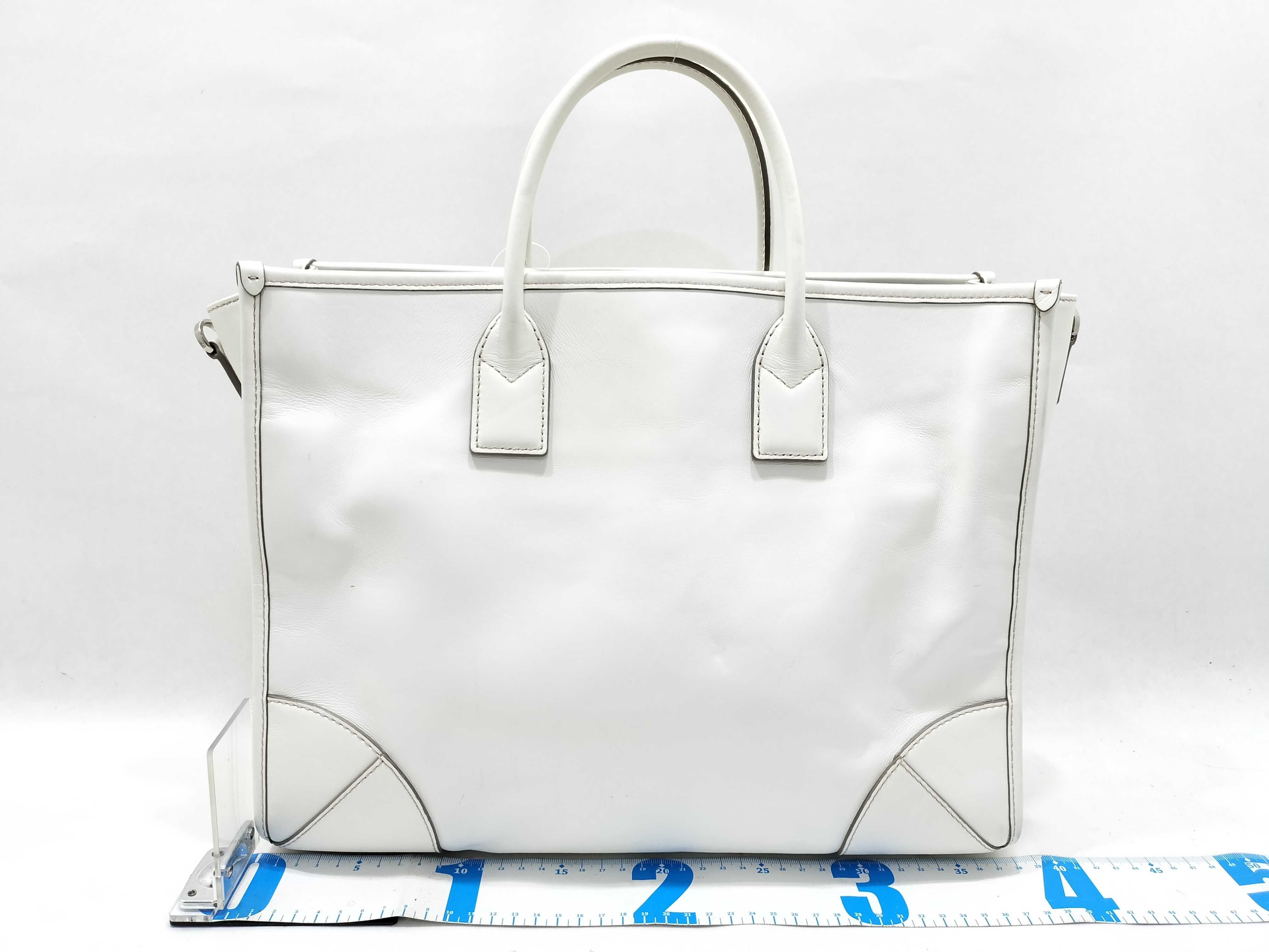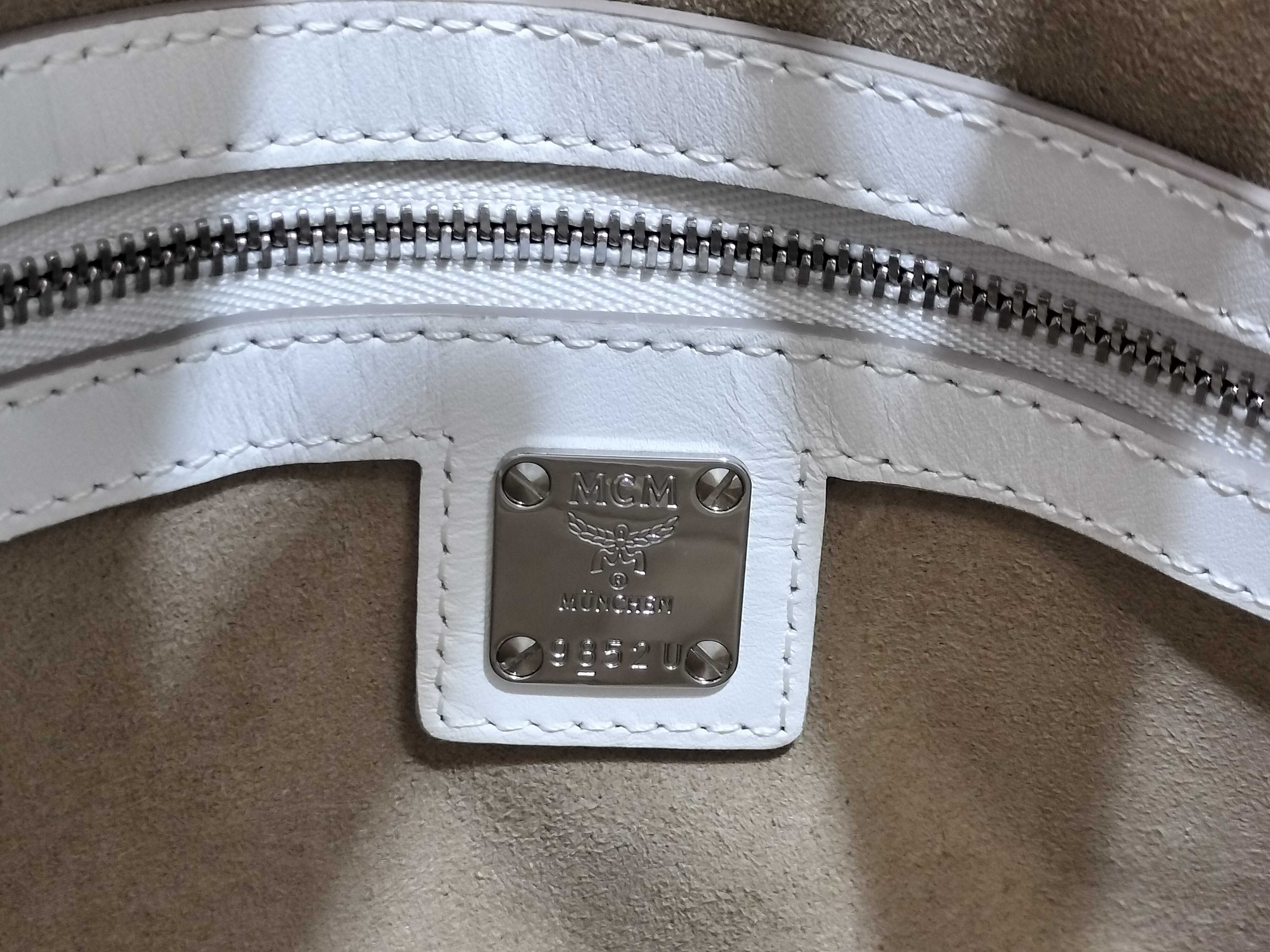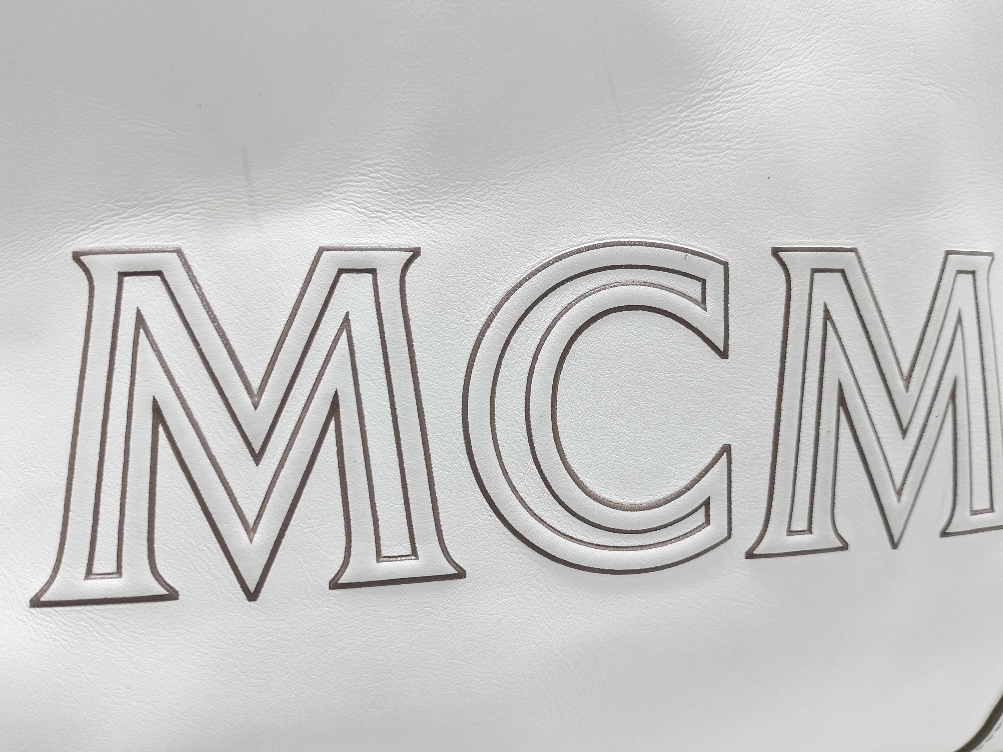 (G_0896)MCM MCM レザー トートバッグ ホワイト ロゴ トートバッグ