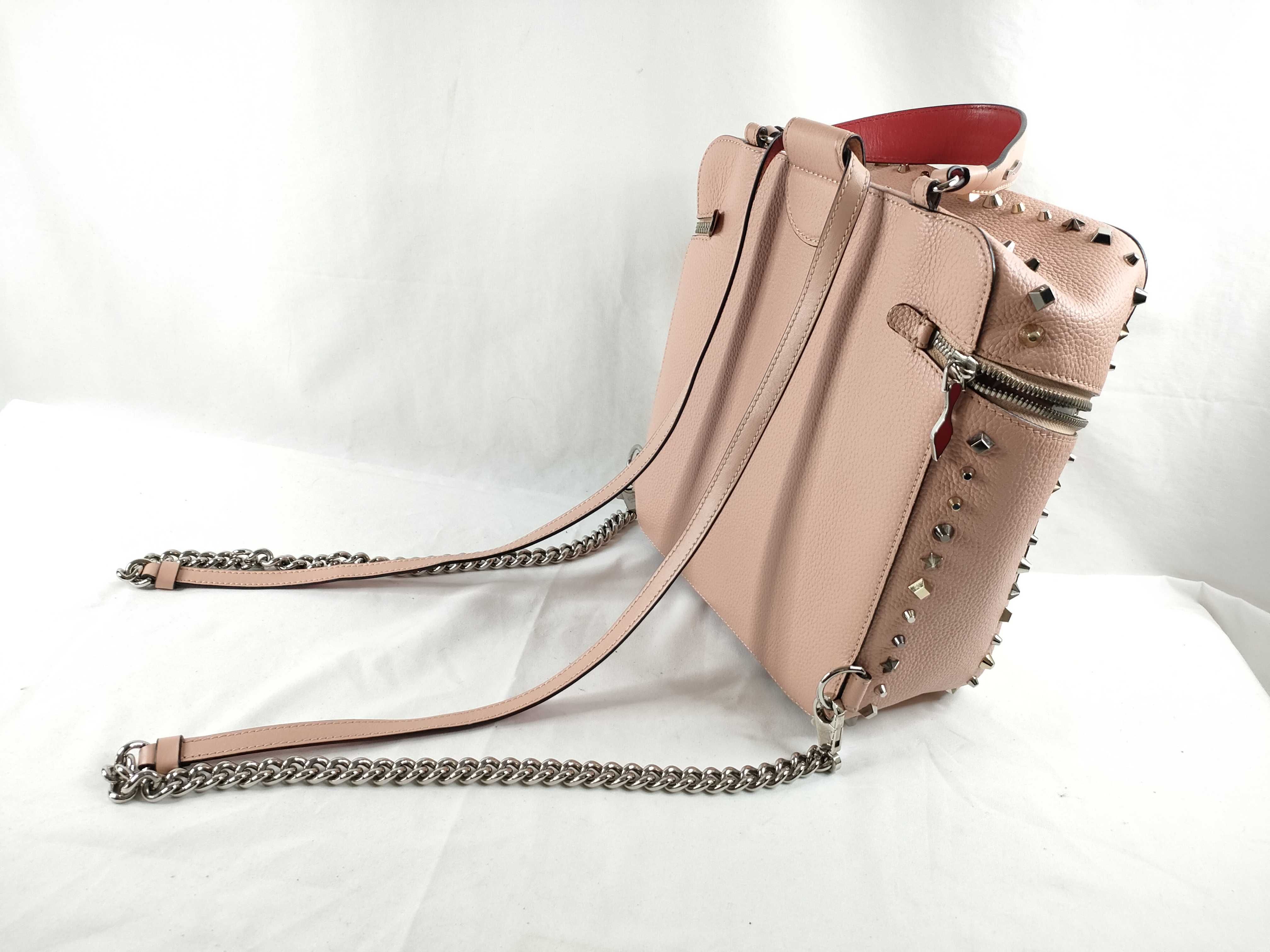 (F_0763)Christian Louboutin ルビルゥ チェーン リュック バックパック スタッズ レザー ピンク リュックサック