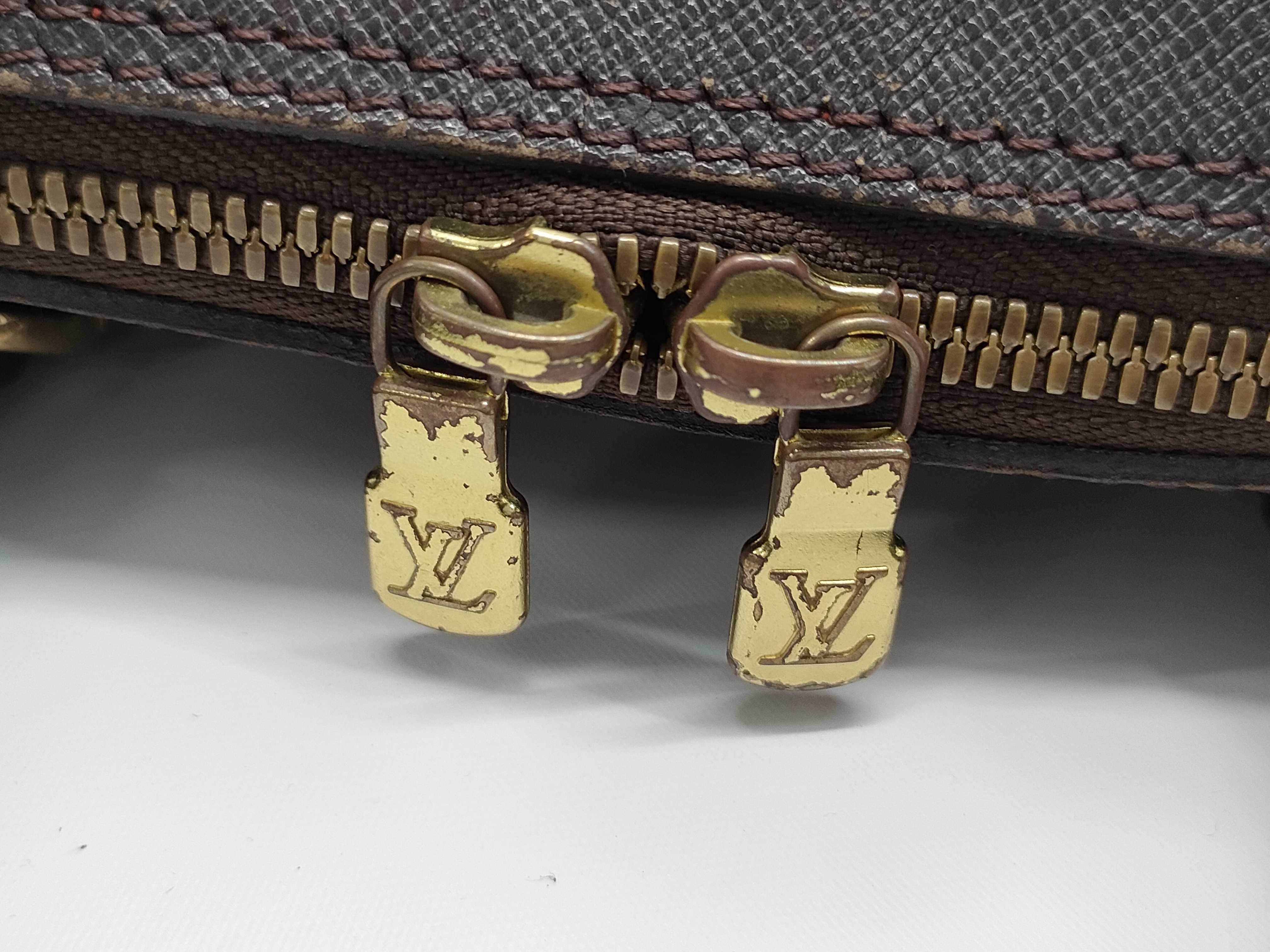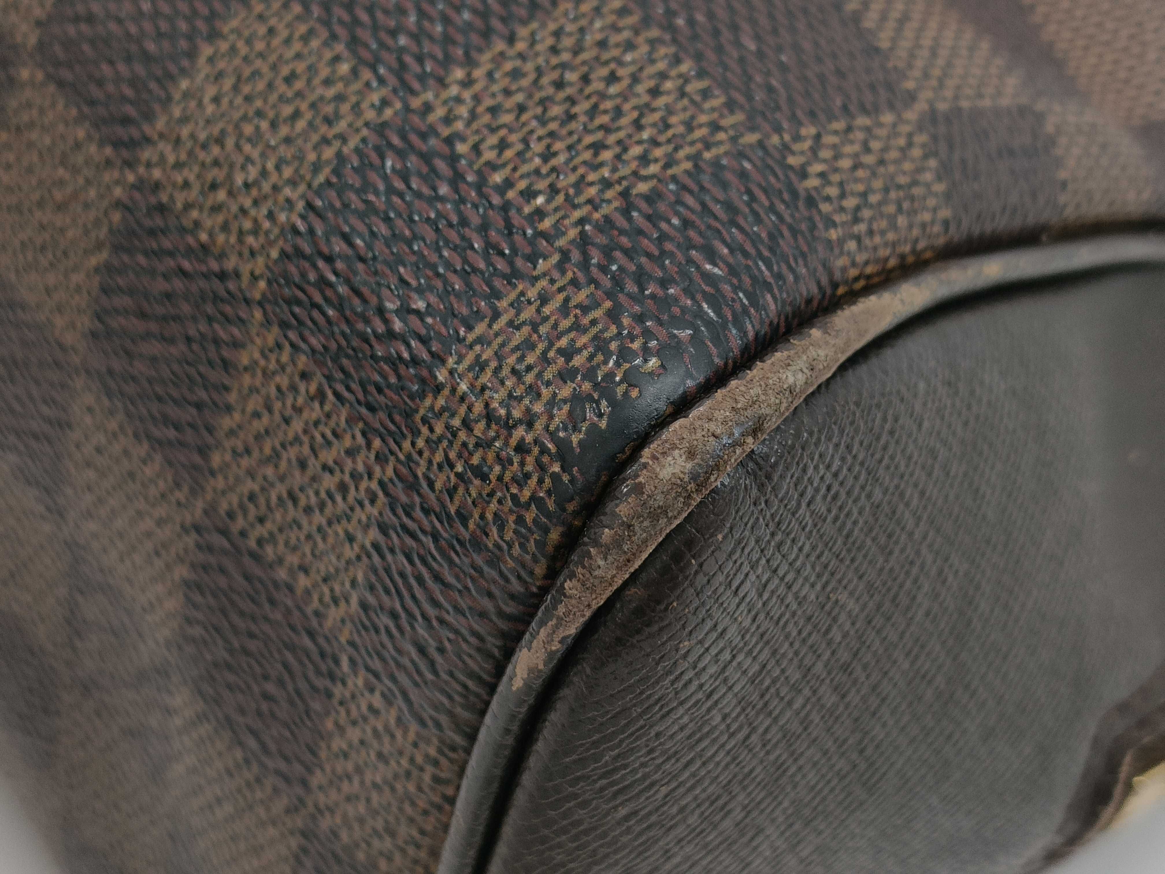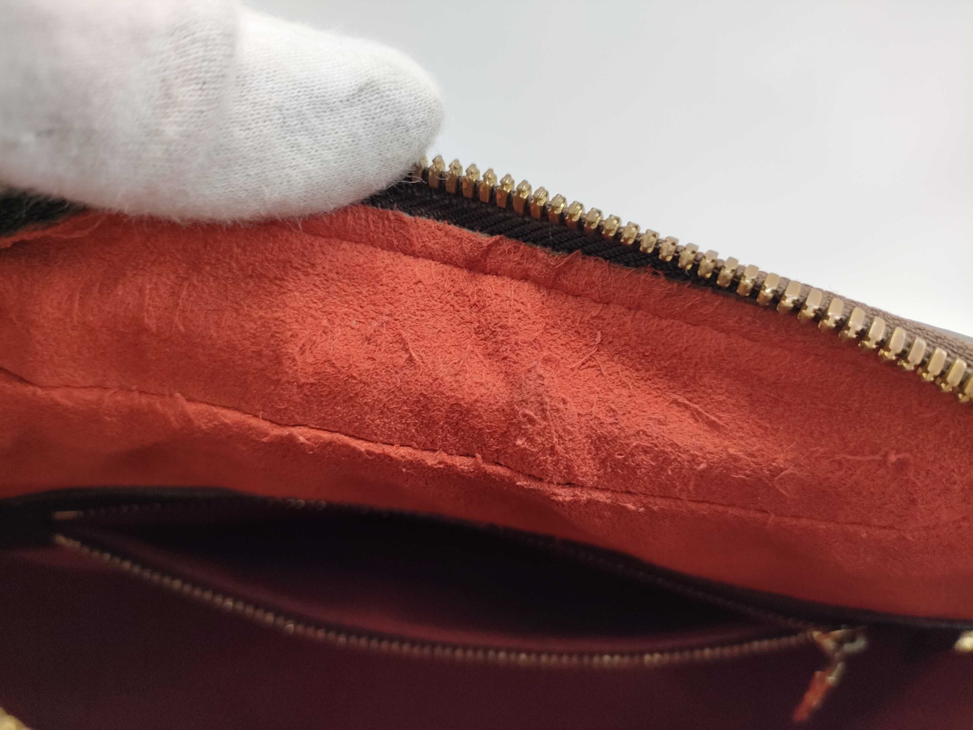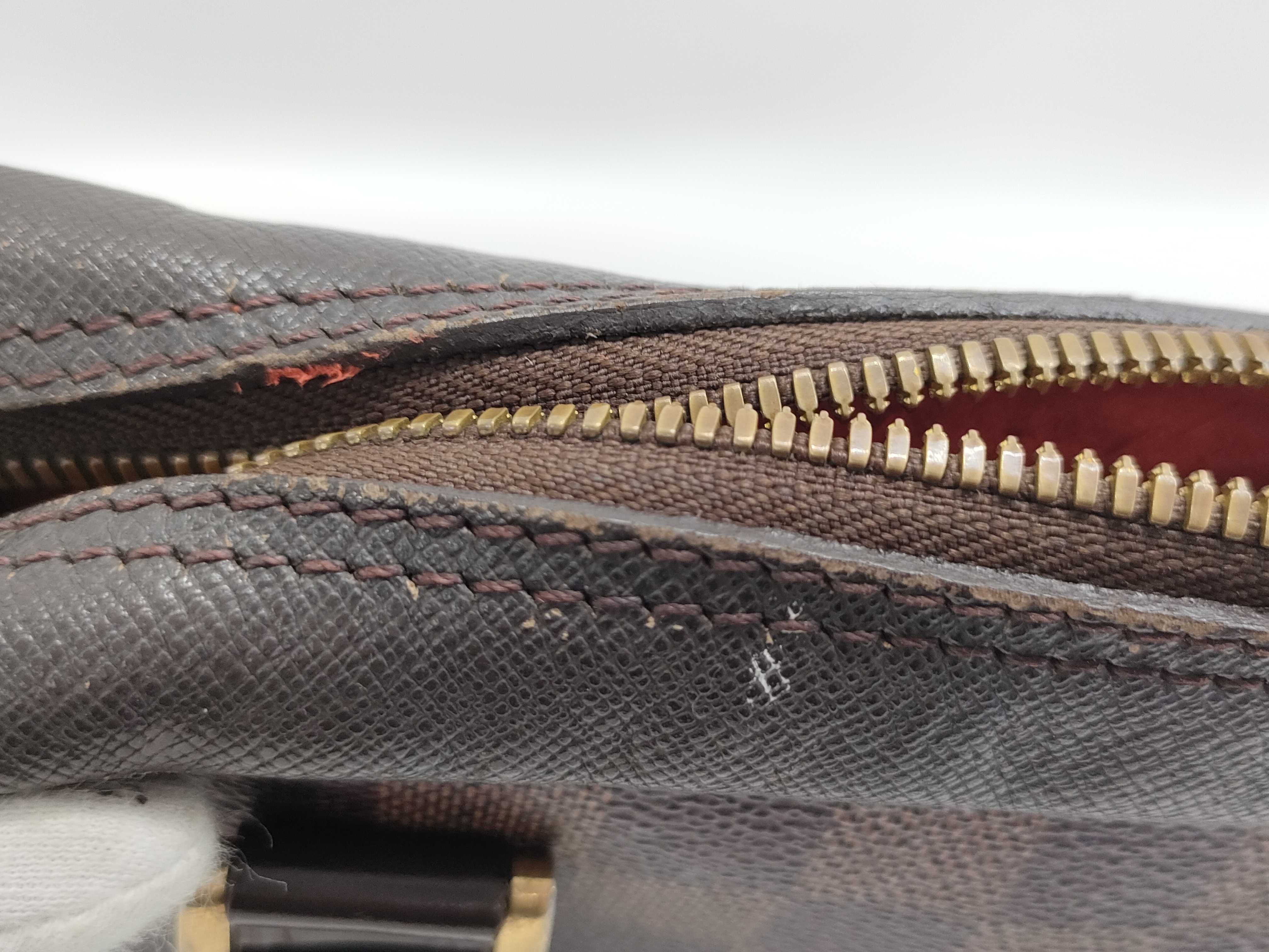 全体ヤケ変色べたつき感(中) 角擦れ剥げ(中) 金具傷剥げ(中) 内側間口擦れ毛羽立ち(中) ファスナーレーン裏糸ほつれ(中) 【シリアル