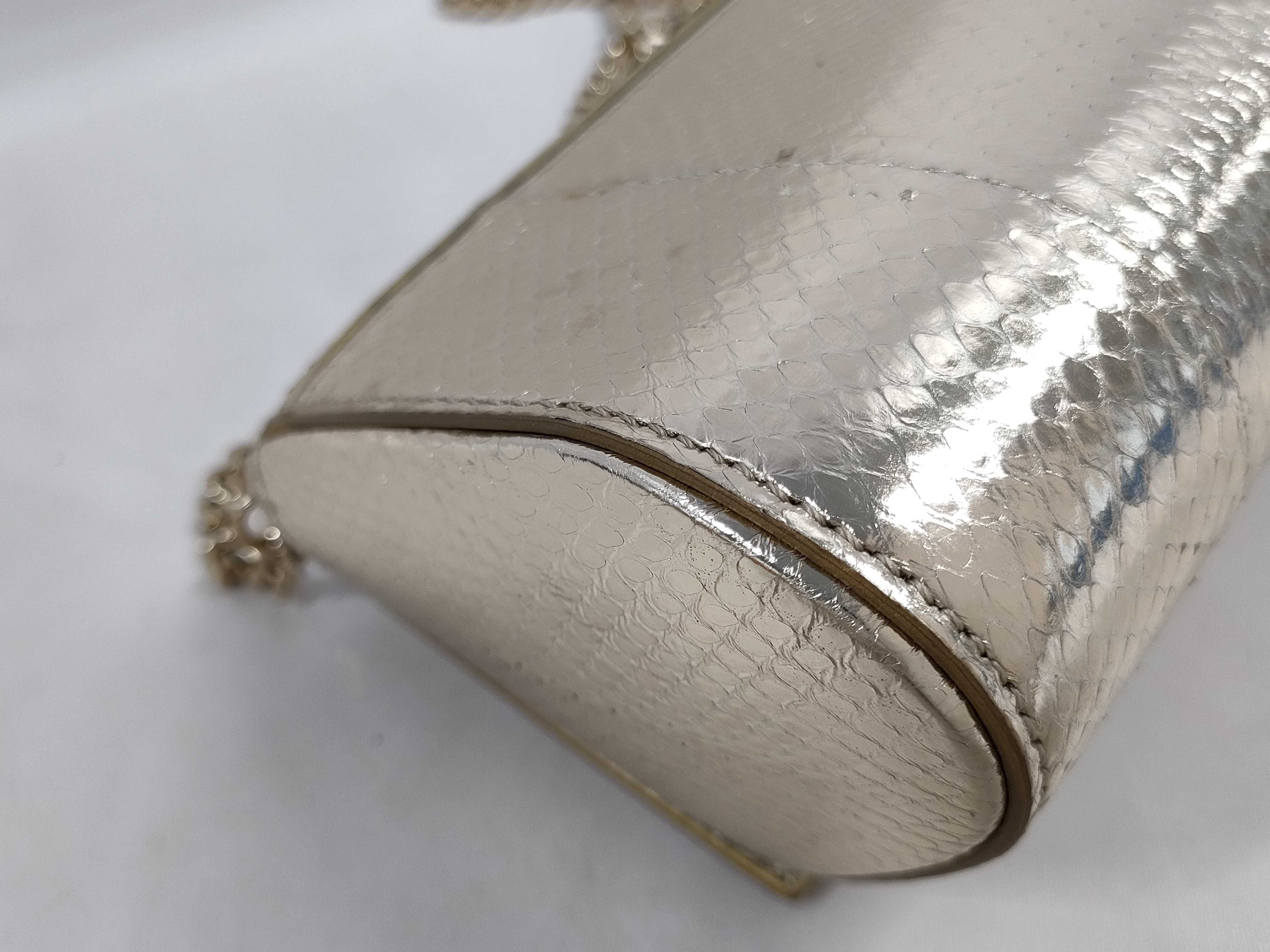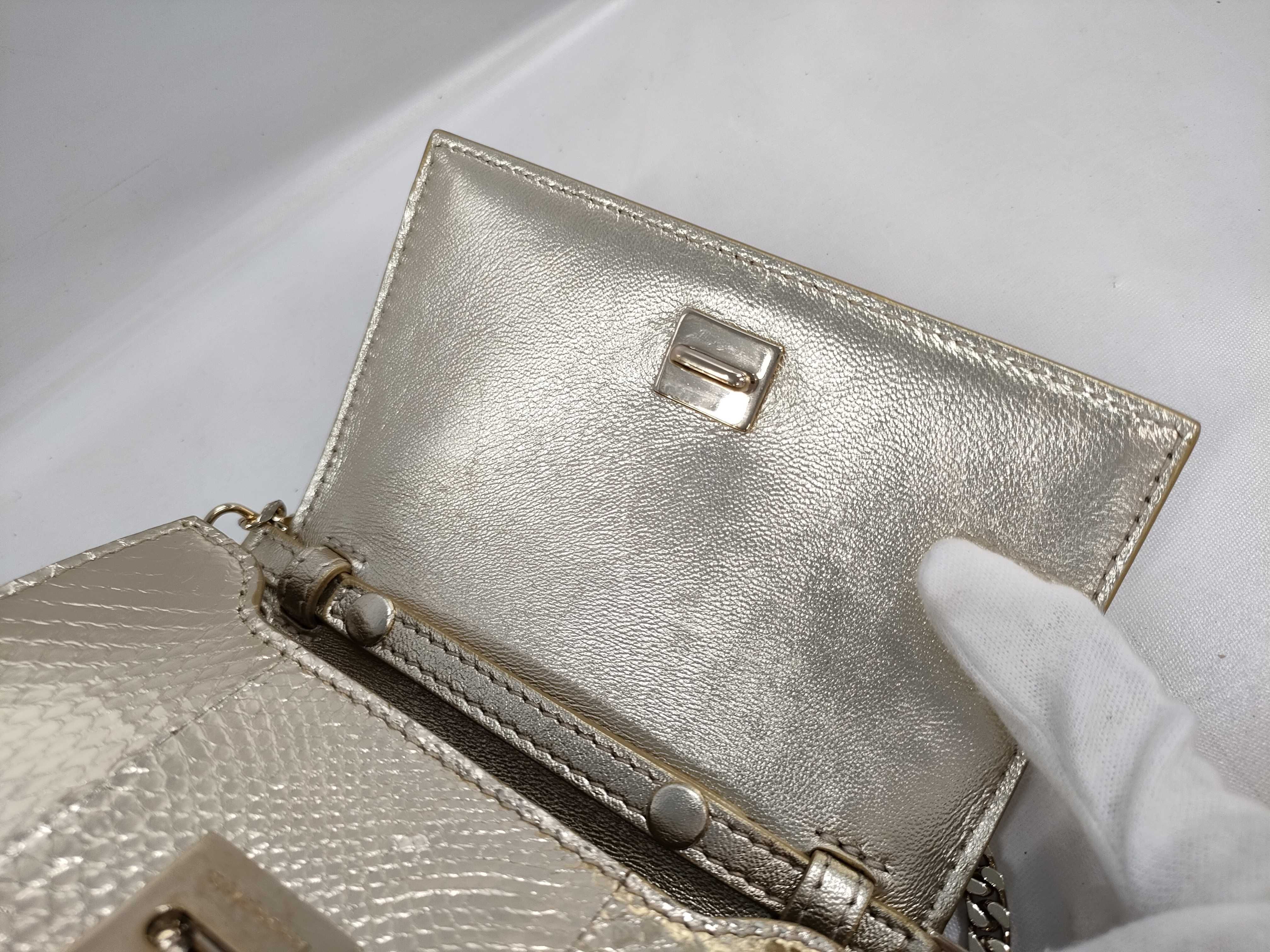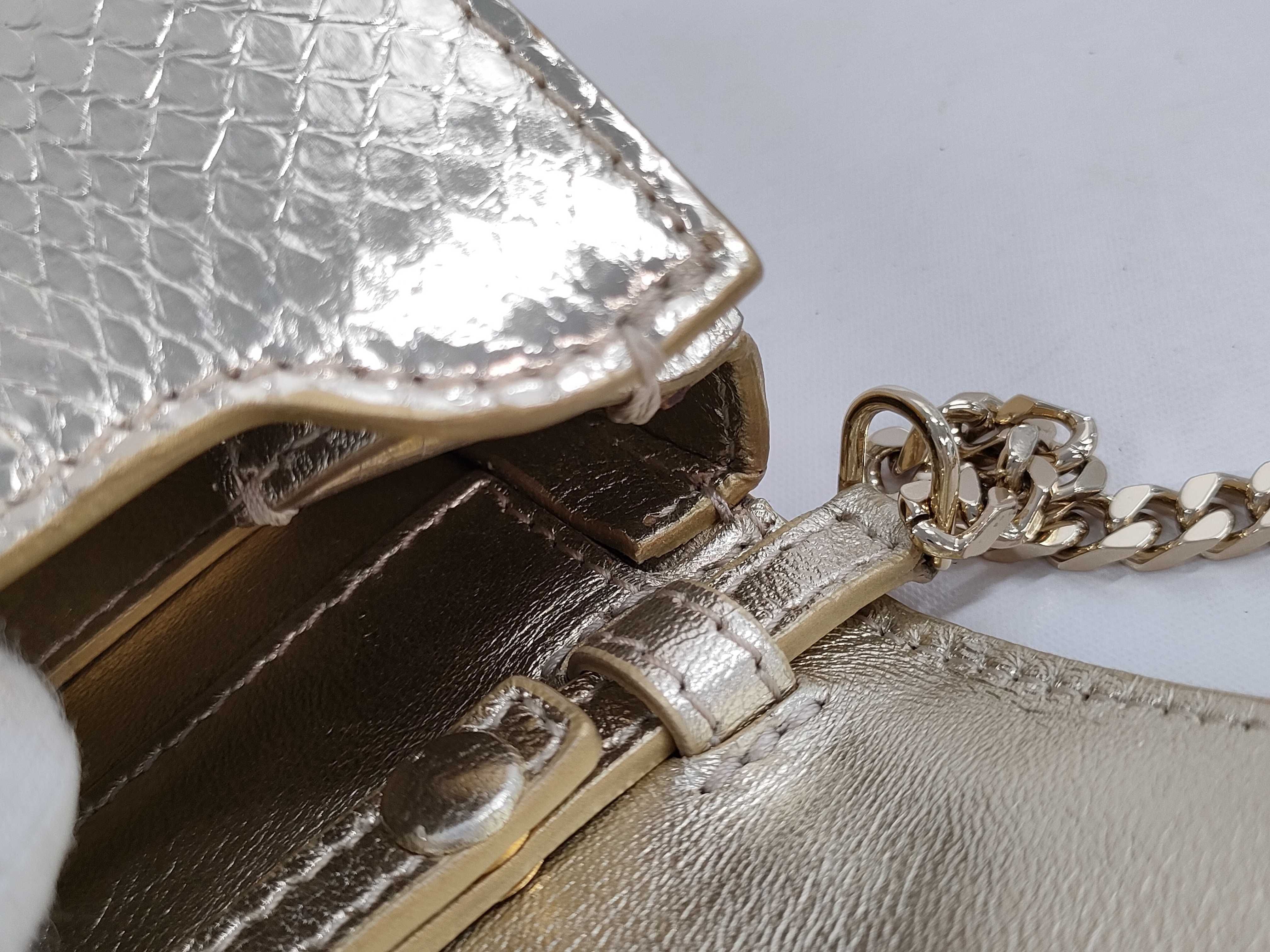 (F_0913)▼GIVENCHY ジバンシー パイソン チェーンショルダーバッグ ゴールド ラメ ショルダーバッグ
