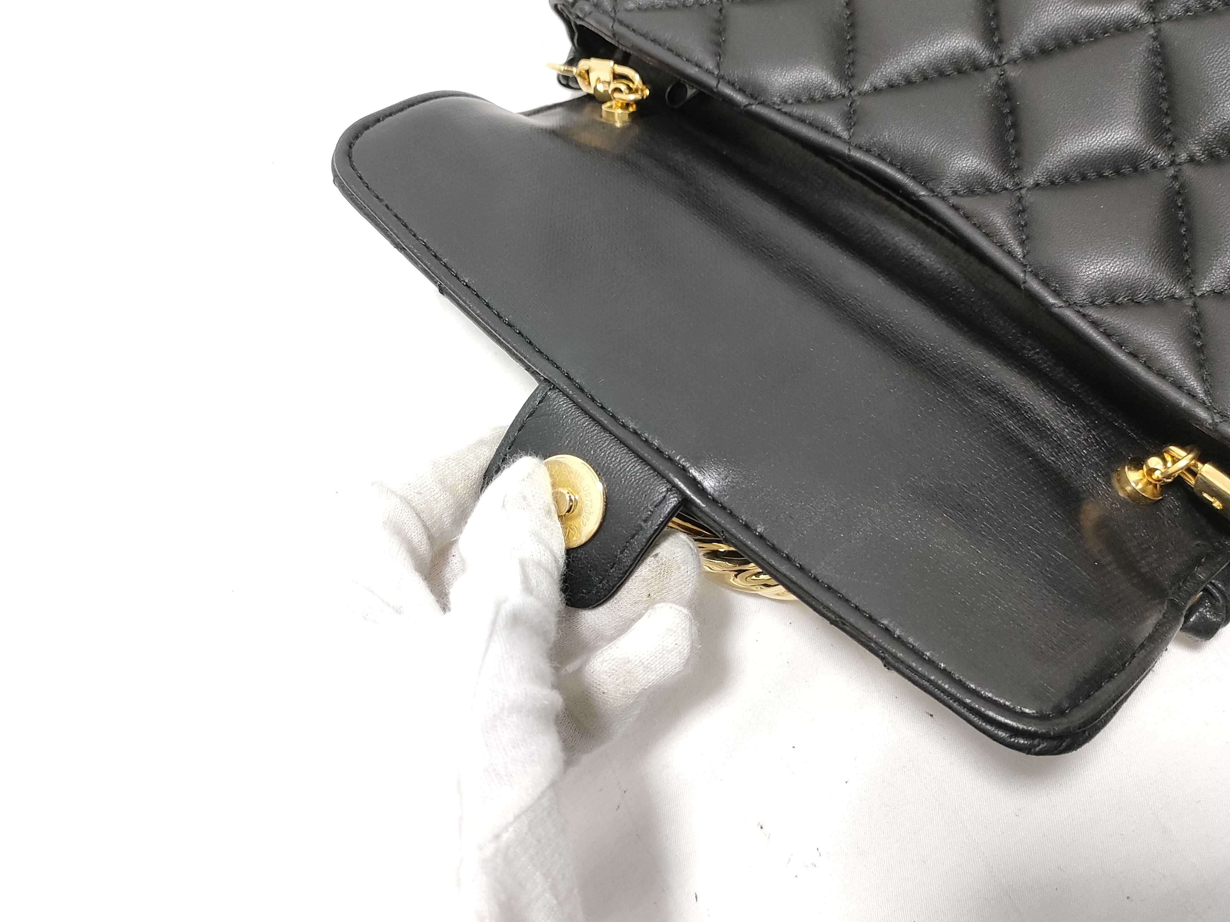 全体ヤケ擦れ(小) 型崩れ(中) 角縁擦れ剥げ(中) 金具擦れ傷(中) ショルダー擦れヨレ(小) フラップ擦れ薄汚れ(中) 付け根切れ(小) 内側擦れカビシミ(中) 内ポケット縁糸ほつれ(小)【付属品