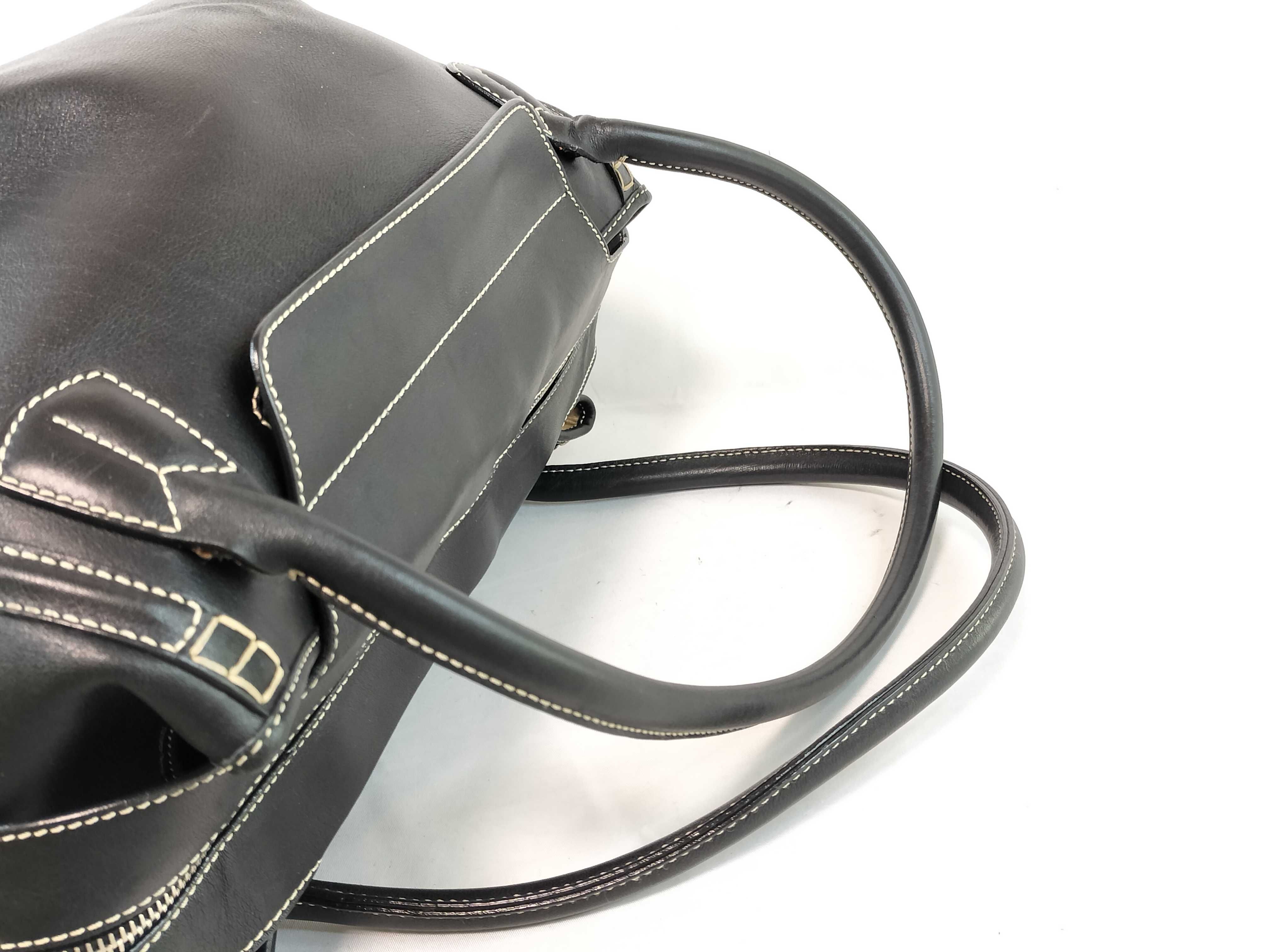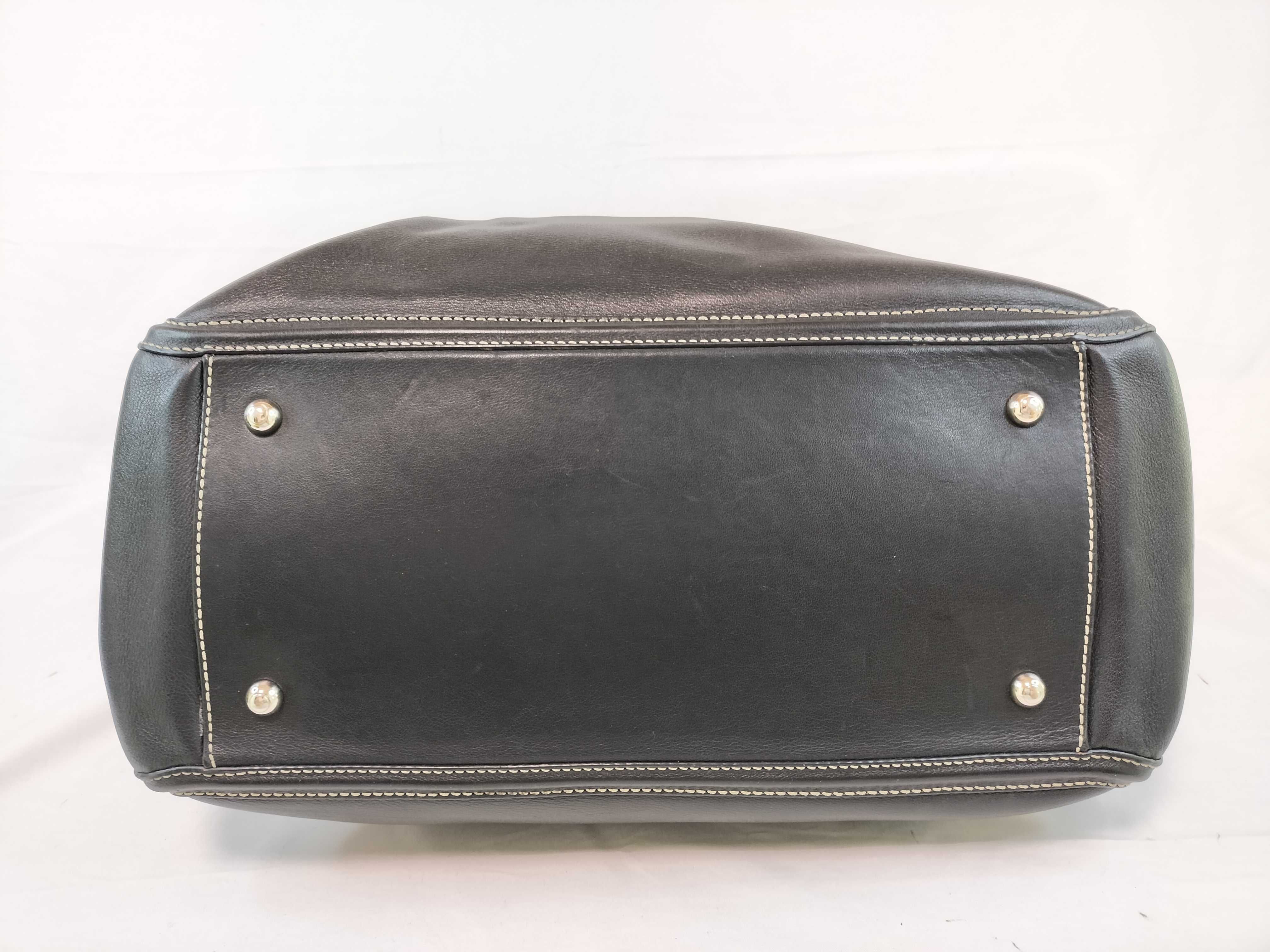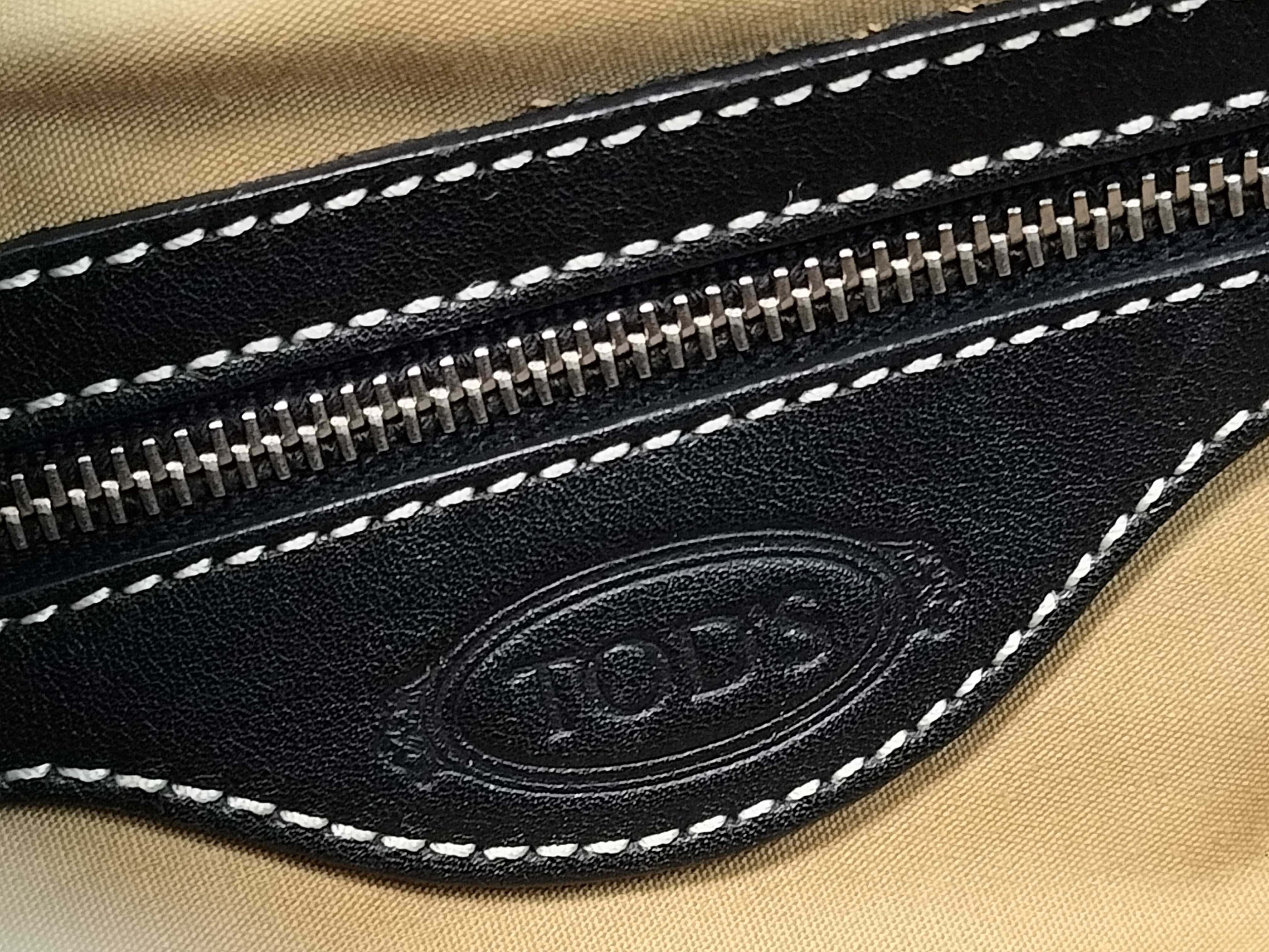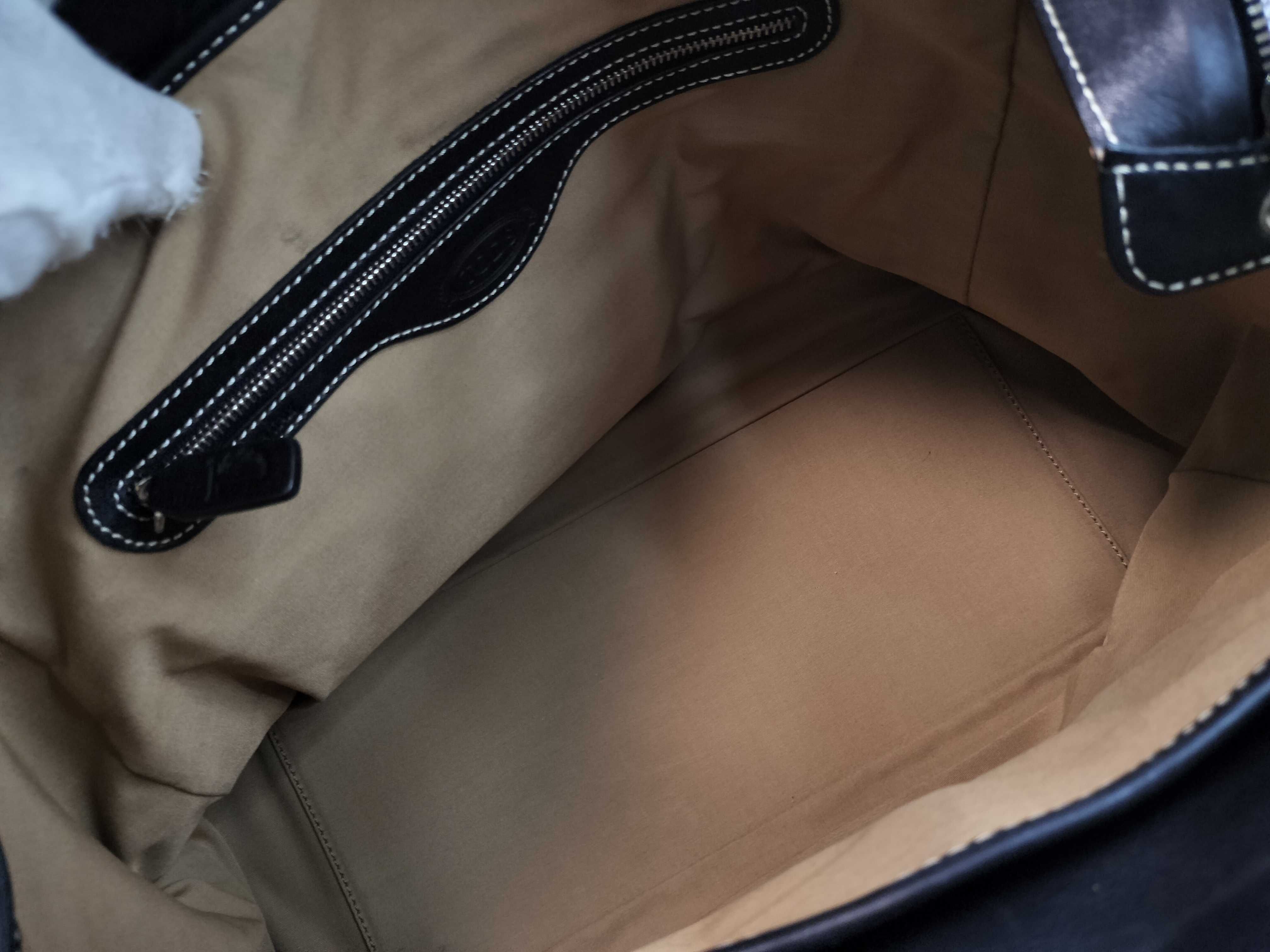 (F_0946)TODS オーバーステッチ ブラック トートバッグ